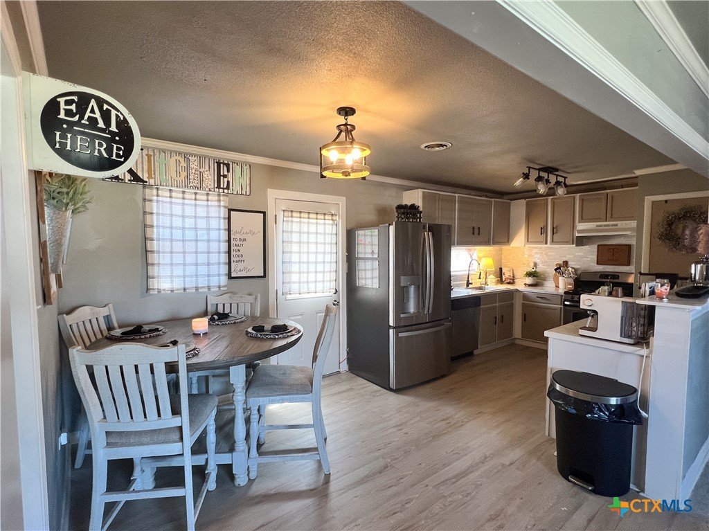 Welcome home to this beautifully updated 3 bedroom, 1.5 bath home that perfectly blends comfort, style, and functionality. This move-in ready home features fresh interior and exterior paint along with new flooring, creating a clean, modern feel from the moment you step inside. A standout feature is the thoughtfully converted garage, now a versatile 2nd family room complete with a newly added fireplace and hearth. The electric fireplace insert not only adds warmth and charm but also provides supplemental heat—making it the perfect space for relaxing, entertaining, or even a home office. The updated kitchen shines with a stylish backsplash and a convenient pantry, offering both beauty and practicality as well as a breakfast bar or coffee bar. Also included is the spacious laundry room that will accommodate an additional refrigerator or freezer if desired. Each space in the home has been designed with comfort and ease of living in mind. Step outside to a spacious backyard built for enjoyment. You’ll love the newly added deck, storage building, and inviting lighted area—ideal for gatherings with family and friends. Exterior roofline lighting enhances curb appeal and creates a warm, welcoming ambiance in the evenings. Nestled in an established neighborhood, this home offers the perfect combination of modern updates, flexible living space, and outdoor charm. Don’t miss your opportunity to make this exceptional property your own!