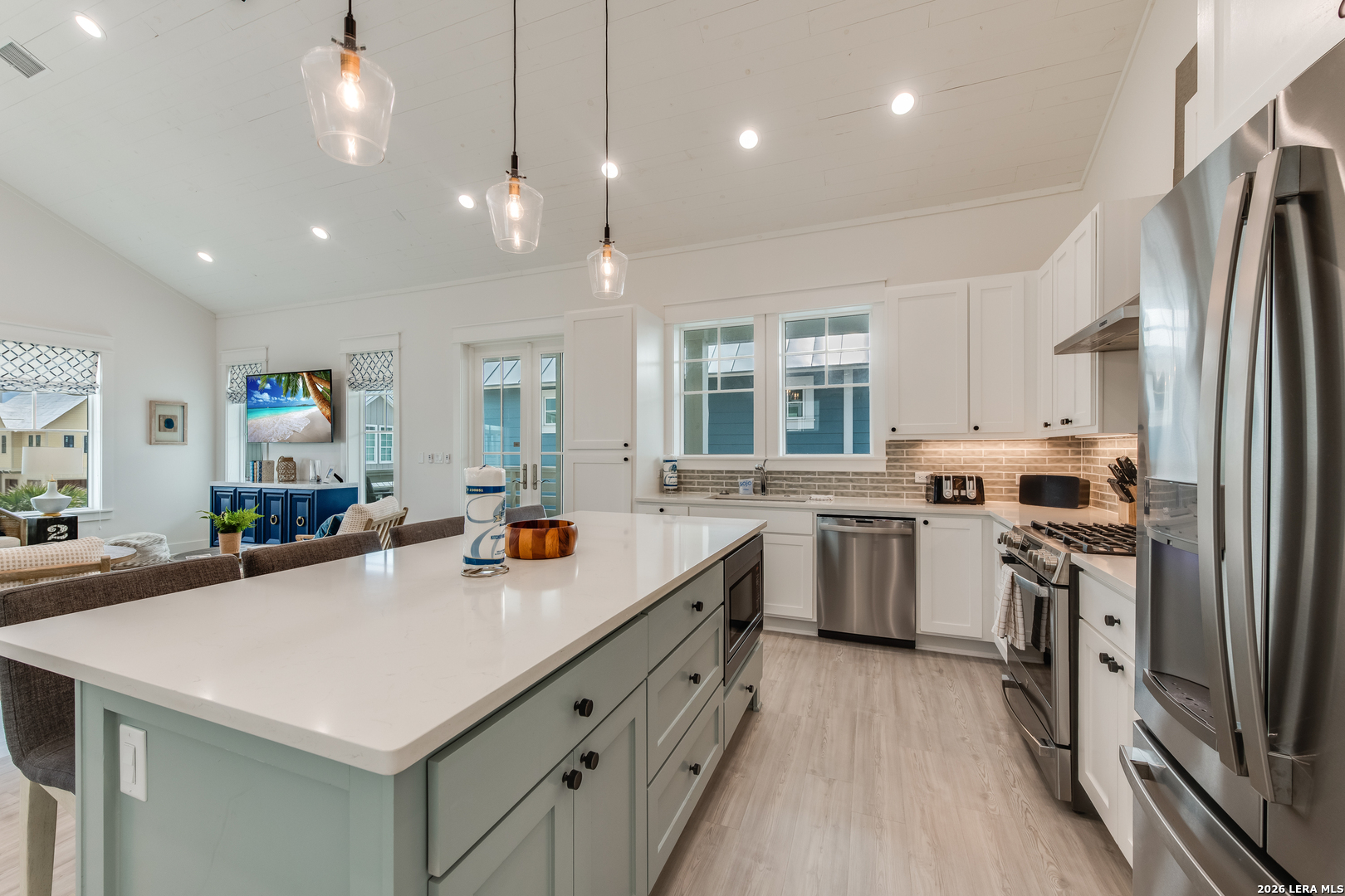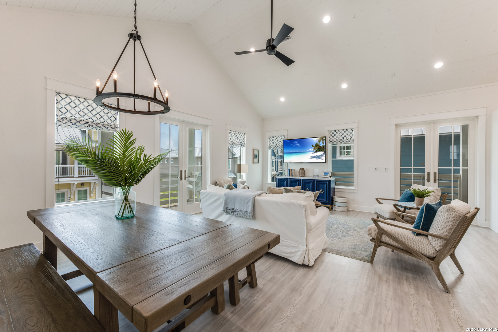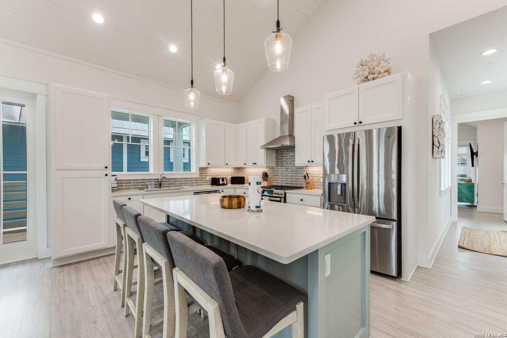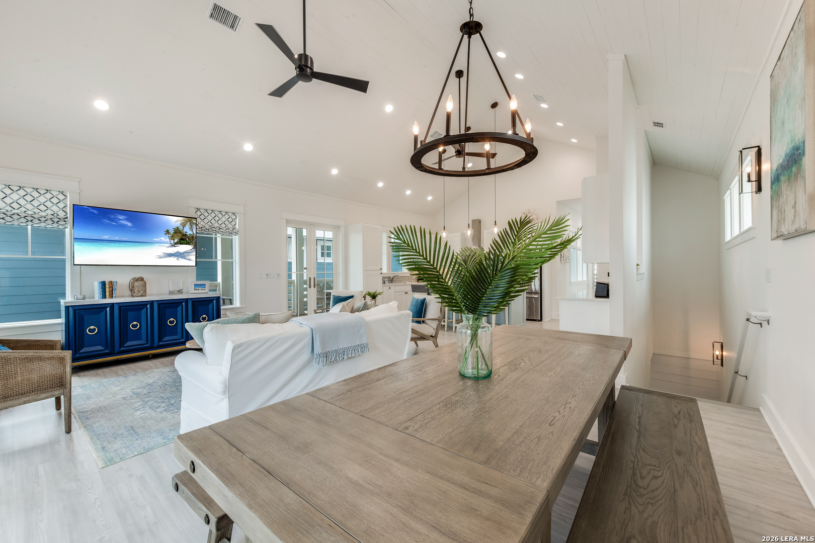 The Sandbar, a custom-built home by Conner Coastal Homes, showcases elegant coastal interiors by High Cotton Home & Design. Sold fully furnished, this stunning residence is designed for both relaxation and entertainment, featuring a private courtyard and multiple covered patios on the second floor. The first floor offers two spacious guest en-suites, a bunk room with an adjoining bath, and a media area with a beverage center that opens to the courtyard, creating a seamless indoor-outdoor living experience. Upstairs, soaring shiplap ceilings enhance the open-concept great room, gourmet in kitchen, and dry bar, complete with a beverage fridge and ice maker. The primary suite, tucked behind the kitchen and living area, provides a private balcony and spa-like bath, offering a peaceful retreat. Ideally situated near the Beach Club amenity center, The Sandbar offers access to a resort-style pool, Turtles Bar & Grill, a tranquility pool, private golf cart beach access, and a state-of-the-art fitness center. With on-site vacation rental management and close proximity to downtown Port Aransas, premier dining, fishing, surfing, and golf, this home is the ultimate coastal getaway.