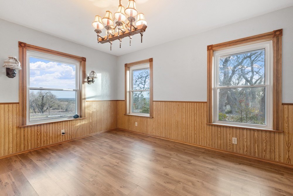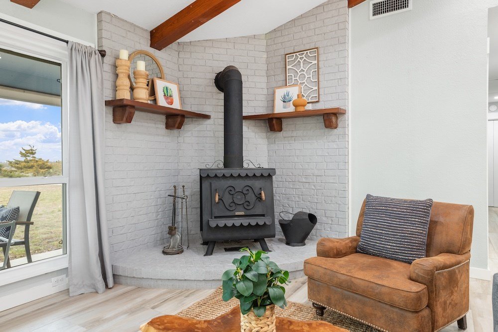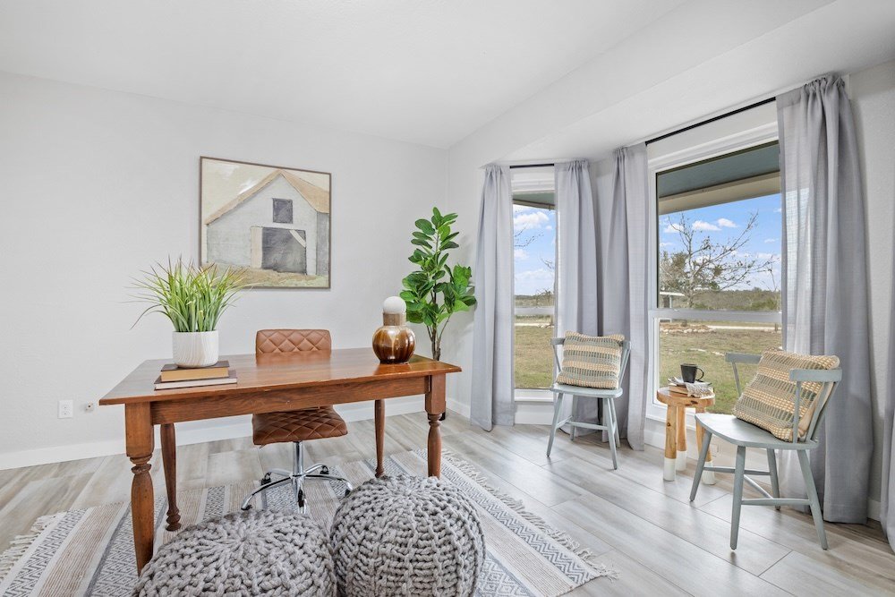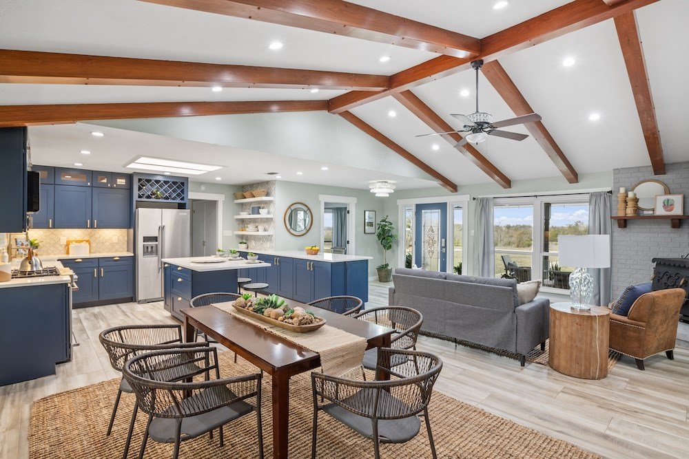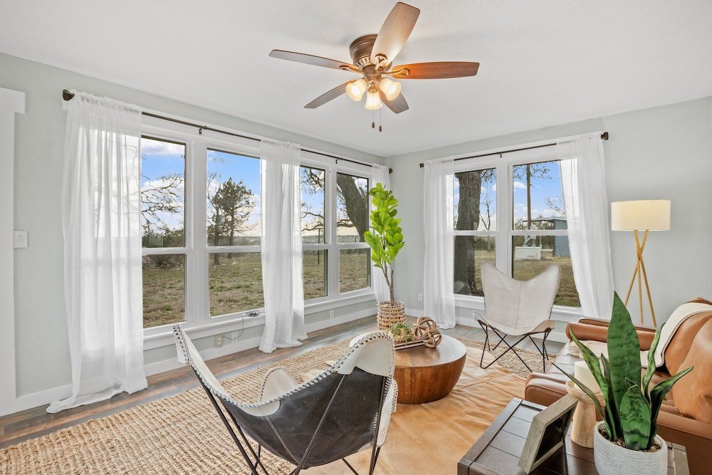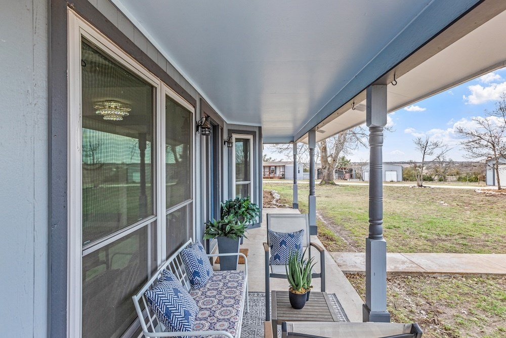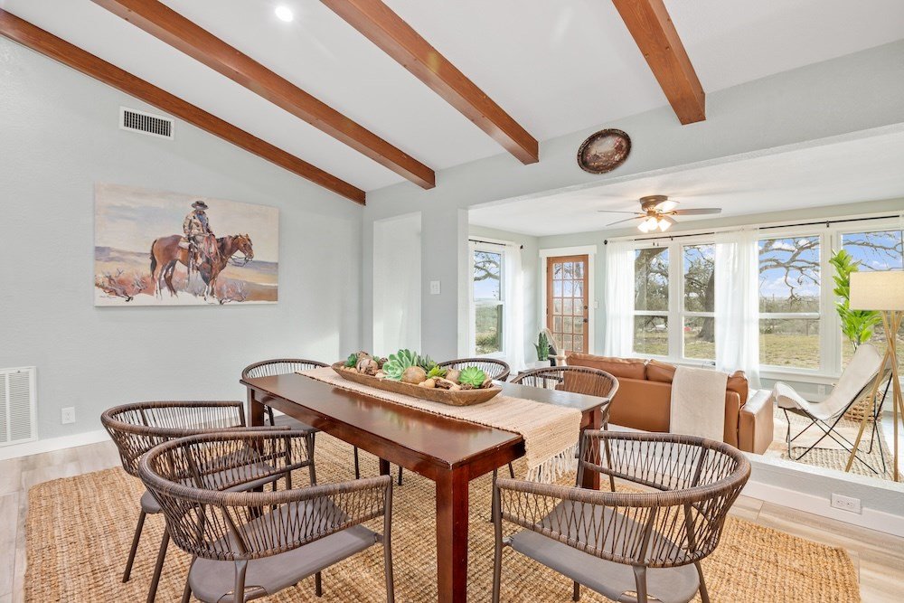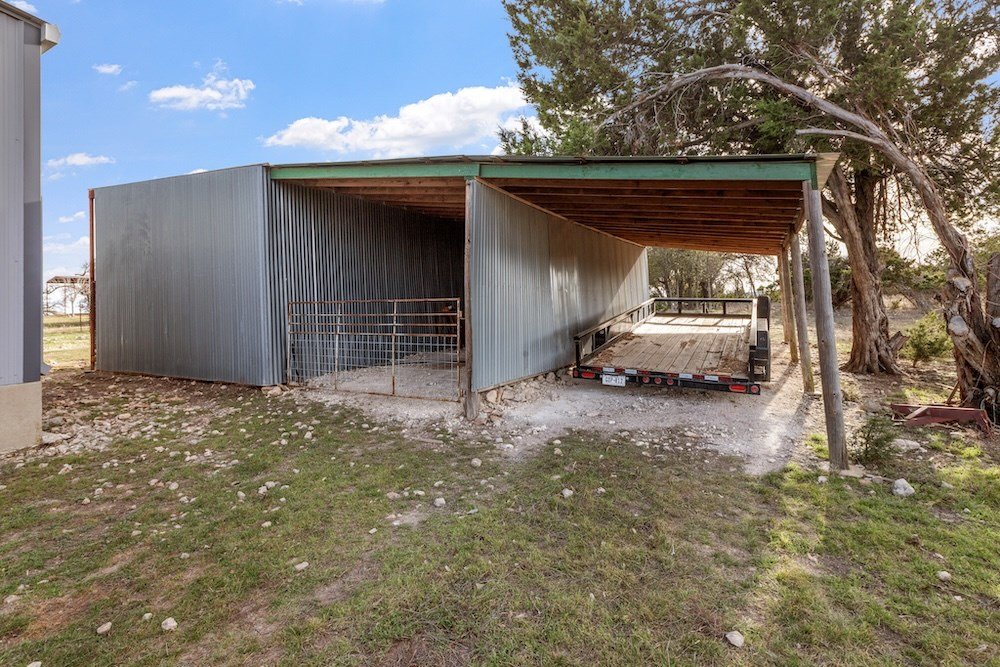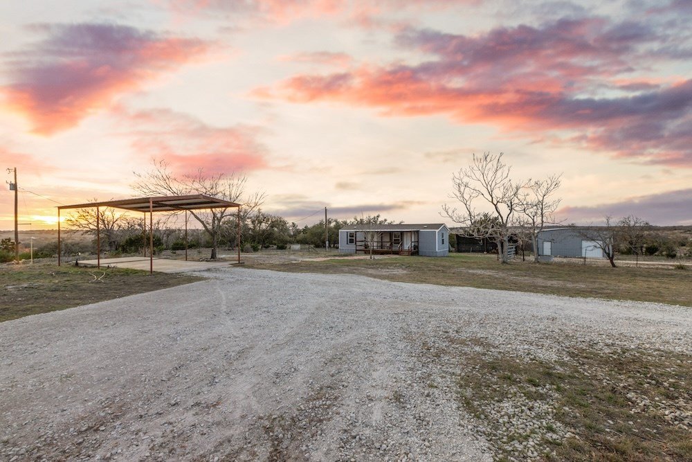 KING OF THE HILL – Imagine waking up to breathtaking panoramic views from your own private hilltop retreat. Set on 26.62 acres, this newly renovated 2,566 sq ft home turns everyday living into an extraordinary experience. Inside you will love the natural light flooding the living space. The great room steals the show with its soaring vaulted ceilings, exposed wood beams, and a cozy wood-burning stove, making it nice and cozy on chilly nights. The beautifully updated kitchen features premium cabinetry, stunning countertops, and a farmhouse sink positioned perfectly to let you drink in miles of countryside views while you cook. An open-concept layout seamlessly connects the kitchen, dining, and living areas, making entertaining a breeze. The master bedroom feels like a luxury hotel room, with wraparound windows that frame the spectacular gorgeous property views, along with a nicely updated bathroom with a walk-in shower and generous walk-in closet. The two guest bedrooms are equally spacious, while the shared guest bath also boasts beautiful updates and a nice walk-in shower. Plus, the home office just off the living room, gives the flexibility to convert to a 4th bedroom. That's just the beginning. This property is built for both comfort and practicality, equipped with an oversized utility room with half bath right off the kitchen and connected to the garage and offers additional storage. You will also love spending time in the sun-drenched den, perfect for reading and relaxing with a cup of coffee or evening beverage. The den could even be converted to an art studio for those with creative pursuits.. you name it! But wait there's more! The home is equipped with a Generac whole house generator in place with dedicated LP tank, 2,500 gallon rainwater collection system, water softener system, commercial grade reverse osmosis system and standing seam metal roof providing years of low maintenance. Also, Livestock is included to keep ag exemption and your taxes low along with a stock trailer. OUTSIDE – Did I mention the views that can be had anywhere on the hill top! The outdoor amenities are just as impressive, including a 3030 workshop with a roll up door – perfect for car enthusiasts. There is also a great implement barn and lean-to shed for livestock. In addition, there is a third stage building and workshop making for no shortage of space for all your toys and precious items. The covered RV parking area is equipped with water and power supply in place. GUEST HOUSE/STR OPPORTUNITY – Another bonus is the 1-bedroom, 1-bathroom mobile home on site which makes a great guest house for anyone making an extended stay or allowing the option to convert into a short-term rental. Even the mobile home offers amazing views from the front porch. If you are into the short-term rental business, the property includes two septics in place, one of which is tied into the existing mobile home but could be made to serve an additional bed and breakfast unit converting the place to a STR complex! You'll love spending time outside watching the multitude of wildlife transverse your property making the morning coffee routine something to be savored. Come take a look at everything this property has to offer and you will truly feel like the King of the Hill!