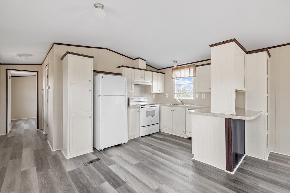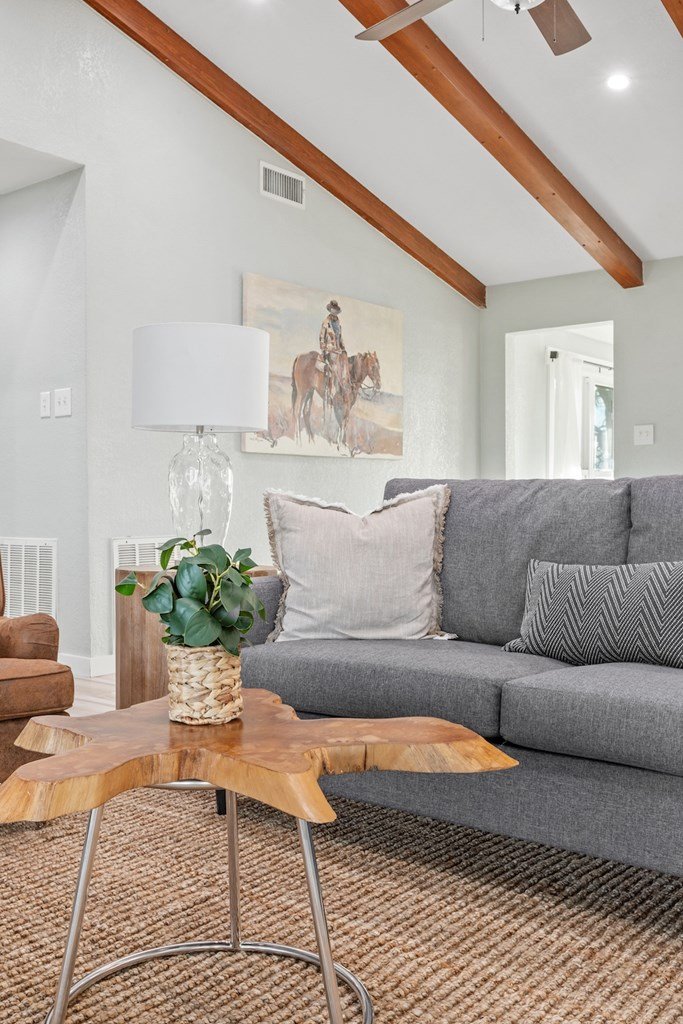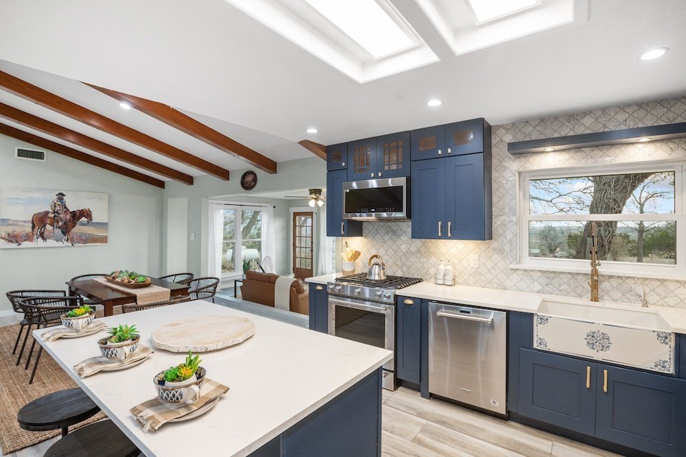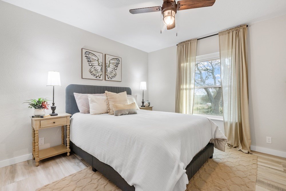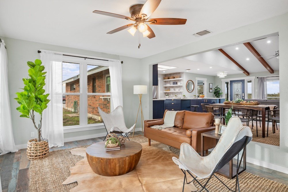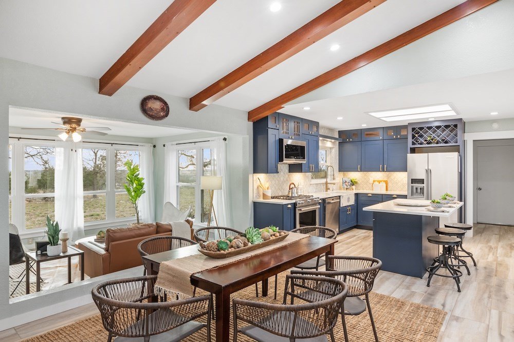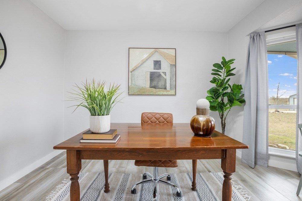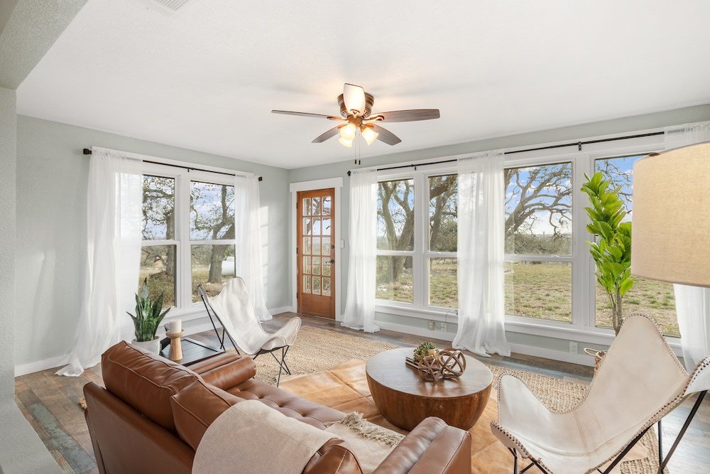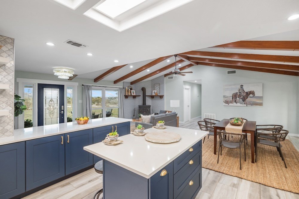 KING OF THE HILL – Imagine waking up to breathtaking panoramic views from your own private hilltop retreat. Set on 26.62 acres, this newly renovated 2,566 sq ft home turns everyday living into an extraordinary experience. Inside you will love the natural light flooding the living space. The great room steals the show with its soaring vaulted ceilings, exposed wood beams, and a cozy wood-burning stove, making it nice and cozy on chilly nights. The beautifully updated kitchen features premium cabinetry, stunning countertops, and a farmhouse sink positioned perfectly to let you drink in miles of countryside views while you cook. An open-concept layout seamlessly connects the kitchen, dining, and living areas, making entertaining a breeze. The master bedroom feels like a luxury hotel room, with wraparound windows that frame the spectacular gorgeous property views, along with a nicely updated bathroom with a walk-in shower and generous walk-in closet. The two guest bedrooms are equally spacious, while the shared guest bath also boasts beautiful updates and a nice walk-in shower. Plus, the home office just off the living room, gives the flexibility to convert to a 4th bedroom. That's just the beginning. This property is built for both comfort and practicality, equipped with an oversized utility room with half bath right off the kitchen and connected to the garage and offers additional storage. You will also love spending time in the sun-drenched den, perfect for reading and relaxing with a cup of coffee or evening beverage. The den could even be converted to an art studio for those with creative pursuits.. you name it! But wait there's more! The home is equipped with a Generac whole house generator in place with dedicated LP tank, 2,500 gallon rainwater collection system, water softener system, commercial grade reverse osmosis system and standing seam metal roof providing years of low maintenance. Also, Livestock is included to keep ag exemption and your taxes low along with a stock trailer. OUTSIDE – Did I mention the views that can be had anywhere on the hill top! The outdoor amenities are just as impressive, including a 3030 workshop with a roll up door – perfect for car enthusiasts. There is also a great implement barn and lean-to shed for livestock. In addition, there is a third stage building and workshop making for no shortage of space for all your toys and precious items. The covered RV parking area is equipped with water and power supply in place. GUEST HOUSE/STR OPPORTUNITY – Another bonus is the 1-bedroom, 1-bathroom mobile home on site which makes a great guest house for anyone making an extended stay or allowing the option to convert into a short-term rental. Even the mobile home offers amazing views from the front porch. If you are into the short-term rental business, the property includes two septics in place, one of which is tied into the existing mobile home but could be made to serve an additional bed and breakfast unit converting the place to a STR complex! You'll love spending time outside watching the multitude of wildlife transverse your property making the morning coffee routine something to be savored. Come take a look at everything this property has to offer and you will truly feel like the King of the Hill!