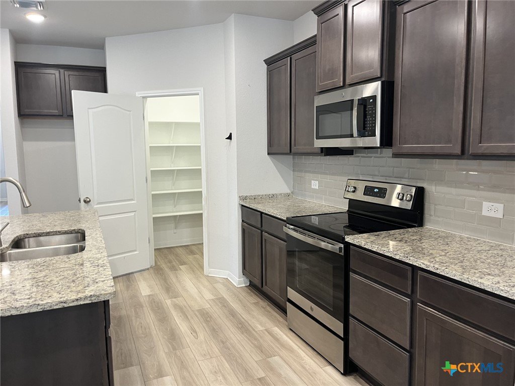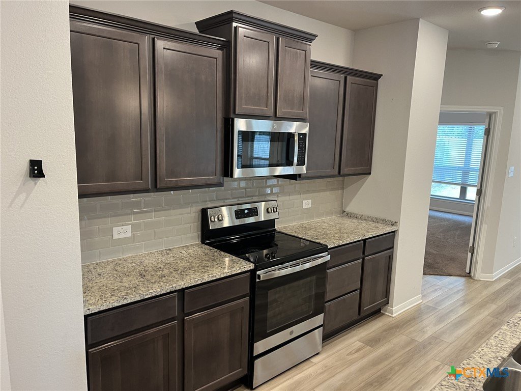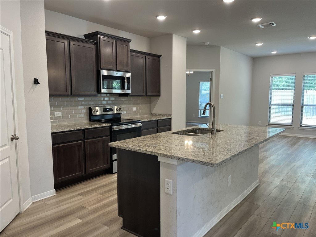 This 4 bedroom, 2 bathroom, 2 car garage home is located in a suburban neighborhood that is within a few miles of all amenities! It features an open concept kitchen, dining and living room space, spacious primary bedroom with its own on-suite bathroom with double vanities, walk in closet and walk in shower, secondary bedrooms separate from the primary bedroom, covered patio and covered porch and fenced in backyard. This one wont last long!