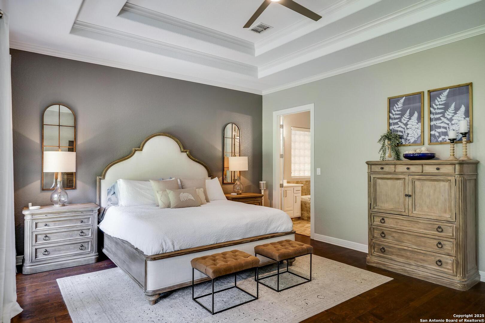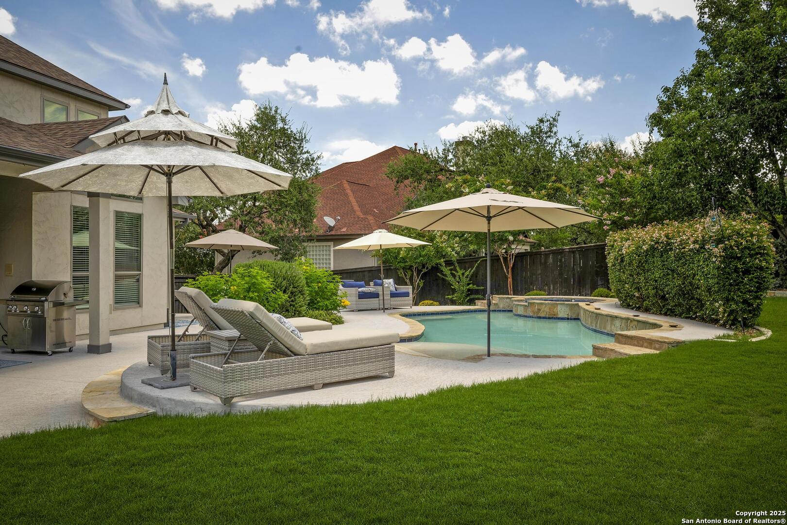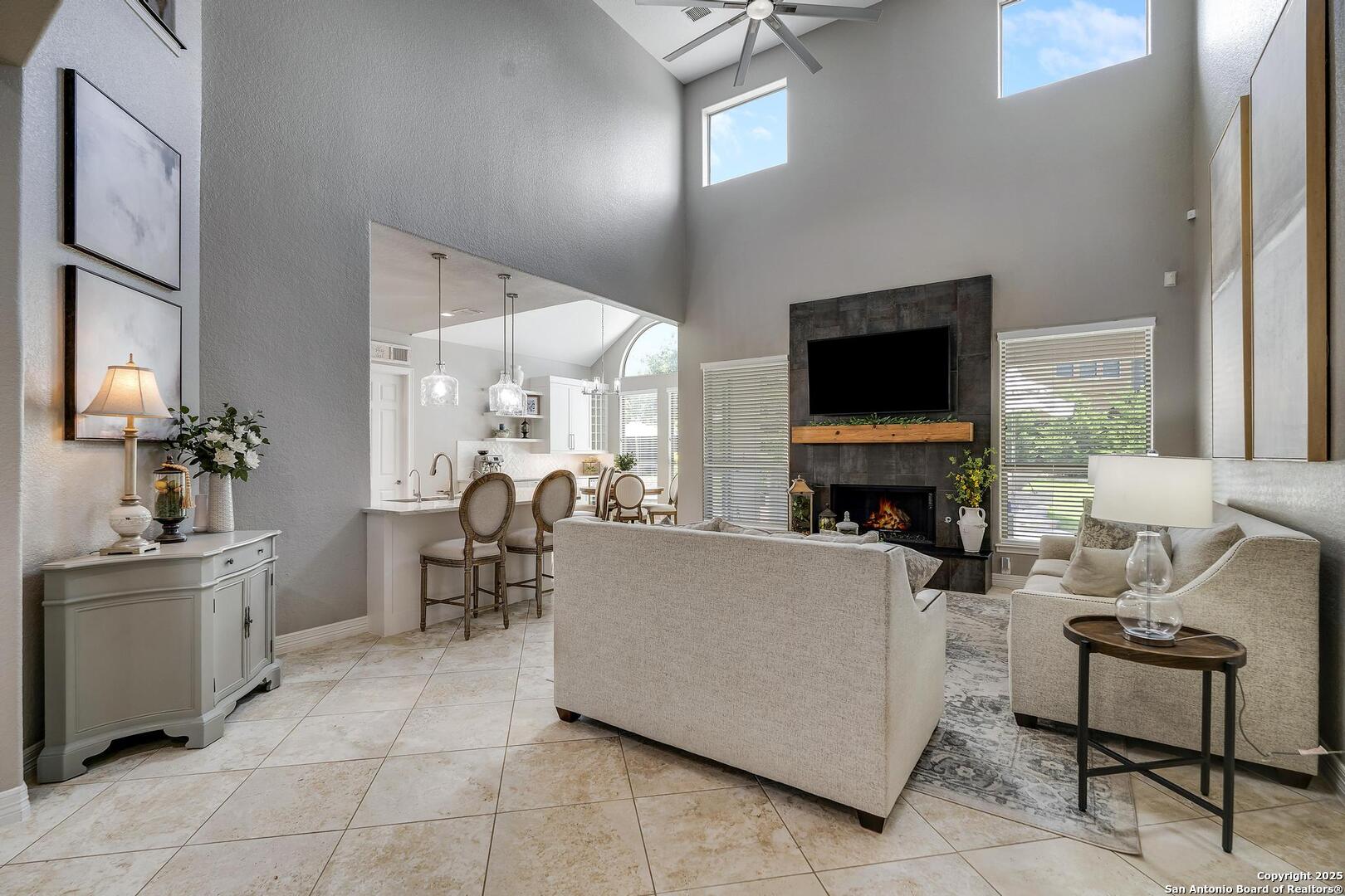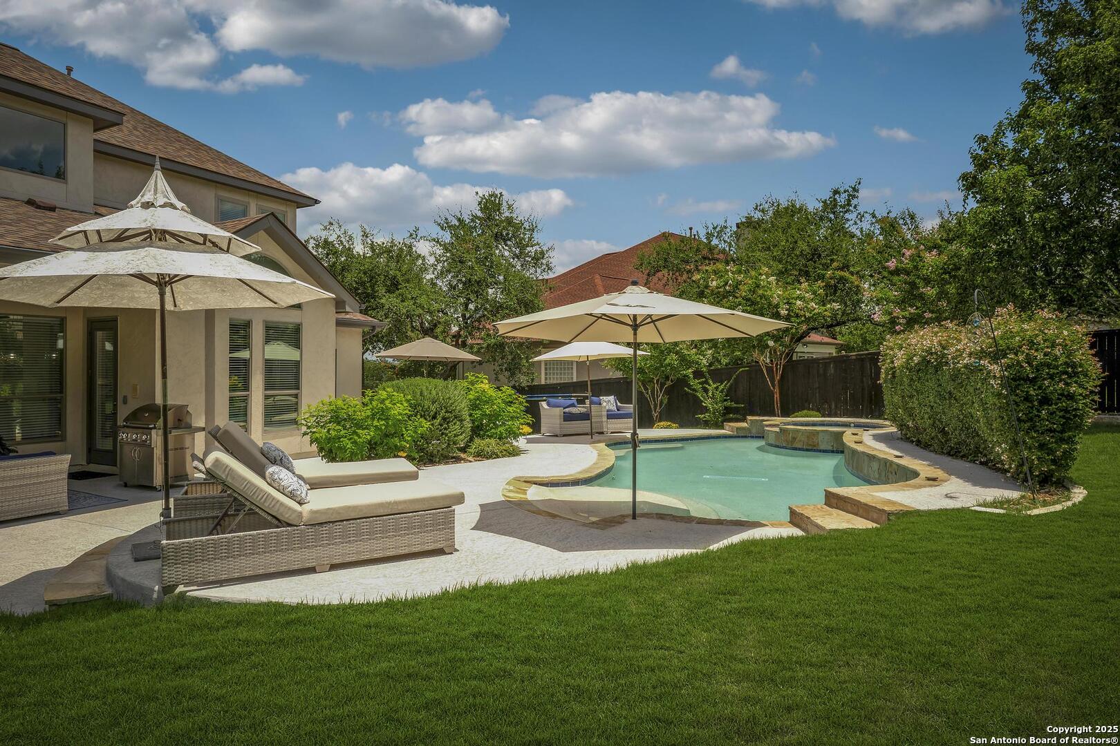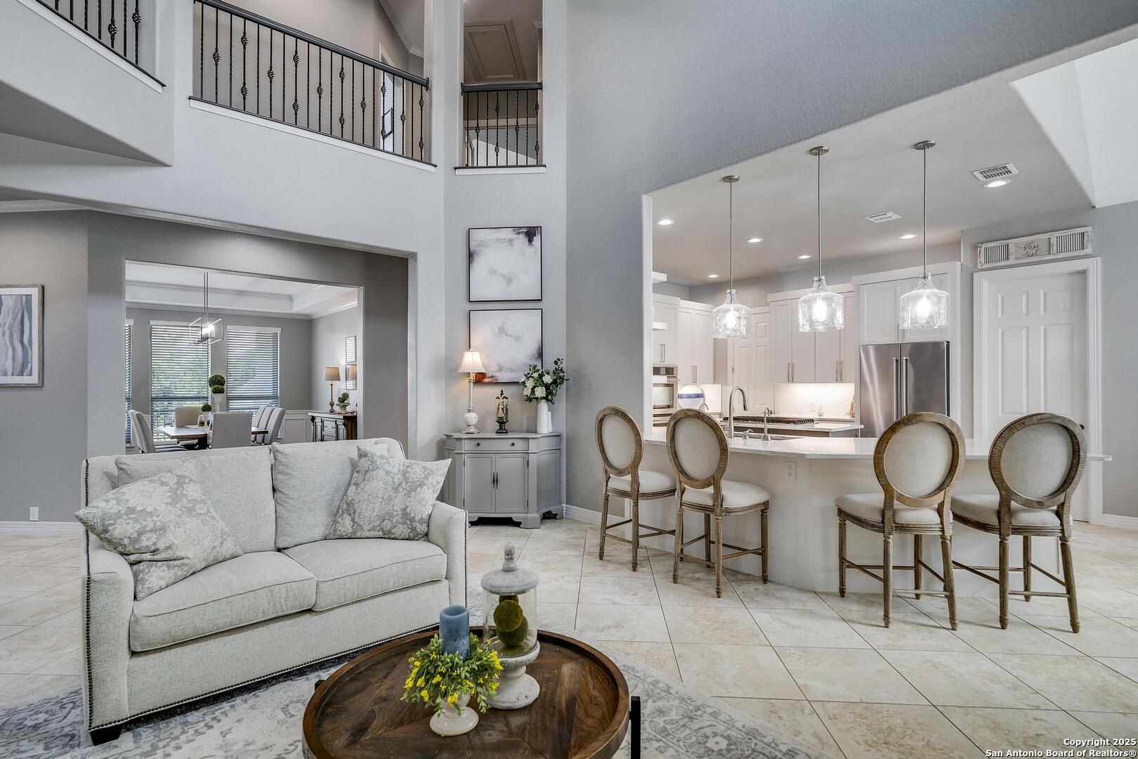 This Magnificent Mediterranean home is located in the boutique neighborhood of Mesas at Canyon Springs. Boasting 2 stories with soaring ceilings & nestled on a third-of-an-acre, you'll spend many hours swimming and lounging in the newly resurfaced, sparkling, salt-water pool & spa. This home is filled with many designer touches and a neutral palette with a timeless interior and was exquisitely updated in 2022. A few of the updates include - A state-of-the-art kitchen designed with affluent comfort including Mont Blanc Quartzite countertops, soft close cabinets, Herringbone Oyster backsplash, a coffee/beverage bar with a 44 bottle wine cooler, Kitchen Aid Cooktop with 5 gas burners, Reme Halo whole home in-duct air purifier for the freshest air, a Mistaway Mosquito Control System in the backyard, a laundry room with ample storage and adjoining pool, powder bath and a new roof was installed in 2021. You will love, the peaceful, expansive Master suite with outdoor access to the covered patio. The upgraded home office with built-ins make it the ideal space to work from home. 3 generously sized additional bedrooms are upstairs. The second floor is completed with a spacious game room for recreation and entertainment & a full wet bar. The Covered patio leads to the spacious, serene, manicured backyard. Once you see this thoughtfully designed home, you'll want to immerse yourself in the refined lifestyle it has to offer. Come in take a look around and stay for awhile or stay forever.