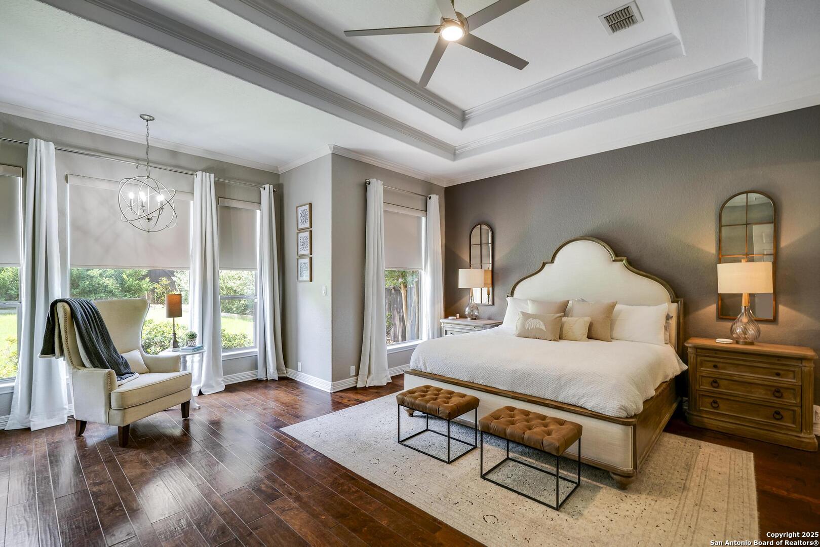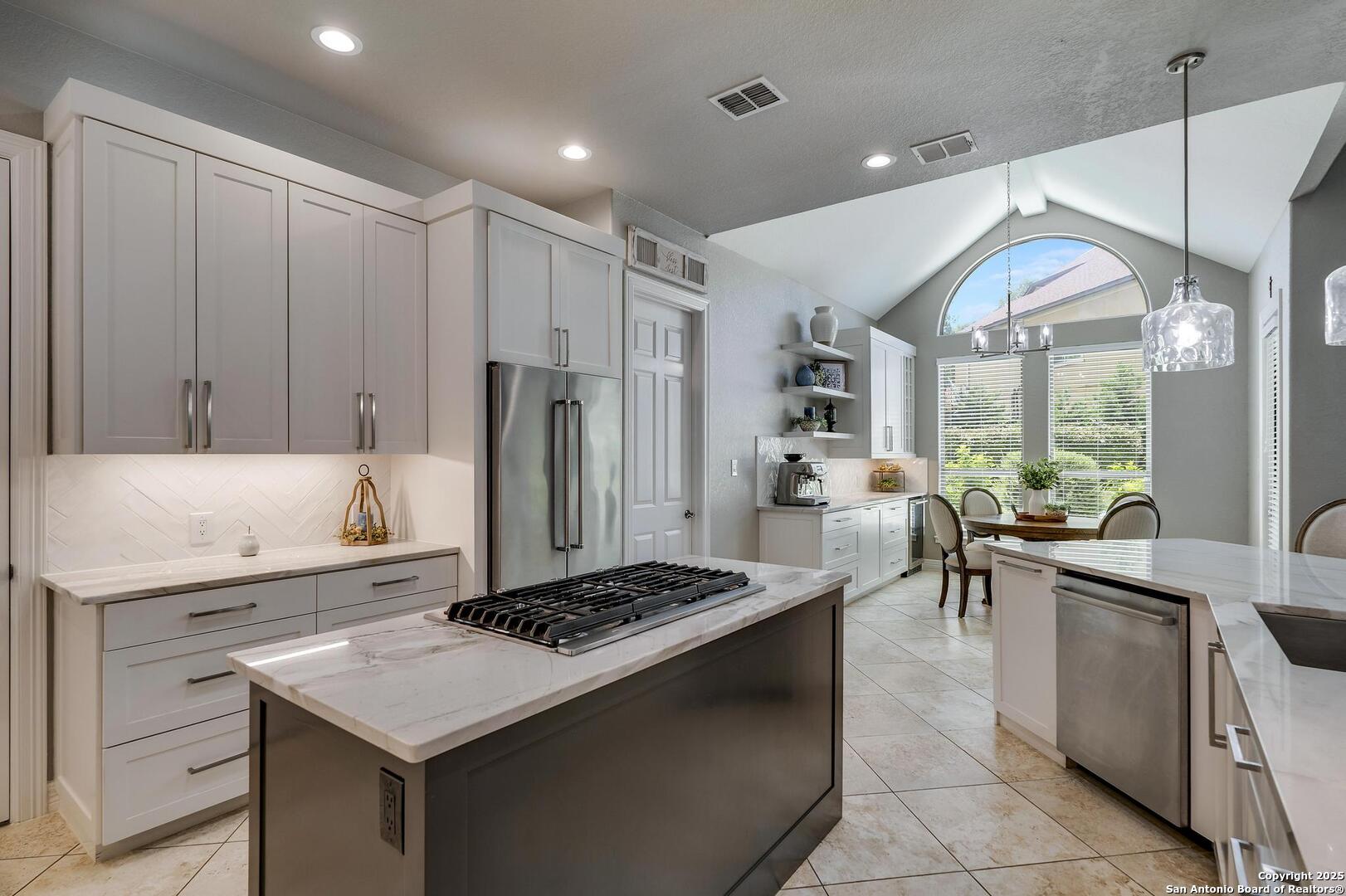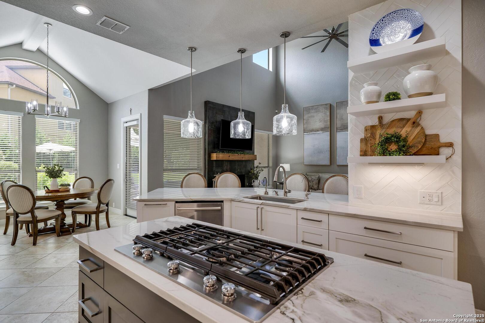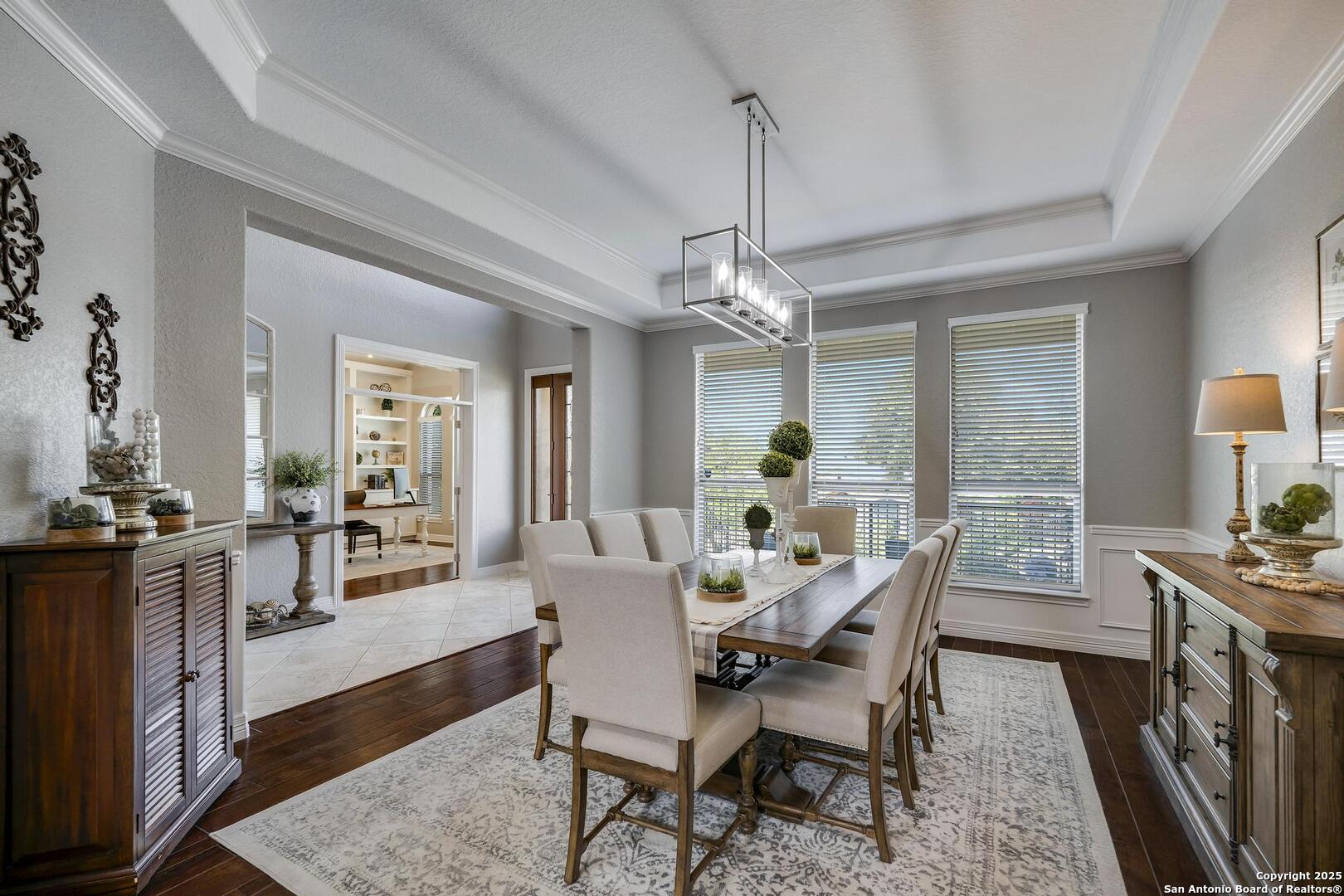 This Magnificent Mediterranean home is located in the boutique neighborhood of Mesas at Canyon Springs. Boasting 2 stories with soaring ceilings & nestled on a third-of-an-acre, you'll spend many hours swimming and lounging in the newly resurfaced, sparkling, salt-water pool & spa. This home is filled with many designer touches and a neutral palette with a timeless interior and was exquisitely updated in 2022. A few of the updates include - A state-of-the-art kitchen designed with affluent comfort including Mont Blanc Quartzite countertops, soft close cabinets, Herringbone Oyster backsplash, a coffee/beverage bar with a 44 bottle wine cooler, Kitchen Aid Cooktop with 5 gas burners, Reme Halo whole home in-duct air purifier for the freshest air, a Mistaway Mosquito Control System in the backyard, a laundry room with ample storage and adjoining pool, powder bath and a new roof was installed in 2021. You will love, the peaceful, expansive Master suite with outdoor access to the covered patio. The upgraded home office with built-ins make it the ideal space to work from home. 3 generously sized additional bedrooms are upstairs. The second floor is completed with a spacious game room for recreation and entertainment & a full wet bar. The Covered patio leads to the spacious, serene, manicured backyard. Once you see this thoughtfully designed home, you'll want to immerse yourself in the refined lifestyle it has to offer. Come in take a look around and stay for awhile or stay forever.