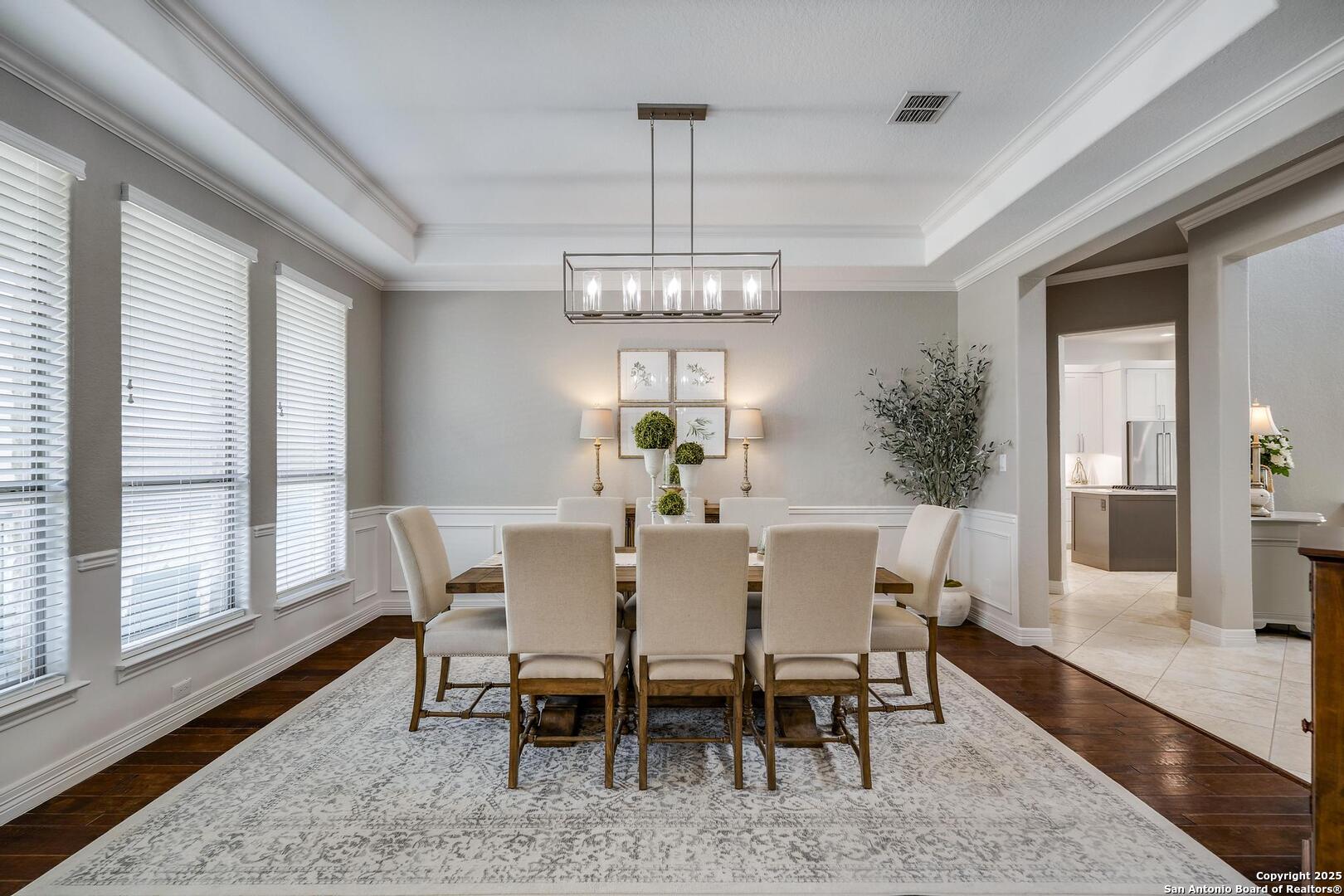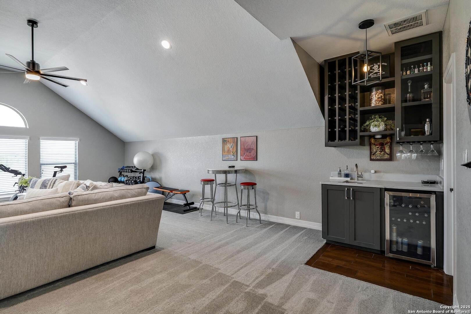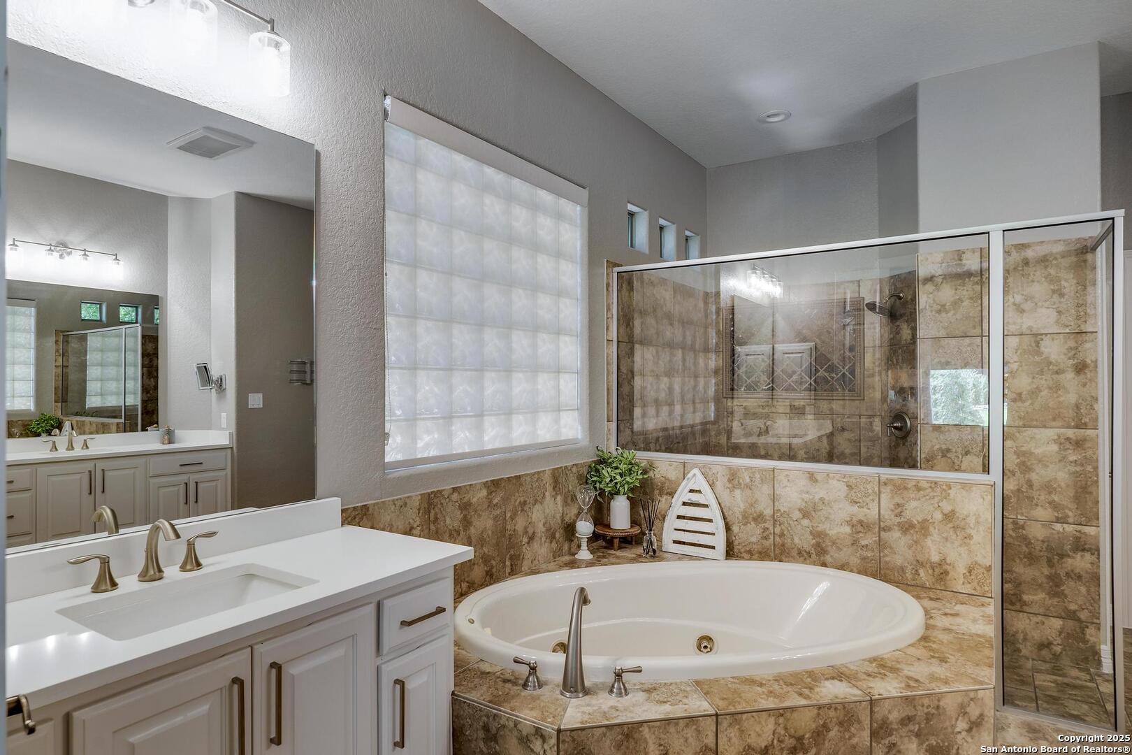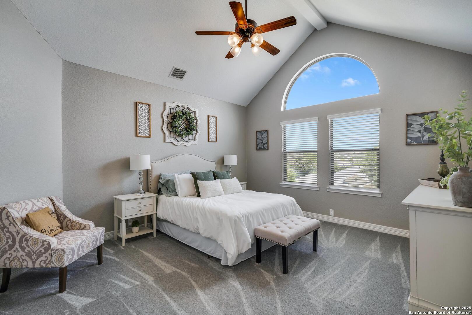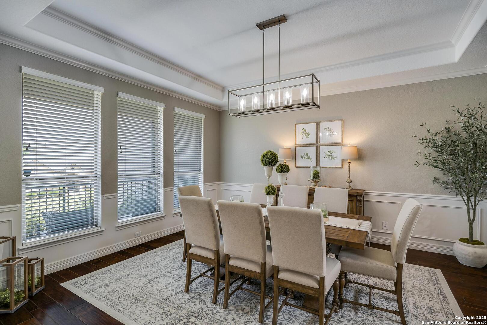 This Magnificent Mediterranean home is located in the boutique neighborhood of Mesas at Canyon Springs. Boasting 2 stories with soaring ceilings & nestled on a third-of-an-acre, you'll spend many hours swimming and lounging in the newly resurfaced, sparkling, salt-water pool & spa. This home is filled with many designer touches and a neutral palette with a timeless interior and was exquisitely updated in 2022. A few of the updates include - A state-of-the-art kitchen designed with affluent comfort including Mont Blanc Quartzite countertops, soft close cabinets, Herringbone Oyster backsplash, a coffee/beverage bar with a 44 bottle wine cooler, Kitchen Aid Cooktop with 5 gas burners, Reme Halo whole home in-duct air purifier for the freshest air, a Mistaway Mosquito Control System in the backyard, a laundry room with ample storage and adjoining pool, powder bath and a new roof was installed in 2021. You will love, the peaceful, expansive Master suite with outdoor access to the covered patio. The upgraded home office with built-ins make it the ideal space to work from home. 3 generously sized additional bedrooms are upstairs. The second floor is completed with a spacious game room for recreation and entertainment & a full wet bar. The Covered patio leads to the spacious, serene, manicured backyard. Once you see this thoughtfully designed home, you'll want to immerse yourself in the refined lifestyle it has to offer. Come in take a look around and stay for awhile or stay forever.