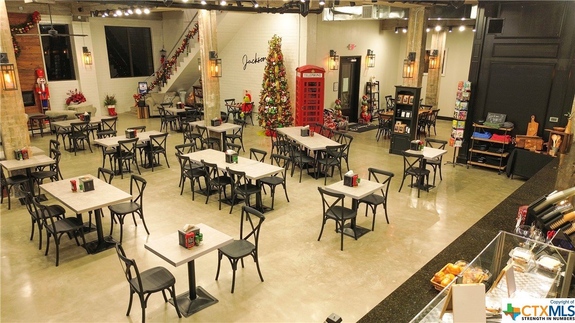 If you are looking for an opportunity to own a truly unique property, with multiple income opportunities, LOOK NO FURTHER!! Specialty coffee shop, diner, icehouse, catering, commissary kitchen lease, wedding/shower/party/meeting venue, and office lease space are just a few of the opportunities already being utilized! Conveniently located with easy access and parking. Street frontage on 3 sides. Equipped with bluetooth capability to the sound system and wireless microphone. USPS approved and serviced mailboxes with 26 boxes and 2 parcel boxes. Fiberoptic available. Sale includes the entire property including furniture, fixtures and the business itself. Facility can be rented out for 3 different events at once or the entire building for one larger event. Downstairs encompasses about 8,000 sf that includes the icehouse, coffee shop, dining & kitchen. The upstairs is approximately 3,200 sf and includes a conference room, 6 private offices (5 currently leased) large common area with kitchenette and restroom. Commercial kitchen with 1000 gallon grease trap can be utilized as commissary kitchen for extra income. Owner and management has done a great job getting this business idea up and running. Nominated by TX Downtown Assn for best renovation in 2023 and 2022 Achiever of the year by the El Campo Chamber of Commerce...It is a growing, thriving business.