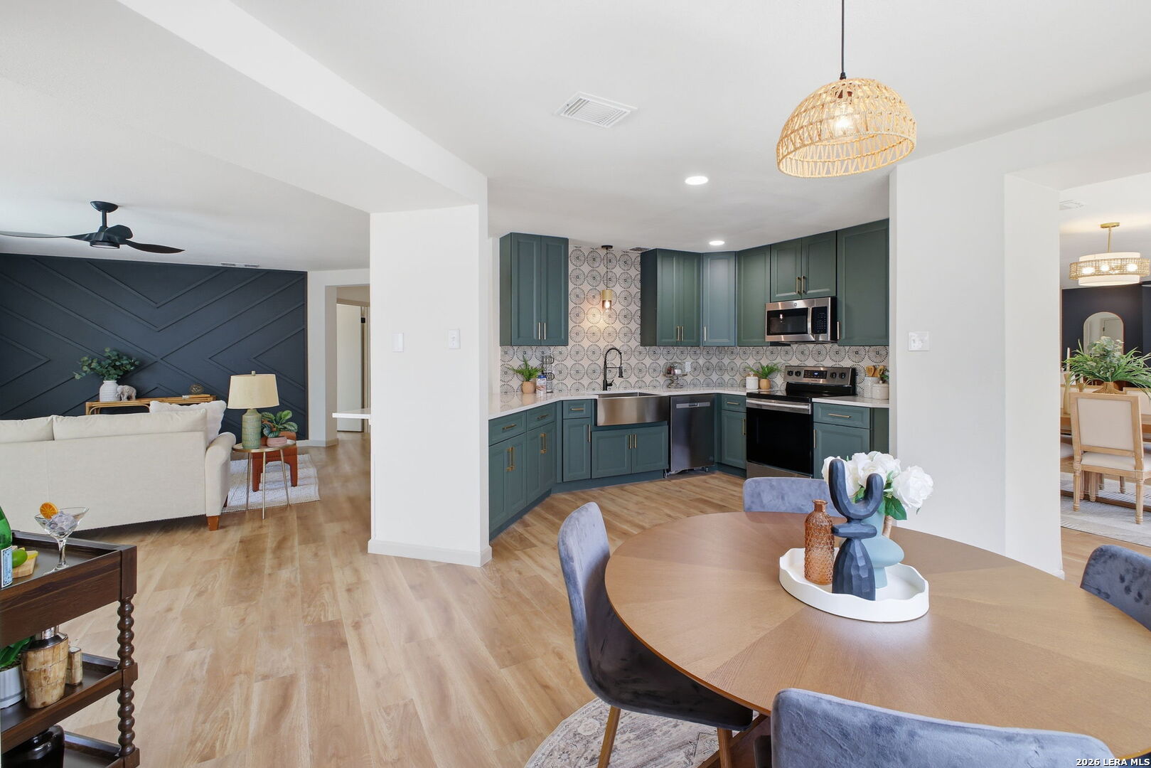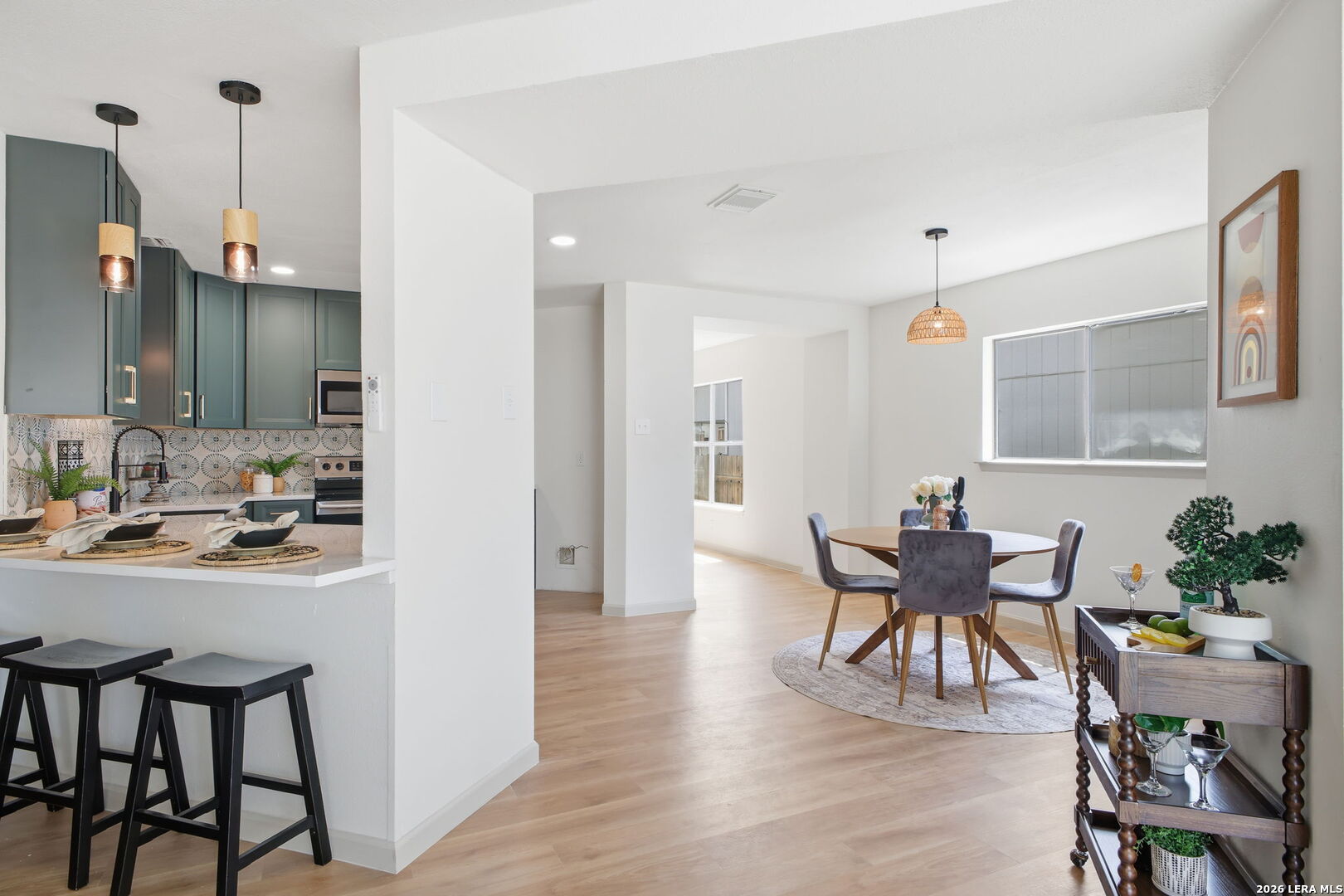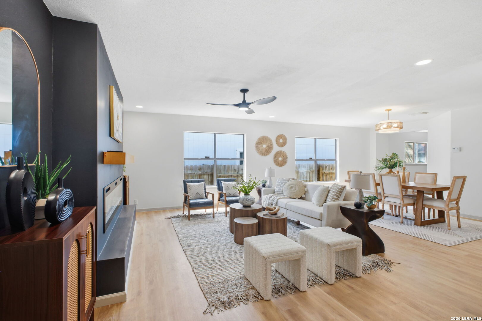 Set in the Ventura/Spring Meadows area, 7119 Western Trail offers the kind of layout and location that fits real day to day family life. Inside, the home feels warm, updated, and functional, with expansive living areas, a large dining space, and an open kitchen that naturally keeps everyone connected. The updated finishes, statement accent wall, Custom fireplace and generous breakfast bar, and bright common areas create a home that works just as well for busy school mornings as it does for family dinners, movie nights, and holiday gatherings. The backyard pool and covered patio add the piece people want most in South Texas: a private space to cool off, unwind, and make the home feel like the weekend destination.
