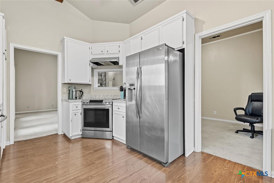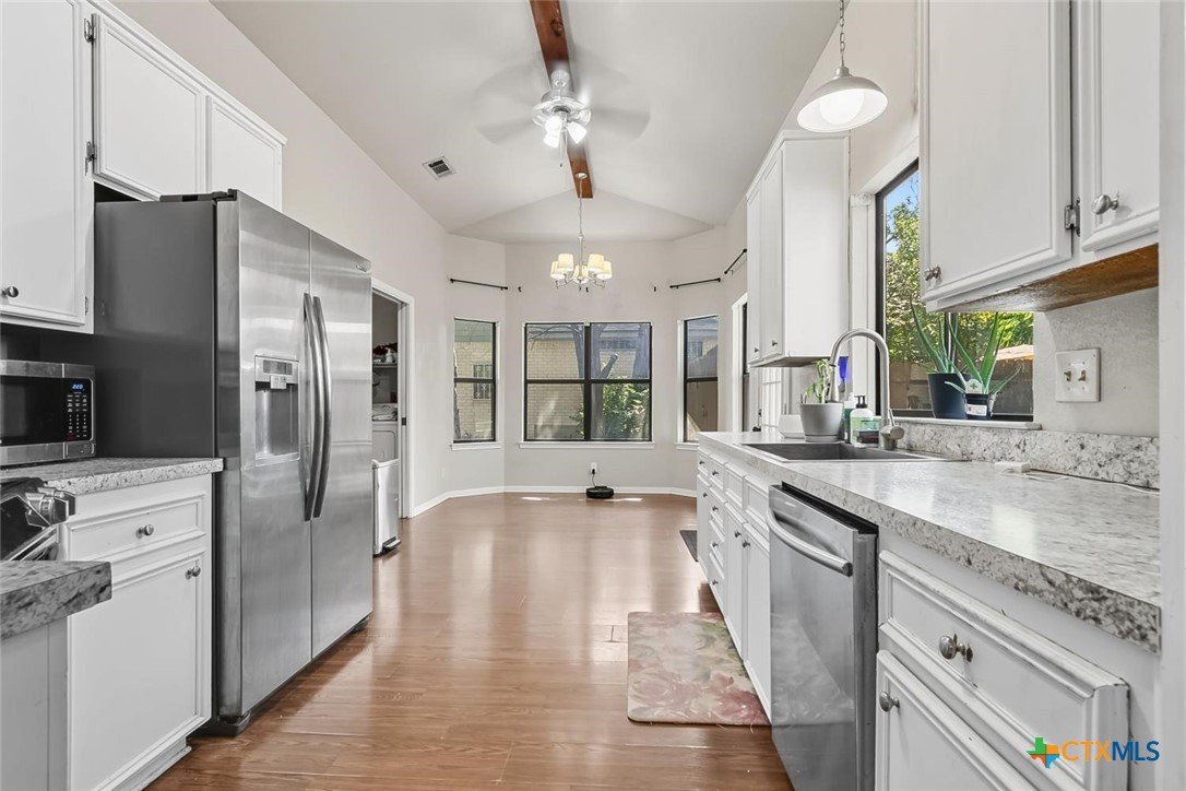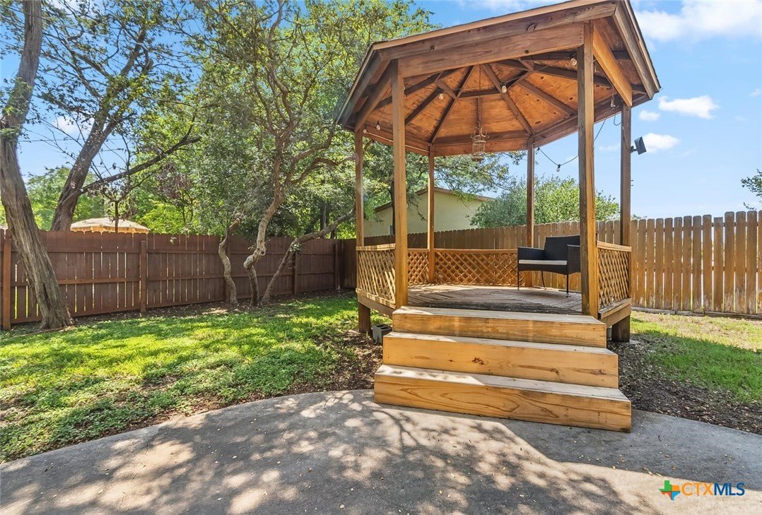 Welcome to your dream home in the serene neighborhood of Harker Heights! This is a stunning residence that is a perfect blend of luxury and comfort, boasting unique, elegant feature. Featuring 1686 sqft with 3 spacious bedrooms and 2 bathrooms, this property offers both aesthetics and functionality. As you step inside, be greeted by the bright, open floor plan accentuated by soaring ceilings and large windows that flood the space with natural light. The living room, highlighted by its spectacular stone floor-to-ceiling wood-burning fireplace, provides a warm and inviting atmosphere perfect for entertaining or cozy family evenings. The recently updated master shower adds a touch of modern elegance to the home, ensuring a luxurious bathing experience. Built-in storage throughout the house maximizes the space, keeping your home organized and clutter-free. Step outside to discover a beautiful gazebo in the expansive backyard, a serene spot for outdoor relaxation and social gatherings. Mature trees around the property offer an ample shade and enhanced privacy, creating an oasis of peace. The unique feature of a private entrance fence door gives you exclusive access to the Harker Heights Athletic Center, perfect for sports enthusiasts and active families. The house is ideally situated in a quiet neighborhood, with only one neighboring house, ensuring ultimate privacy. The location is also perfect for families, being close to a highly- rated elementary and middle schools and offering a convenient commute to both Fort Hood and Austin. This property is not just a house but a place you can truly call home. With its exceptional features and prime location, this home offers an extraordinary living experience. Don’t miss out on the opportunity to own this exquisite home!
