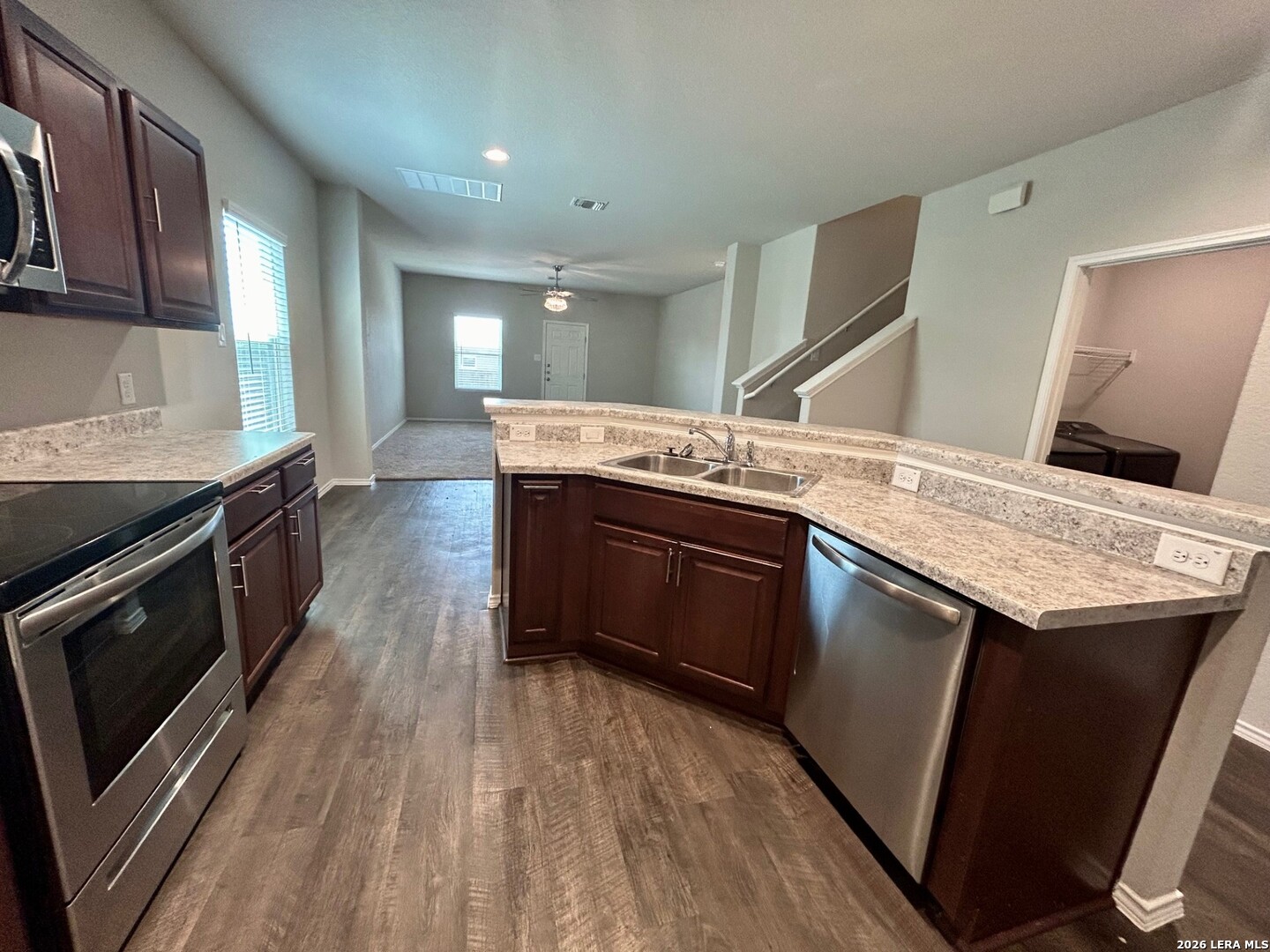 Beautiful 4 bedroom home in Horizon Point - Come see this beautiful two-story home with brick & stone elevation. This 4 bedroom home features an open floor plan, high ceilings, formal dining area, spacious rooms & downstairs master bedroom! Master bathroom comes with separate shower/tub and walk in closet! Included stainless steel kitchen appliances, upstairs living area and covered patio in the backyard. WASHER AND DRYER NAD PEST CONTROL INCLUDED! Community pool!