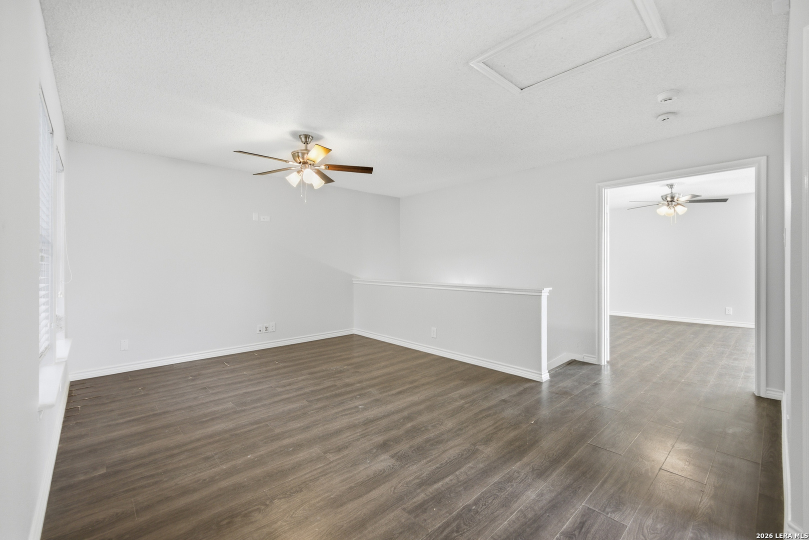 Updated 3-bedroom, 2.5-bath, 2 car garage home featuring fresh interior paint and a renovated kitchen and bathrooms that offer modern finishes and a clean, move-in-ready feel. The spacious layout provides comfortable living areas perfect for families or entertaining. Upstairs features secondary living area/ play room and large master bedroom. Home has lots of natural lighting throughout. Step outside to a large backyard with huge storage shed/workshop with plenty of potential-ideal for outdoor living, gardening, or future improvements. Located close to I-35/1604 corridor. Schedule a showing today!