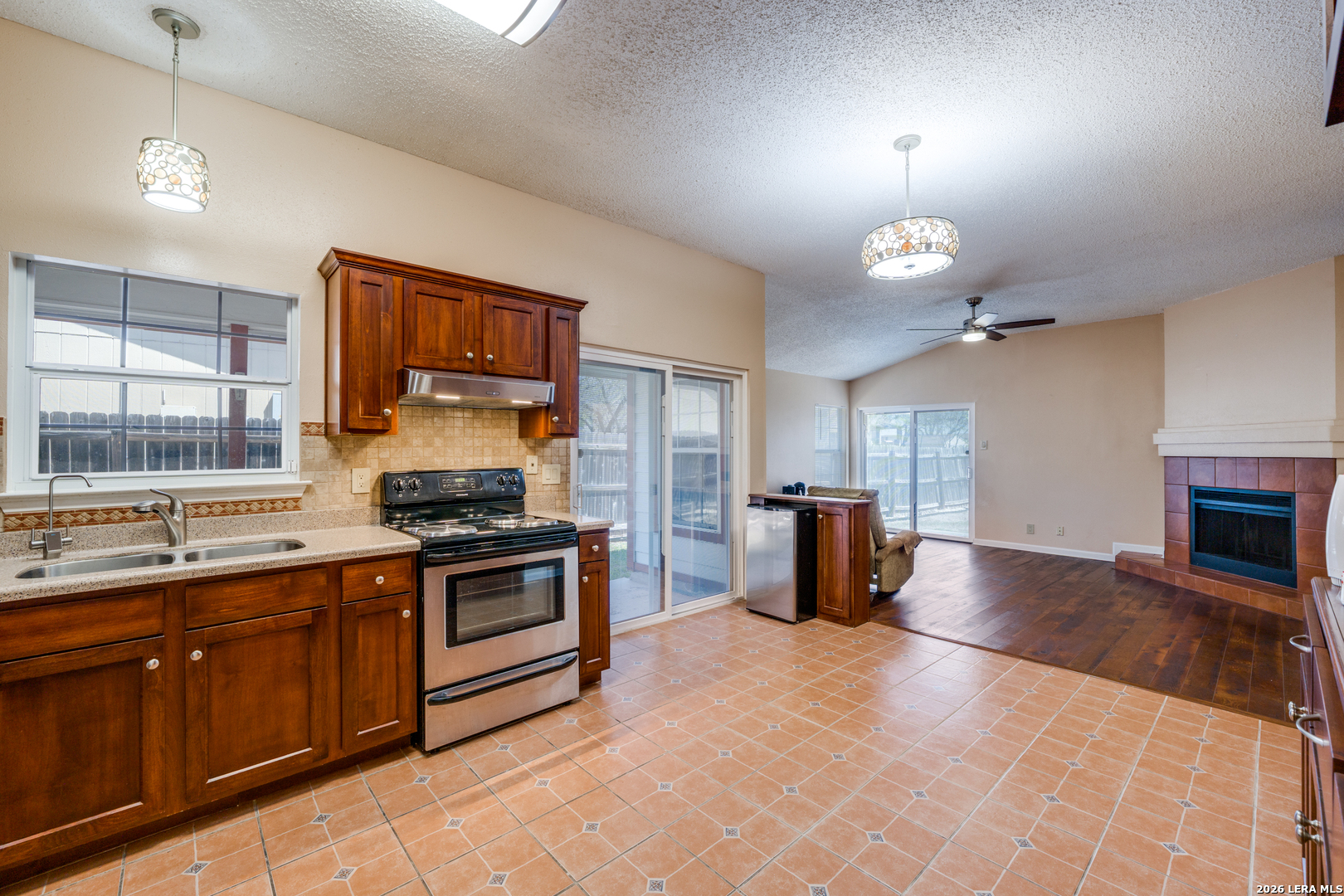 Well-maintained single-story home located in the Ventura subdivision. This move-in ready property features 4 bedrooms, 2 bathrooms, two living areas, and two eating areas, offering a flexible and functional layout. Upgrades include: double pane windows throughout, 2-sliding glass doors, front door, and flooring. The spacious primary suite includes a garden tub, separate shower, and dual closets. No carpet. Additional highlights include a two-car garage with openers and a covered patio perfect for outdoor relaxation. Conveniently located near schools, shopping, major highways, 13 minutes from Randolph AFB, and 15 minutes from Fort Sam Houston/BAMC.