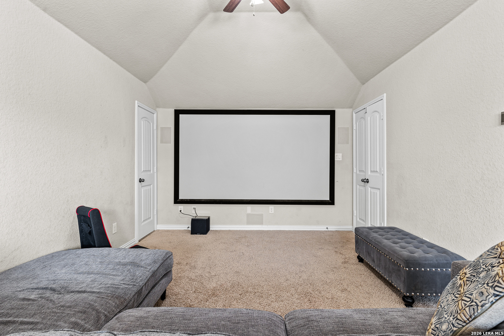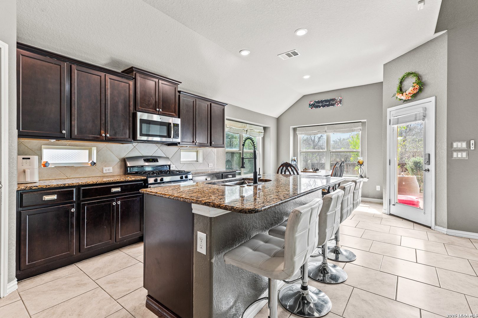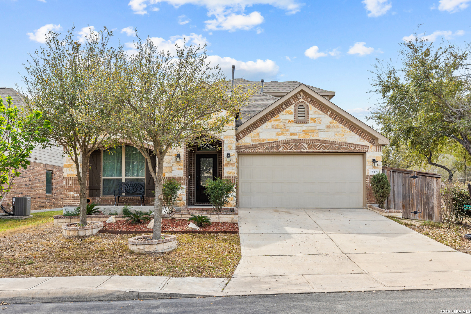 Welcome to 715 Hard Tack Trail, a beautifully designed 4-bedroom, 3.5-bath home located in the gated community of Potranco Run. This move-in ready gem offers over 2,500 sq ft of thoughtfully planned living space, blending open-concept design with stylish finishes and upgraded features throughout. Step inside to discover soaring ceilings, wood-look tile flooring, and a seamless flow between the spacious living area, chef-inspired kitchen, and formal dining or flex space. The kitchen is a standout with granite countertops, a large center island, gas cooking, and abundant cabinetry-perfect for both cooking and entertaining. Retreat to the private primary suite featuring a spa-like bath with dual vanities, soaking tub, oversized shower, and a large walk-in closet. Three additional bedrooms and a dedicated media room upstairs-complete with a 120" projector screen and surround sound-make this home ideal for families and entertainers alike. Outside, enjoy a covered patio with retractable awning, a private, fully fenced yard, and direct access to the neighborhood park and pool, located just steps away. Additional highlights include an oversized 2-car garage, energy-efficient features, and access to top-rated NISD schools. Don't miss this opportunity to live in a quiet, gated community and just minutes from shopping, dining, and major highways. Please verify all measurements.