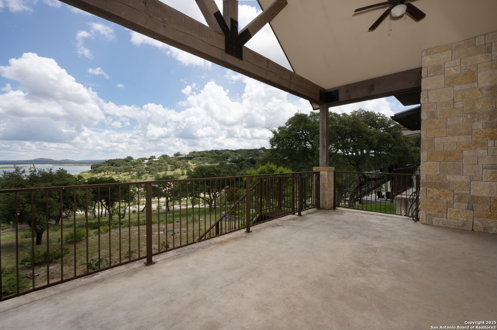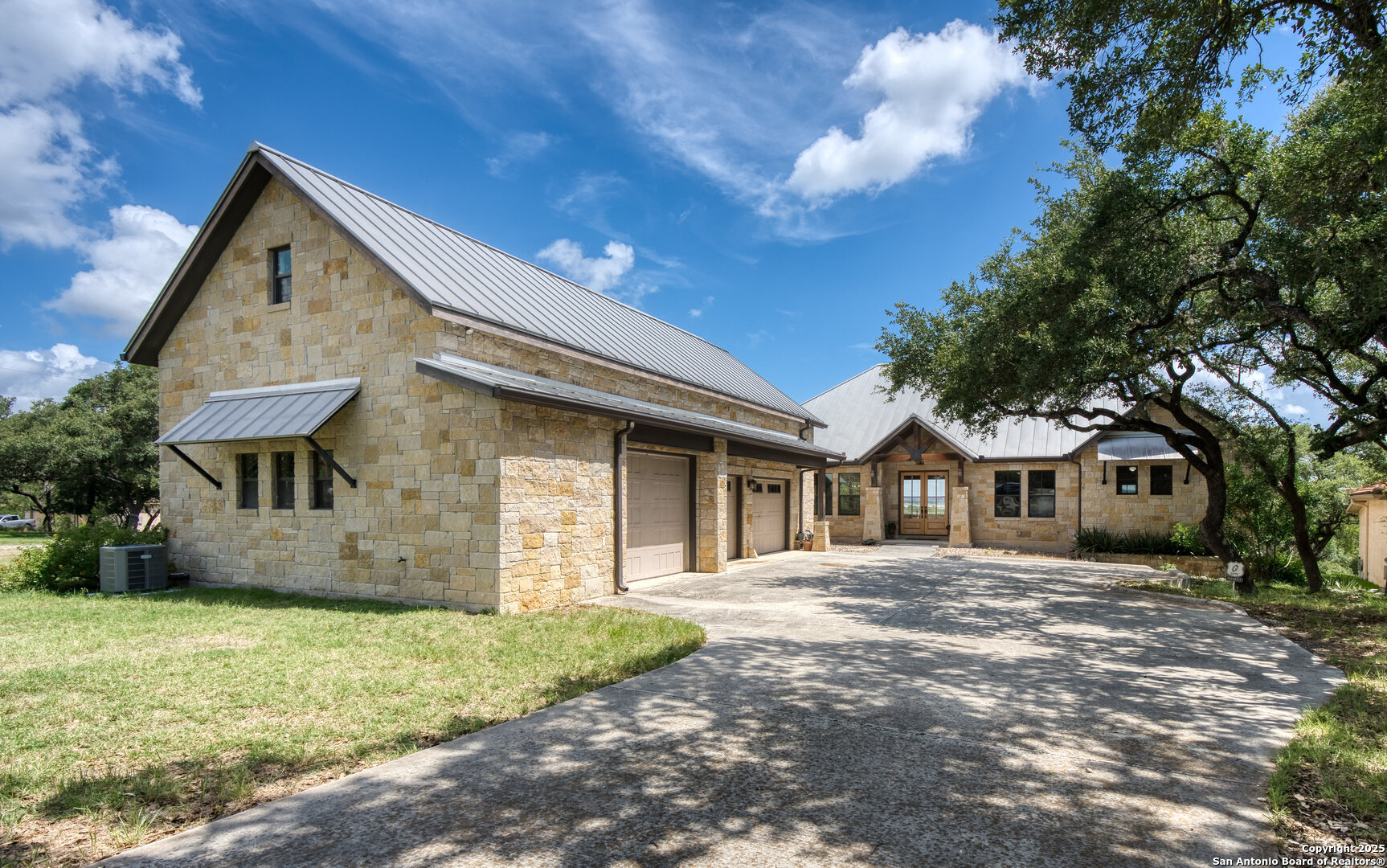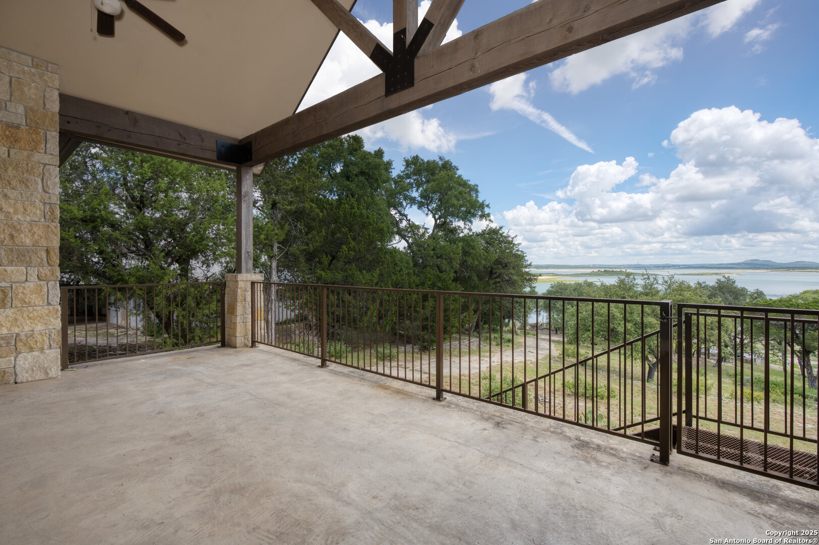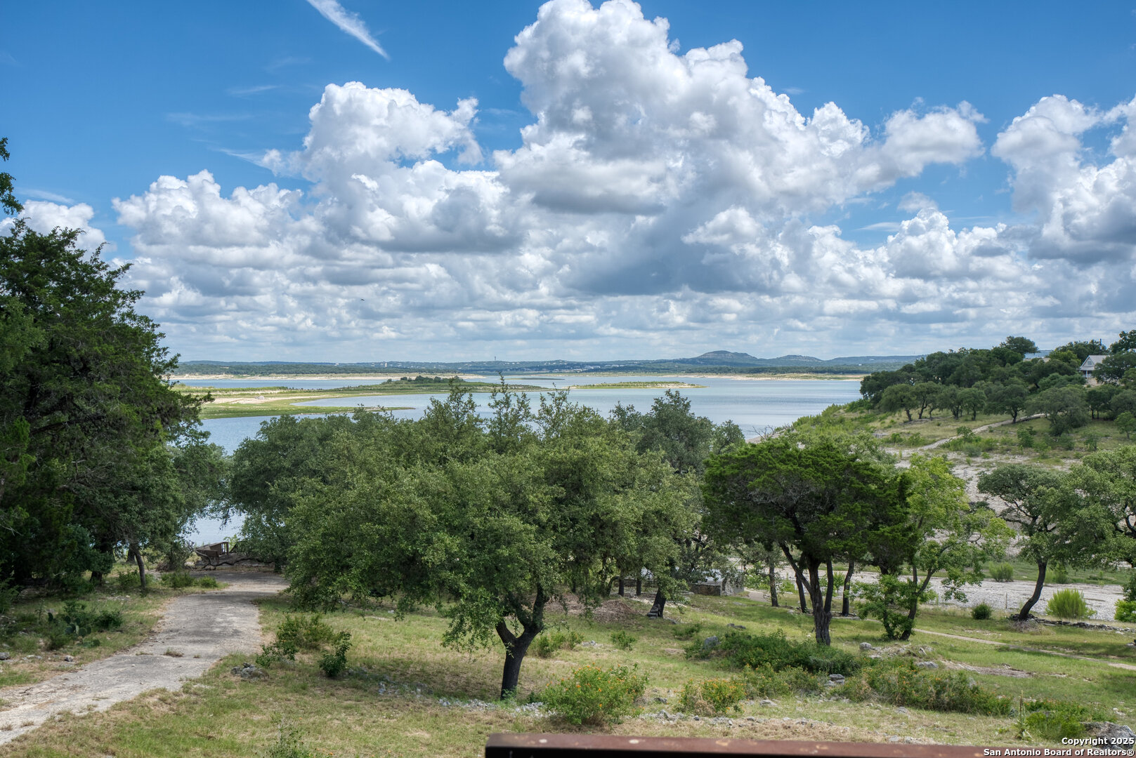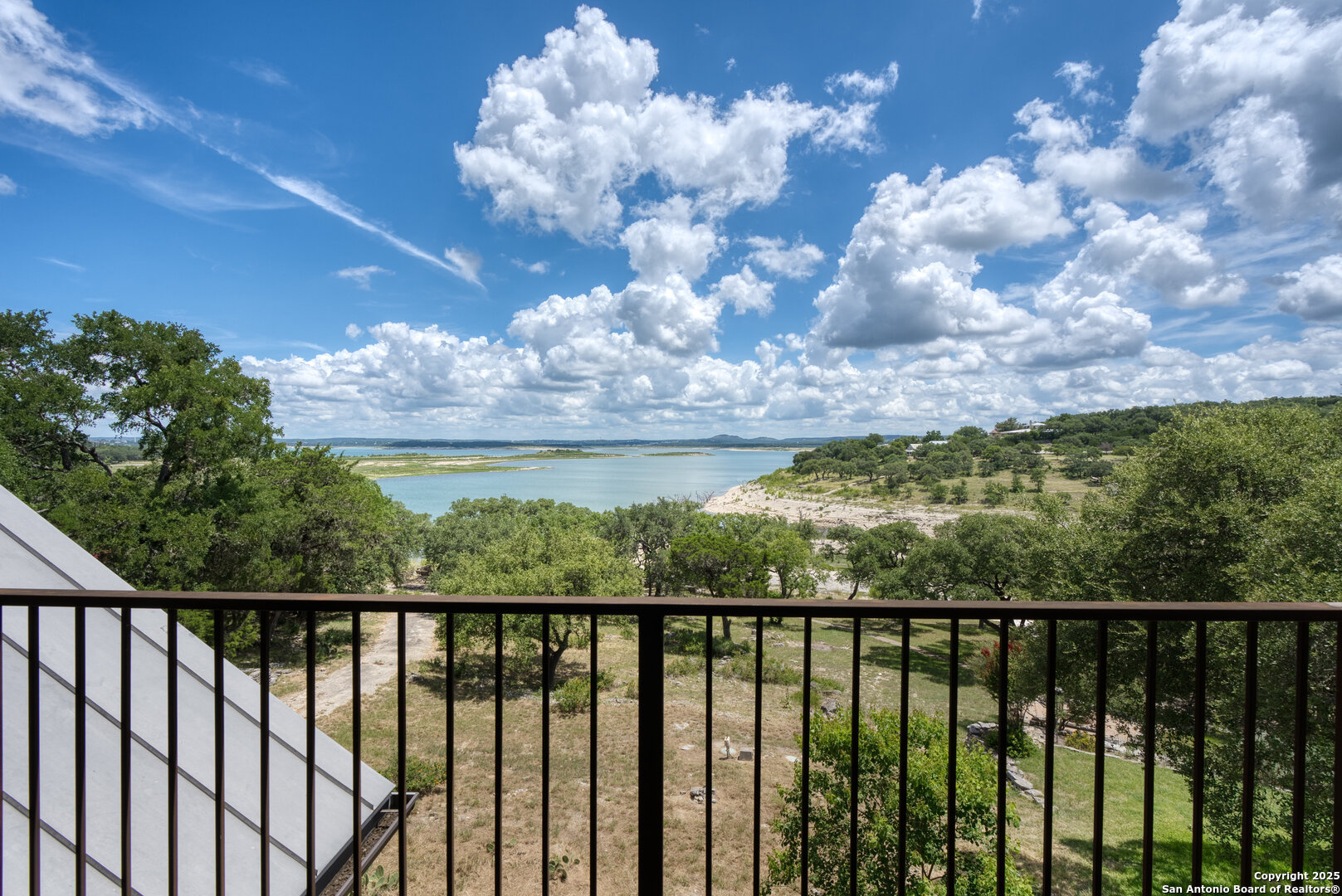 This custom home in Five Oaks is situated on just over an acre with approximately 90' of Canyon Lake footage and road access to the lake. Designed to take advantage of the stunning lake views from the formal front entry to the covered rear patio, this open floorplan is an entertainer's delight. Two dining areas and a huge kitchen island with seating allow for hosting the entire family for dinner prepared in this spacious kitchen equipped with custom alder cabinets, granite countertops and warm copper sinks, plus a fabulous beverage center/coffee bar. The private master wing offers another amazing view from the bedroom balcony, a relaxing ensuite with spa tub, walk-in shower and plenty of counter space, and convenient laundry location. Downstairs are two additional bedrooms (one currently used as a study) and a hall bath. Upstairs, a bonus room with custom built-in beds with storage and 1/2 bath offer additional flex spaces. In addition to the home office and 3-car garage with workspace, this home has a guest apartment including a private living room, kitchenette, bedroom and full bath. The Five Oaks neighborhood is located across the lake from Comal Park, which is open seasonally and closes every day at sundown, providing a relaxing oasis on Canyon Lake.