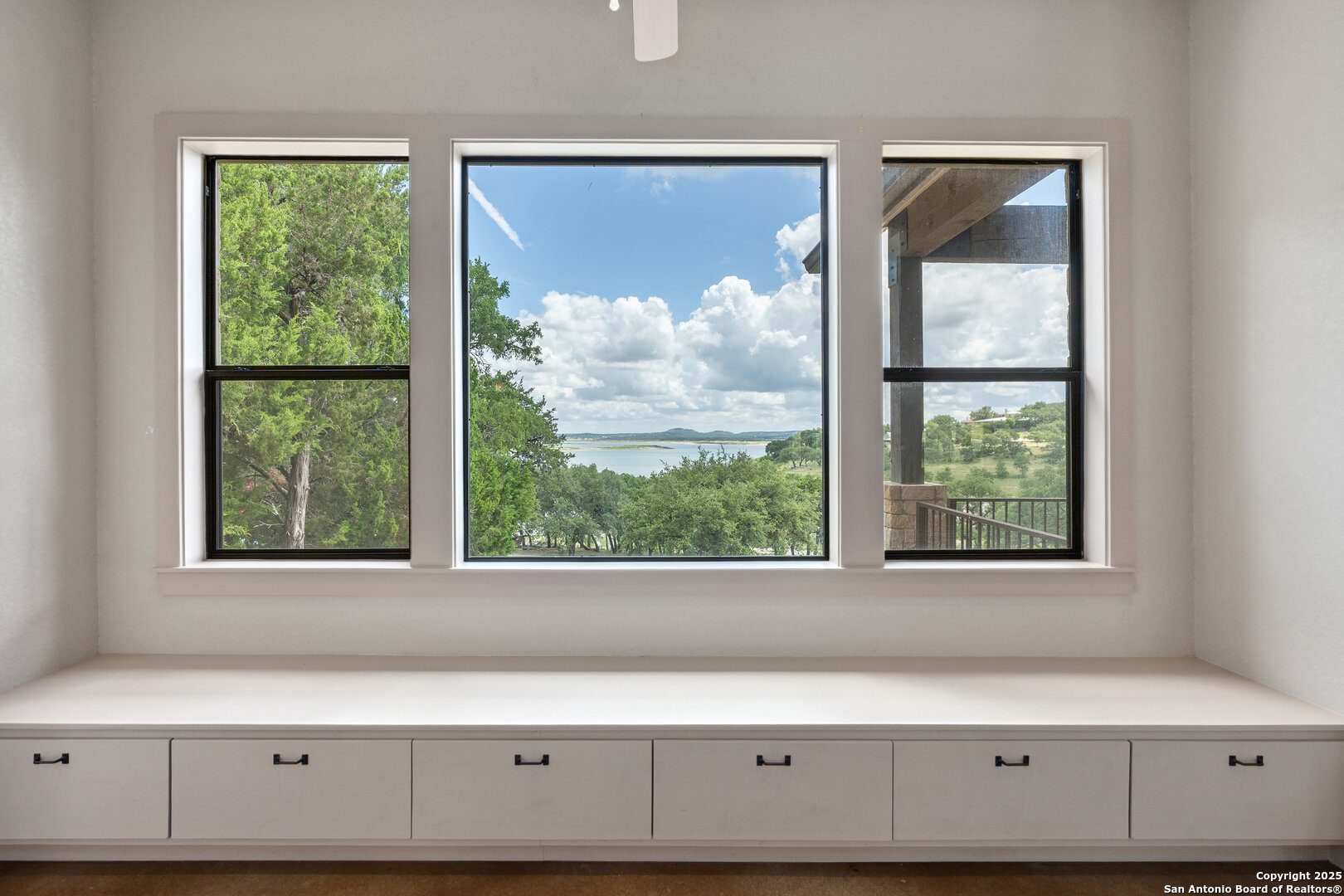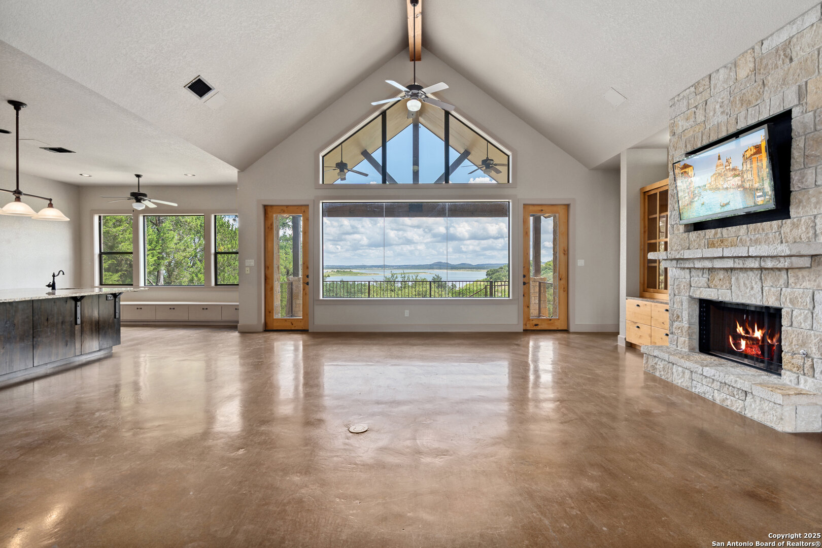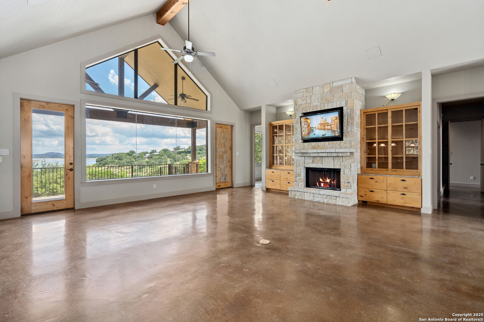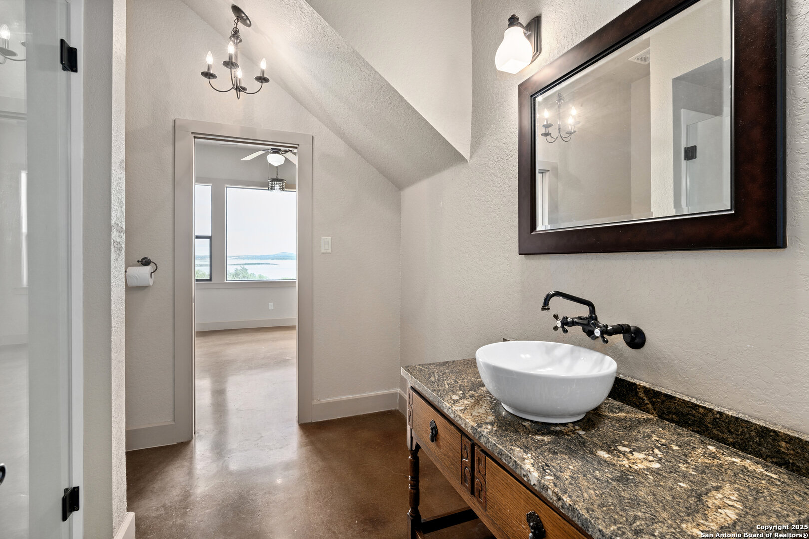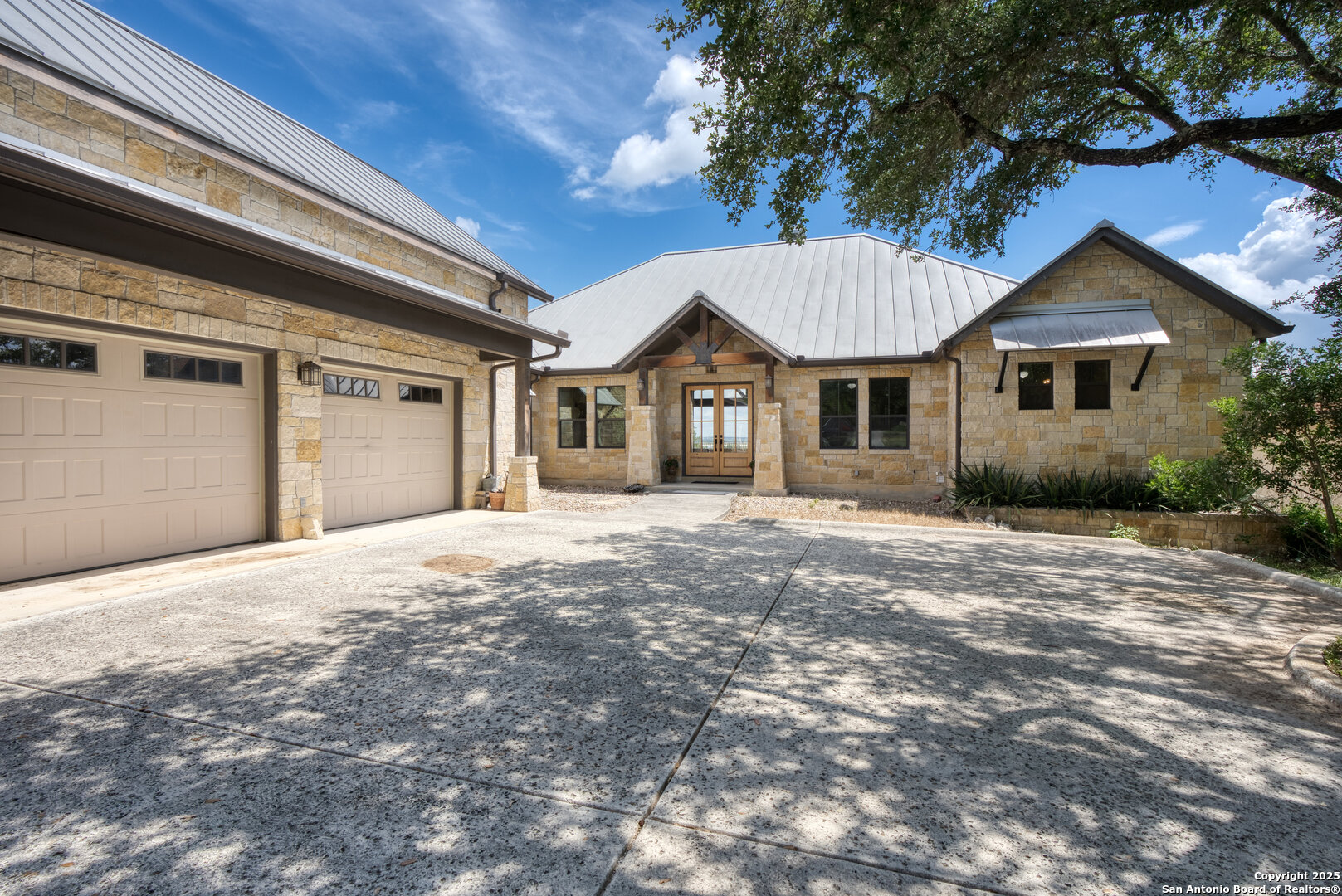 This custom home in Five Oaks is situated on just over an acre with approximately 90' of Canyon Lake footage and road access to the lake. Designed to take advantage of the stunning lake views from the formal front entry to the covered rear patio, this open floorplan is an entertainer's delight. Two dining areas and a huge kitchen island with seating allow for hosting the entire family for dinner prepared in this spacious kitchen equipped with custom alder cabinets, granite countertops and warm copper sinks, plus a fabulous beverage center/coffee bar. The private master wing offers another amazing view from the bedroom balcony, a relaxing ensuite with spa tub, walk-in shower and plenty of counter space, and convenient laundry location. Downstairs are two additional bedrooms (one currently used as a study) and a hall bath. Upstairs, a bonus room with custom built-in beds with storage and 1/2 bath offer additional flex spaces. In addition to the home office and 3-car garage with workspace, this home has a guest apartment including a private living room, kitchenette, bedroom and full bath. The Five Oaks neighborhood is located across the lake from Comal Park, which is open seasonally and closes every day at sundown, providing a relaxing oasis on Canyon Lake.