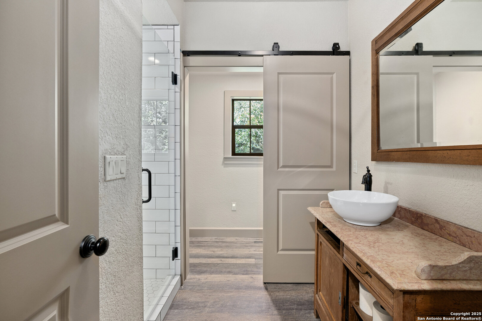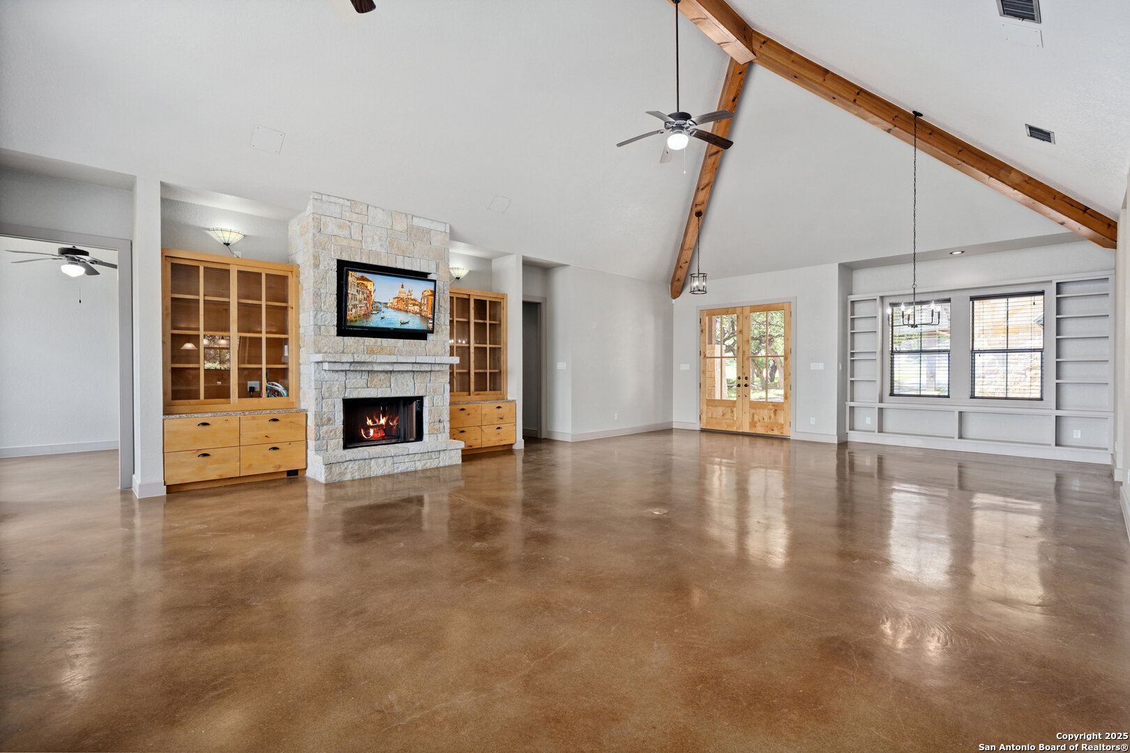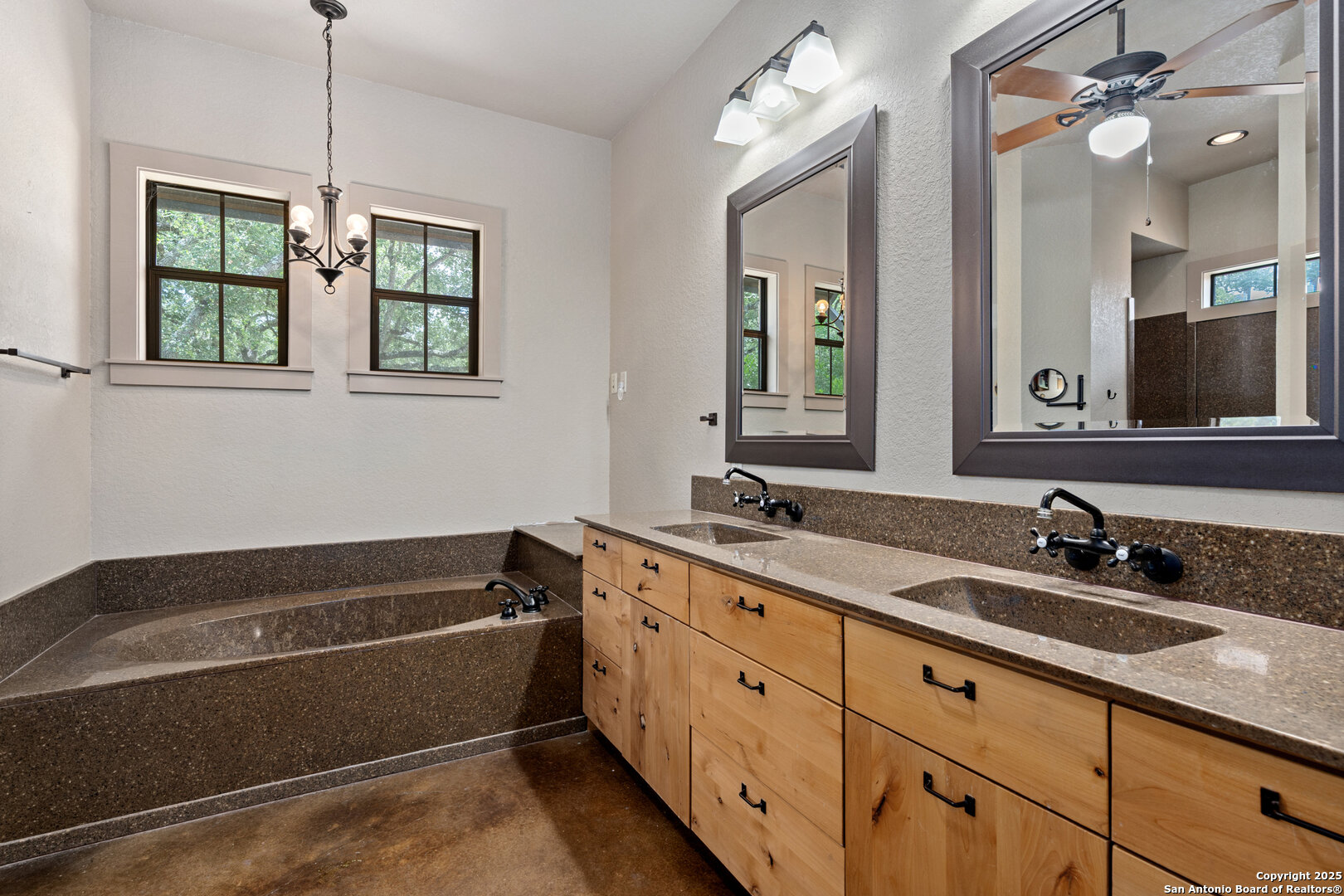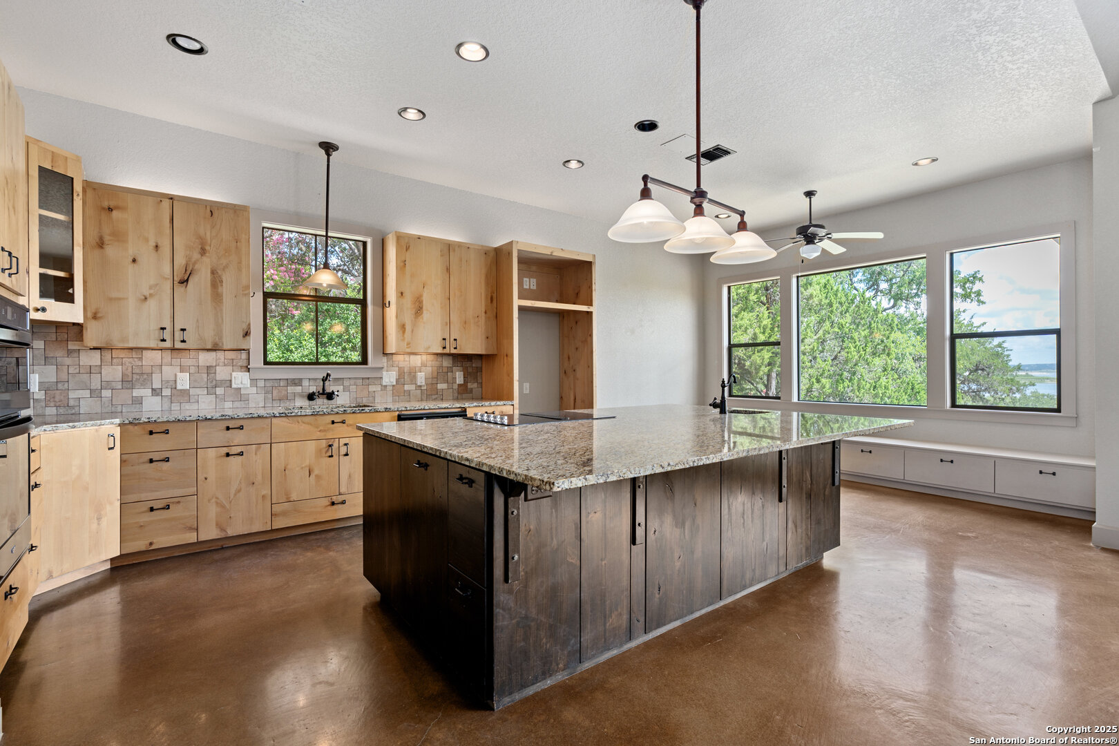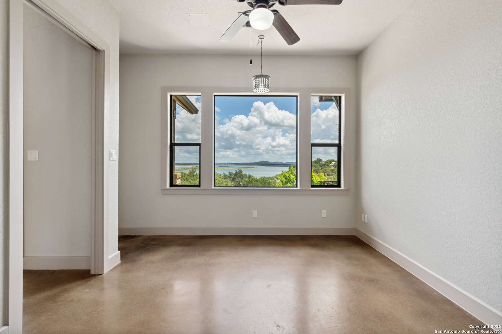 This custom home in Five Oaks is situated on just over an acre with approximately 90' of Canyon Lake footage and road access to the lake. Designed to take advantage of the stunning lake views from the formal front entry to the covered rear patio, this open floorplan is an entertainer's delight. Two dining areas and a huge kitchen island with seating allow for hosting the entire family for dinner prepared in this spacious kitchen equipped with custom alder cabinets, granite countertops and warm copper sinks, plus a fabulous beverage center/coffee bar. The private master wing offers another amazing view from the bedroom balcony, a relaxing ensuite with spa tub, walk-in shower and plenty of counter space, and convenient laundry location. Downstairs are two additional bedrooms (one currently used as a study) and a hall bath. Upstairs, a bonus room with custom built-in beds with storage and 1/2 bath offer additional flex spaces. In addition to the home office and 3-car garage with workspace, this home has a guest apartment including a private living room, kitchenette, bedroom and full bath. The Five Oaks neighborhood is located across the lake from Comal Park, which is open seasonally and closes every day at sundown, providing a relaxing oasis on Canyon Lake.
