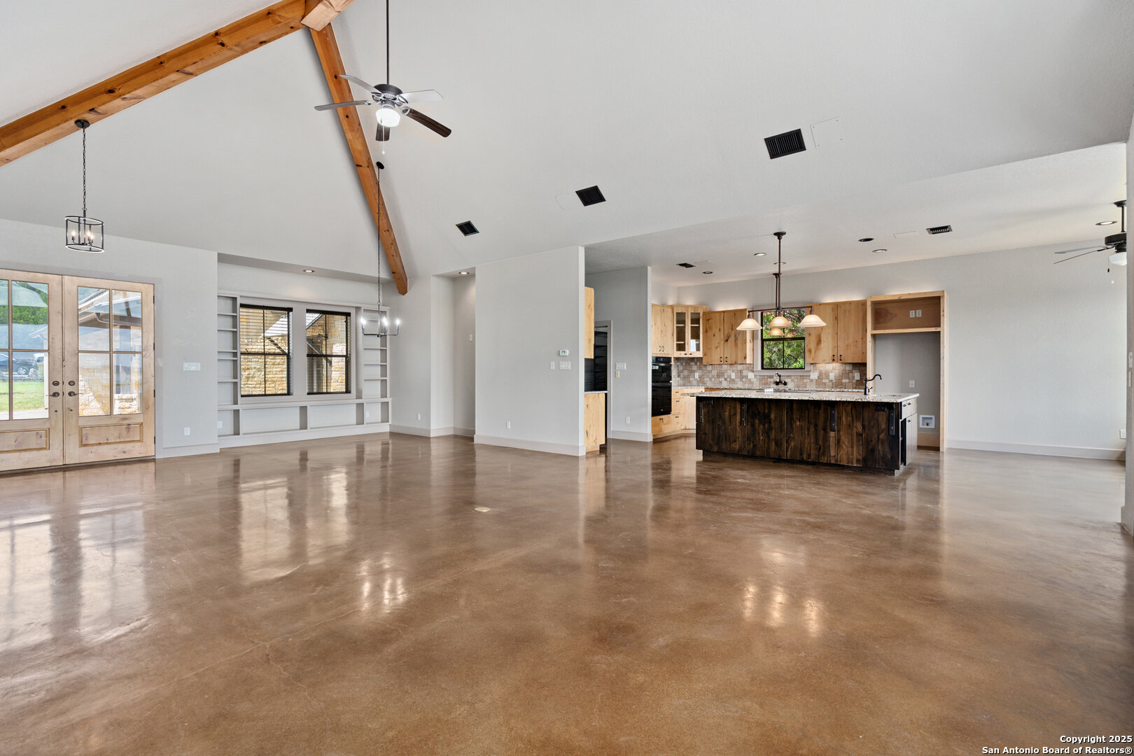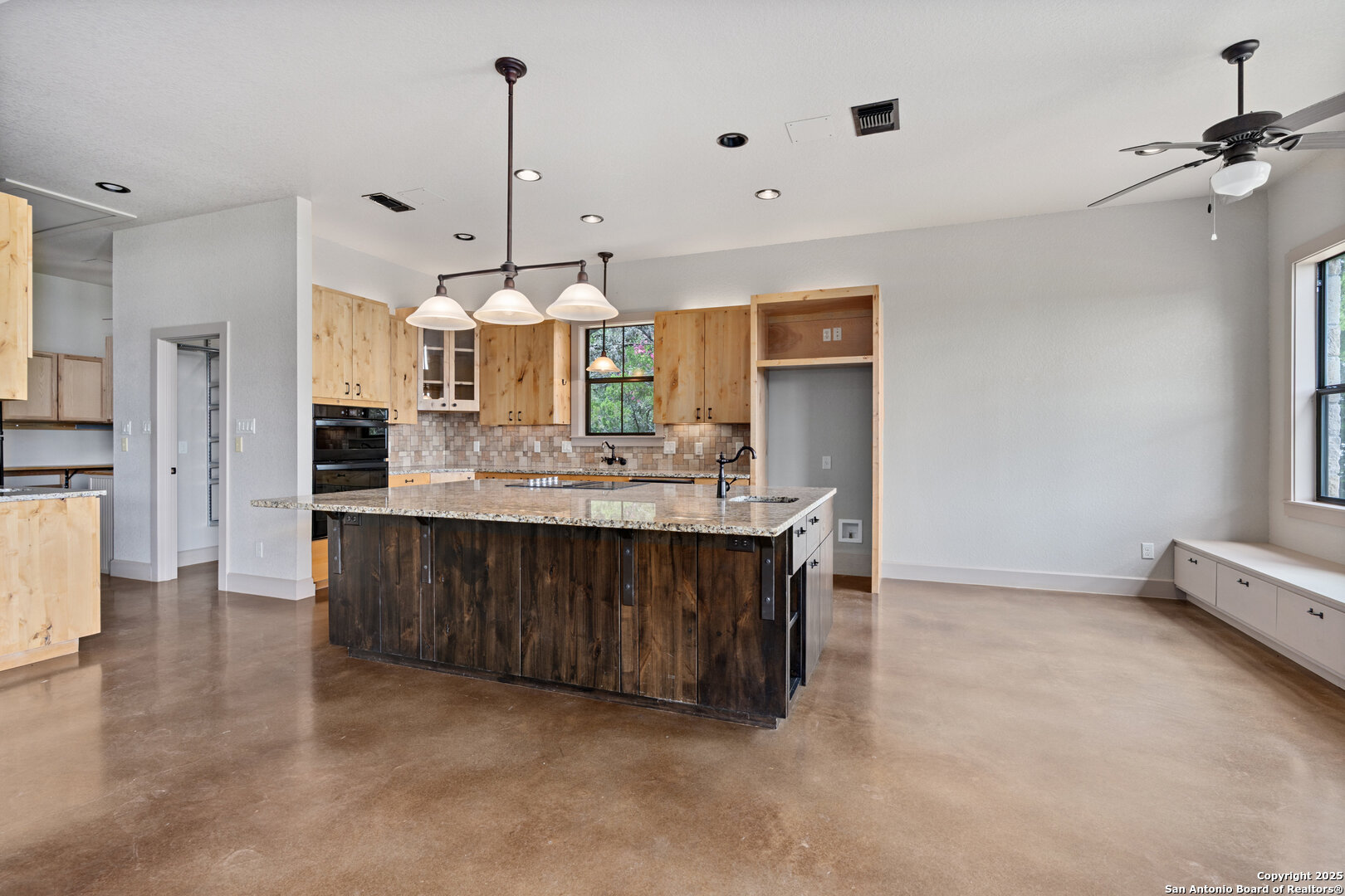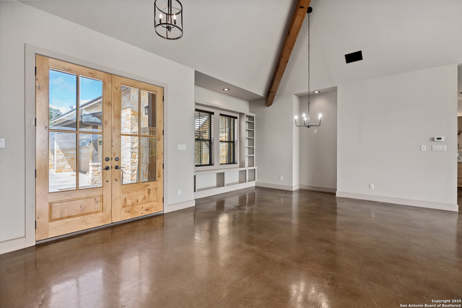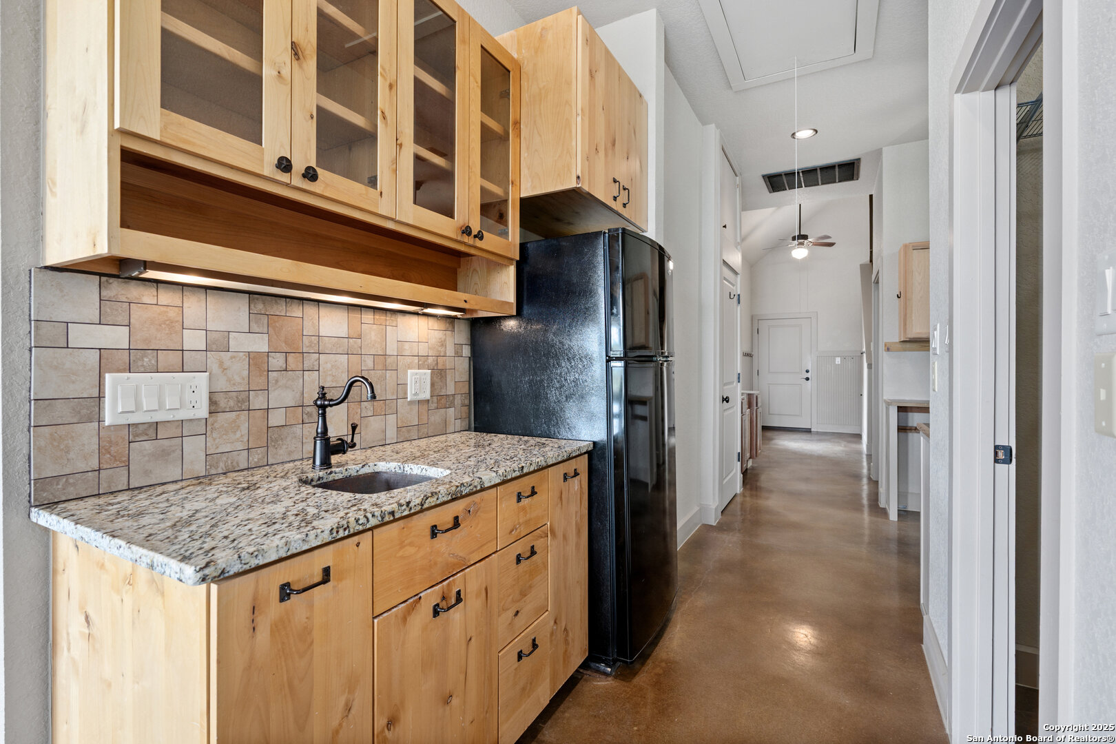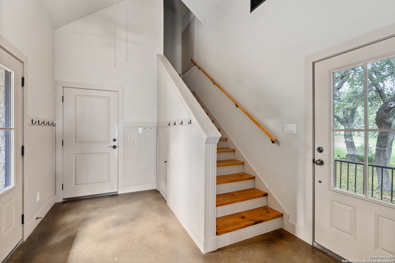 This custom home in Five Oaks is situated on just over an acre with approximately 90' of Canyon Lake footage and road access to the lake. Designed to take advantage of the stunning lake views from the formal front entry to the covered rear patio, this open floorplan is an entertainer's delight. Two dining areas and a huge kitchen island with seating allow for hosting the entire family for dinner prepared in this spacious kitchen equipped with custom alder cabinets, granite countertops and warm copper sinks, plus a fabulous beverage center/coffee bar. The private master wing offers another amazing view from the bedroom balcony, a relaxing ensuite with spa tub, walk-in shower and plenty of counter space, and convenient laundry location. Downstairs are two additional bedrooms (one currently used as a study) and a hall bath. Upstairs, a bonus room with custom built-in beds with storage and 1/2 bath offer additional flex spaces. In addition to the home office and 3-car garage with workspace, this home has a guest apartment including a private living room, kitchenette, bedroom and full bath. The Five Oaks neighborhood is located across the lake from Comal Park, which is open seasonally and closes every day at sundown, providing a relaxing oasis on Canyon Lake.