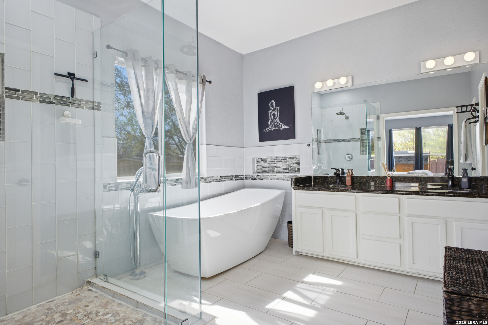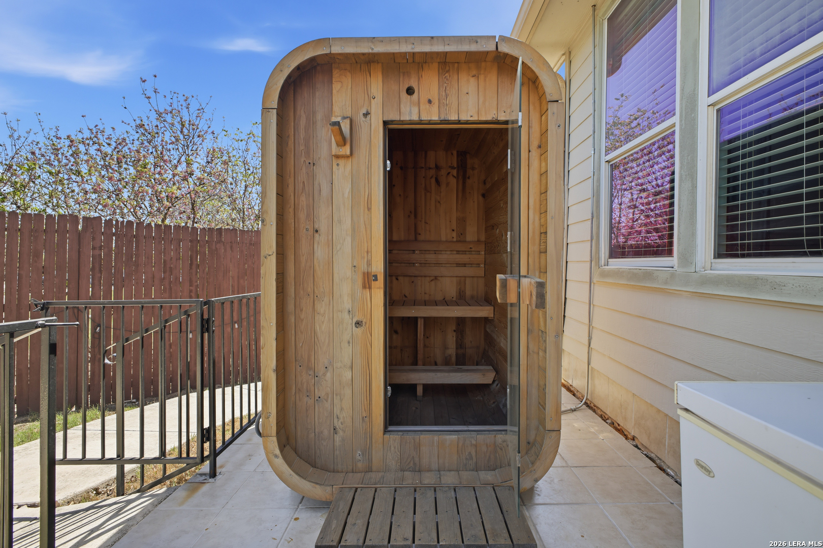 Long Texas summers were made for a backyard like this - where poolside afternoons, patio dinners, and relaxed evenings in the sauna turn everyday life into something special with family and friends. Tucked into a quiet cul-de-sac within a gated neighborhood of only 54 homes, this property offers a lifestyle that is increasingly hard to find: peaceful, private, and filled with the kind of community where neighbors know each other. Bamberger Nature Park is within walking distance, and the home is just 10 minutes from the Medical Center, La Cantera, and UTSA. Few homes offer this level of peace of mind, with the roof, HVAC, water heater, water softener, pool pump with saltwater system, and kitchen appliances all updated within the last four years. Rarely does a home bring together lifestyle, location, and major updates this well - homes like this do not come along often!