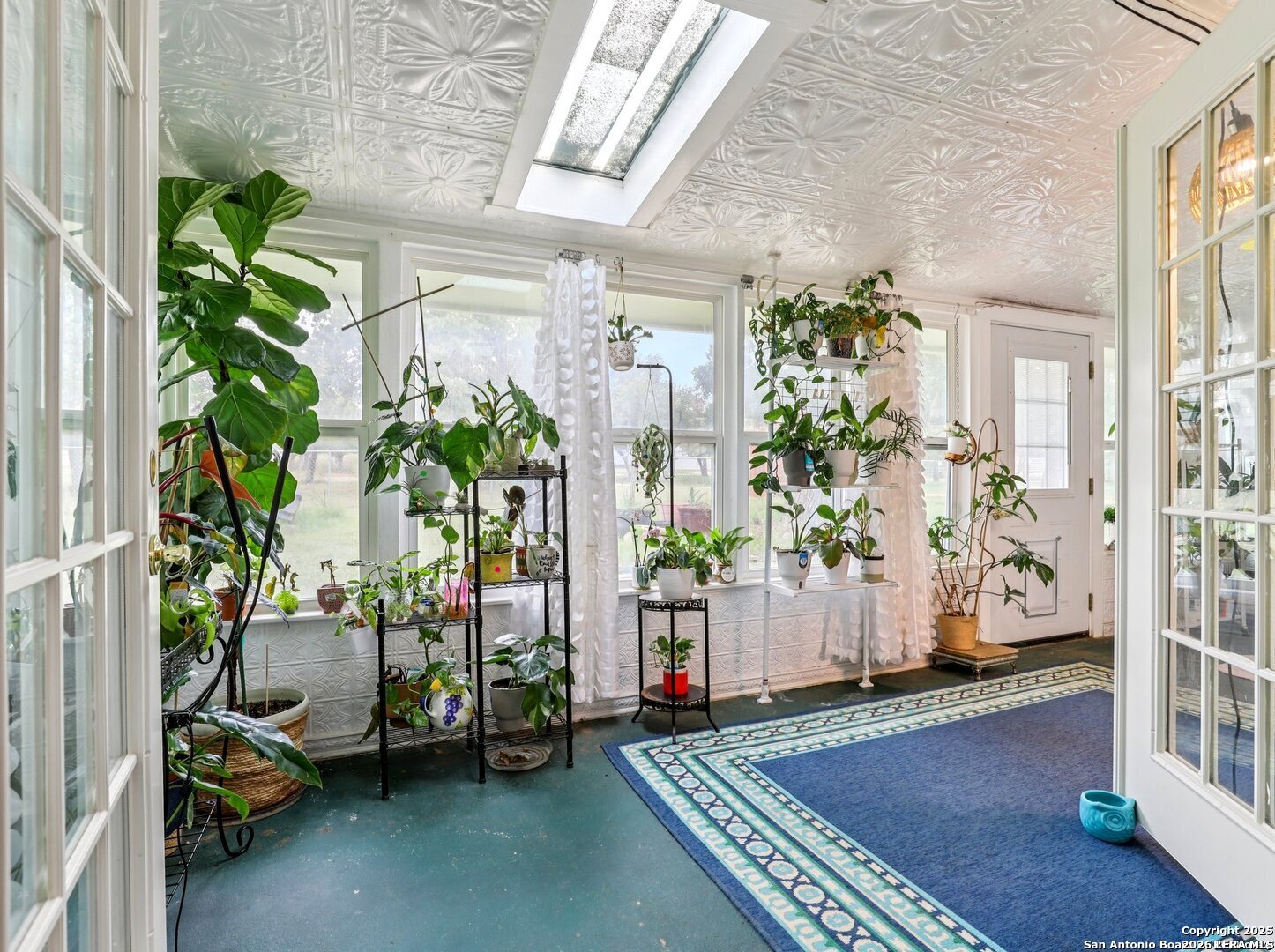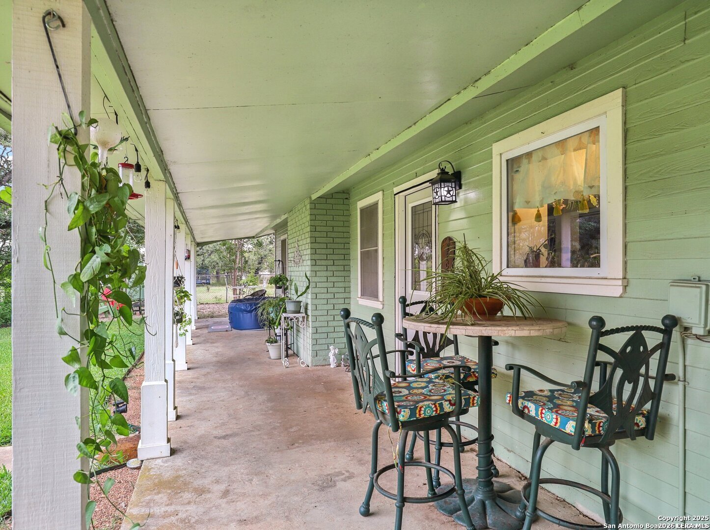 Five unrestricted acres just minutes from Fredericksburg offer the space, privacy, and freedom that define true Hill Country living. Surrounded by mature oaks, this 3-bedroom, 2-bathroom home provides a comfortable place to settle in while enjoying the flexibility of country living. Inside, the spacious living area features a charming brick wood-burning fireplace and skylights that bring in natural light. The kitchen is warm and inviting, complete with a farmhouse sink. The primary bathroom has been thoughtfully updated, while the rest of the home offers a solid layout ready to enjoy. A large laundry and storage area adds everyday convenience, and the primary bedroom includes direct access to the outdoors and fully fenced yard. The sunroom provides a versatile bonus space, perfect for a home office, craft room, reading nook, or quiet place to unwind. Outside, a full-length front porch overlooks mature oak trees and offers pleasant Hill Country views with plenty of room to relax and enjoy the surroundings. The property also includes two separate outbuildings, one on a concrete slab with power and another located on the opposite side of the home. Both provide excellent space for projects, equipment, or additional storage. With five acres, there's plenty of room to create the lifestyle you've been dreaming of. Whether that means starting a small homestead, raising animals, planting a large garden, or simply enjoying the privacy and independence of country living, this property offers the flexibility to make it happen. All of this just minutes from Fredericksburg's wineries, restaurants, shopping, and historic charm.