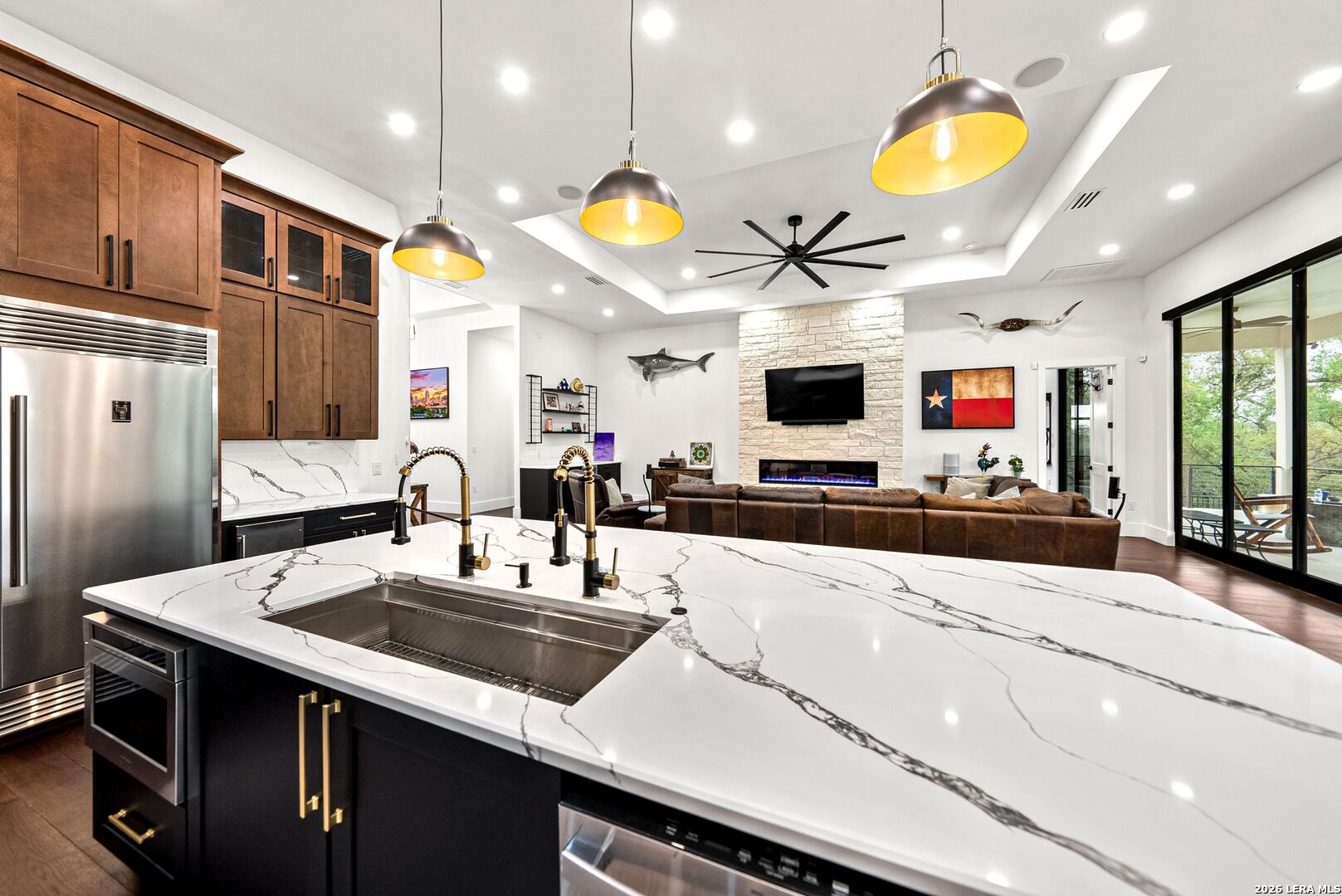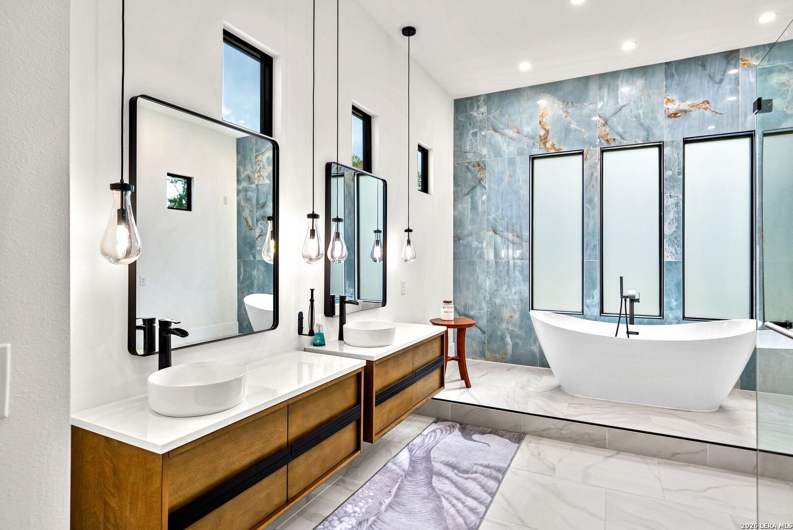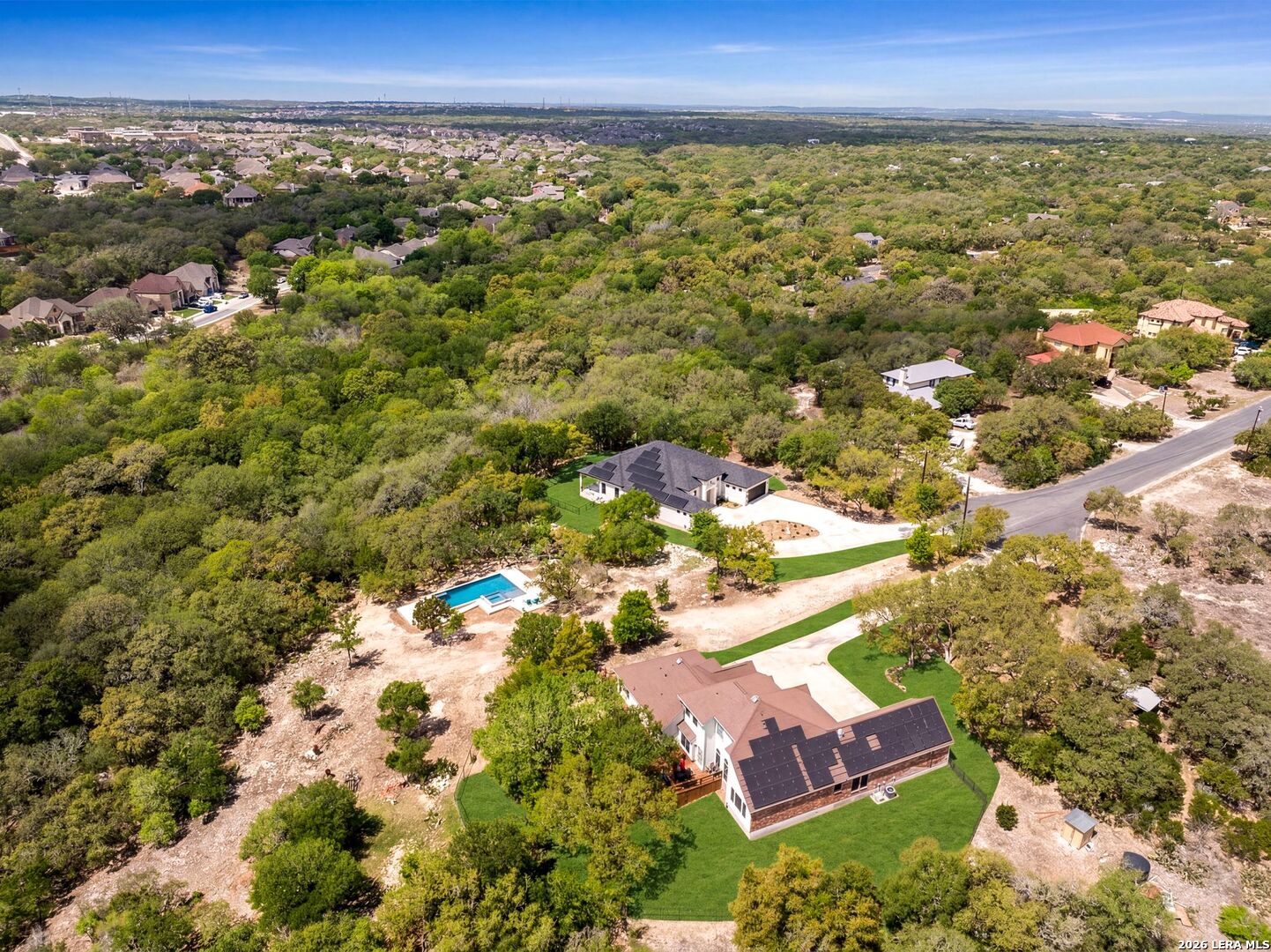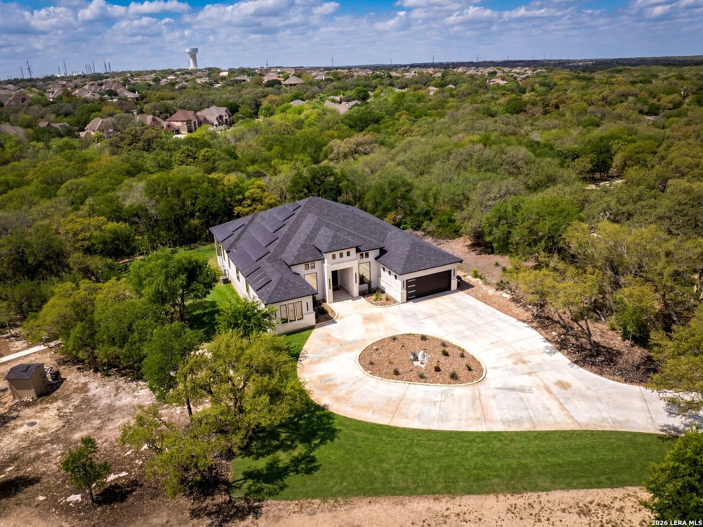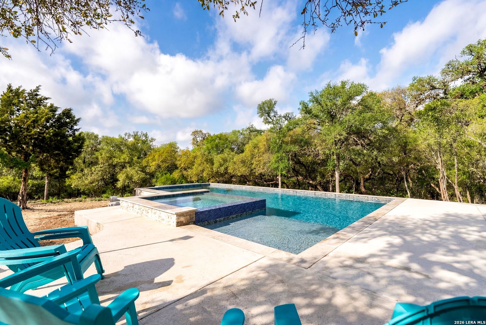 From the moment you arrive, this exceptional and luxury home makes a statement. Experience elevated living in this stunning 2024-built estate nestled in the prestigious Rolling Oaks Estates. Showcasing breathtaking modern curb appeal and a grand circular driveway, this exquisite one-story home spans 3,654 square feet on a serene 1.5-acre cul-de-sac lot, backing to a lush greenbelt for ultimate privacy and tranquility. Designed with an expansive open floor plan, the home features 4 oversized bedrooms, each with its own ensuite bath along with 4 full and 2 half bathrooms, offering unparalleled comfort and sophistication. Every detail has been thoughtfully curated, from designer-selected finishes to striking custom architectural elements, creating a true luxury showcase. Expansive picture windows flood the home with natural light, seamlessly blending indoor and outdoor living. The gourmet kitchen is truly a chef's dream, featuring professional-grade appliances, a propane range, quartz countertops, and custom two-tone cabinetry. The primary suite offers a private retreat with a spa-inspired luxurious bathroom, complete with a freestanding soaking tub, walk-in shower, and an expansive custom closet with dual vanity areas. Step outside to your private oasis featuring a breathtaking, sparkling diving pool, luxurious hot tub- ideal for a relaxing evening, alongside a fully equipped outdoor kitchen, oversized patio, and professionally landscaped grounds with a sprinkler system.. Additional upgrades include foam insulation and countless premium and high quality features all with the added benefit of no city taxes. This ideal location offers homeowners a perfect balance of tranquility and convenience. With easy access to Highway 1604 and 211, this home offers multiple commute options and the convenience of being close to HEB, Costco, Flix Brewhouse, Lackland AFB and so much more. Don't miss your opportunity to make this your new home in the beautiful state of Texas.