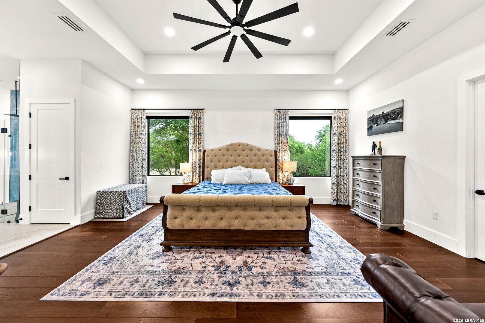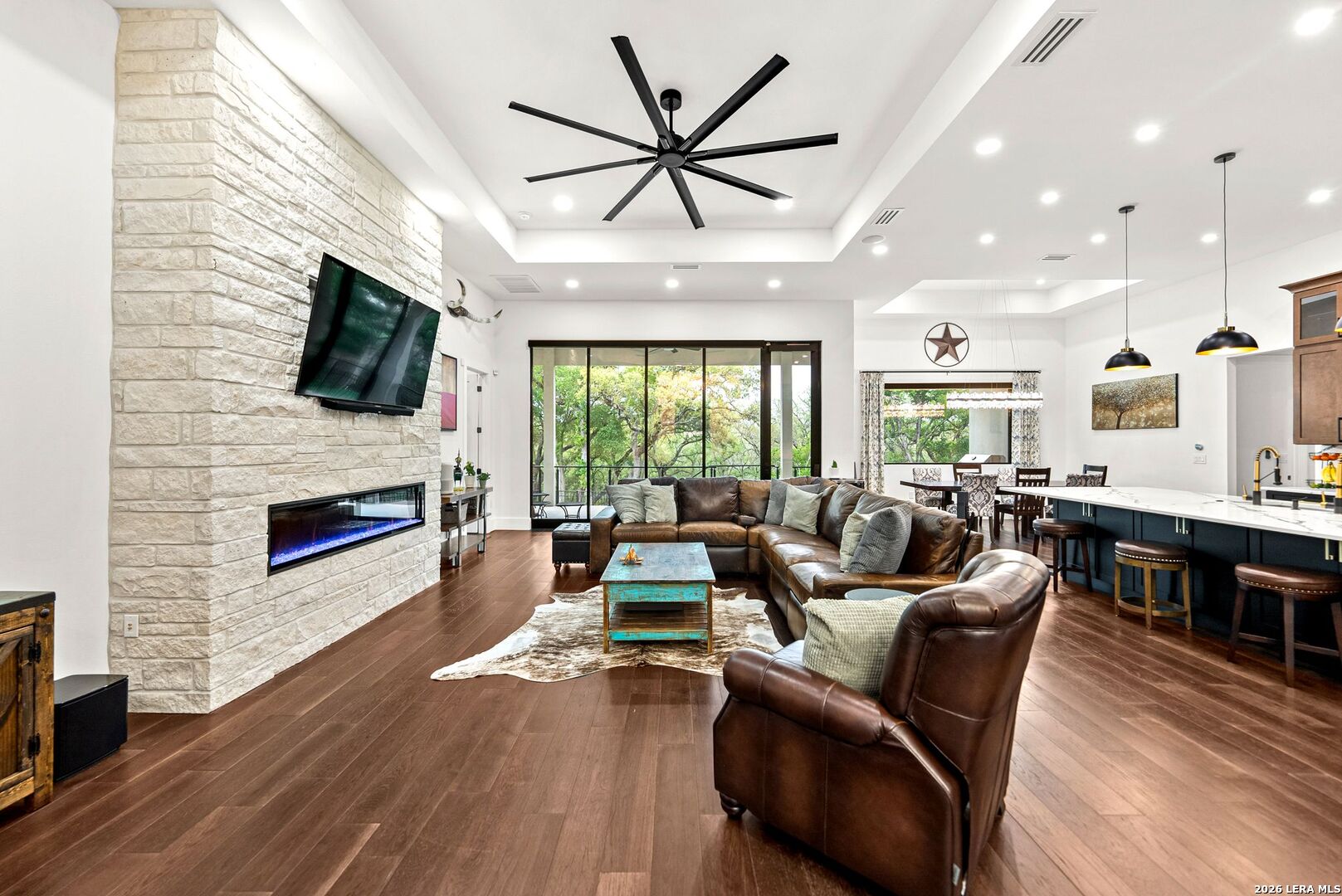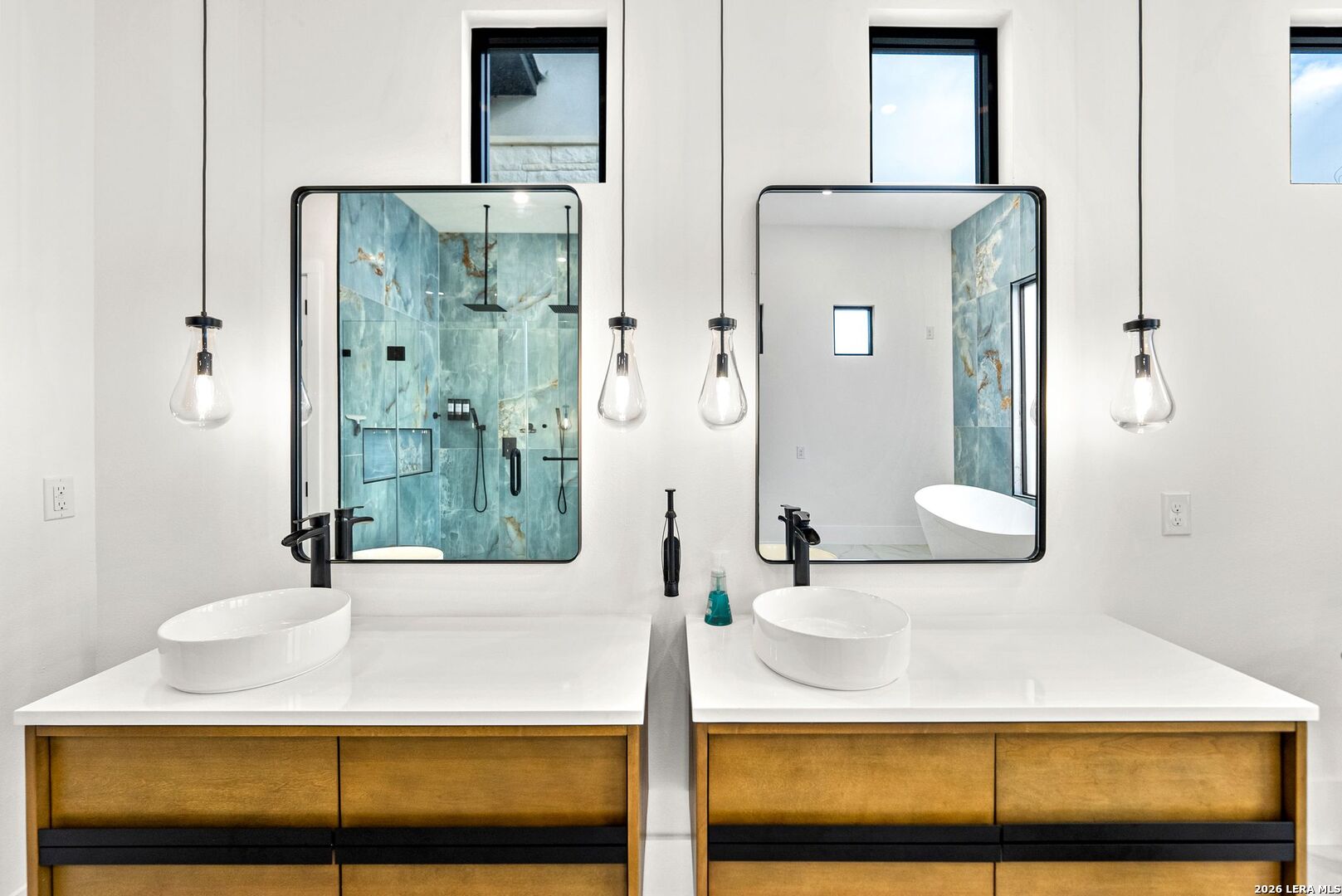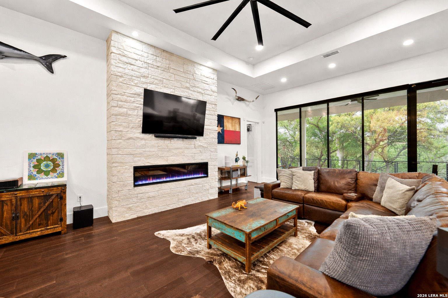 From the moment you arrive, this exceptional and luxury home makes a statement. Experience elevated living in this stunning 2024-built estate nestled in the prestigious Rolling Oaks Estates. Showcasing breathtaking modern curb appeal and a grand circular driveway, this exquisite one-story home spans 3,654 square feet on a serene 1.5-acre cul-de-sac lot, backing to a lush greenbelt for ultimate privacy and tranquility. Designed with an expansive open floor plan, the home features 4 oversized bedrooms, each with its own ensuite bath along with 4 full and 2 half bathrooms, offering unparalleled comfort and sophistication. Every detail has been thoughtfully curated, from designer-selected finishes to striking custom architectural elements, creating a true luxury showcase. Expansive picture windows flood the home with natural light, seamlessly blending indoor and outdoor living. The gourmet kitchen is truly a chef's dream, featuring professional-grade appliances, a propane range, quartz countertops, and custom two-tone cabinetry. The primary suite offers a private retreat with a spa-inspired luxurious bathroom, complete with a freestanding soaking tub, walk-in shower, and an expansive custom closet with dual vanity areas. Step outside to your private oasis featuring a breathtaking, sparkling diving pool, luxurious hot tub- ideal for a relaxing evening, alongside a fully equipped outdoor kitchen, oversized patio, and professionally landscaped grounds with a sprinkler system.. Additional upgrades include foam insulation and countless premium and high quality features all with the added benefit of no city taxes. This ideal location offers homeowners a perfect balance of tranquility and convenience. With easy access to Highway 1604 and 211, this home offers multiple commute options and the convenience of being close to HEB, Costco, Flix Brewhouse, Lackland AFB and so much more. Don't miss your opportunity to make this your new home in the beautiful state of Texas.