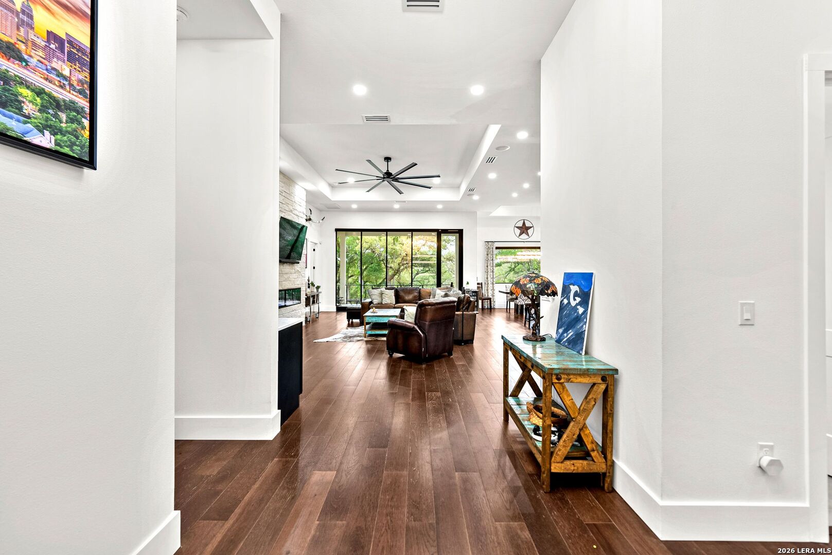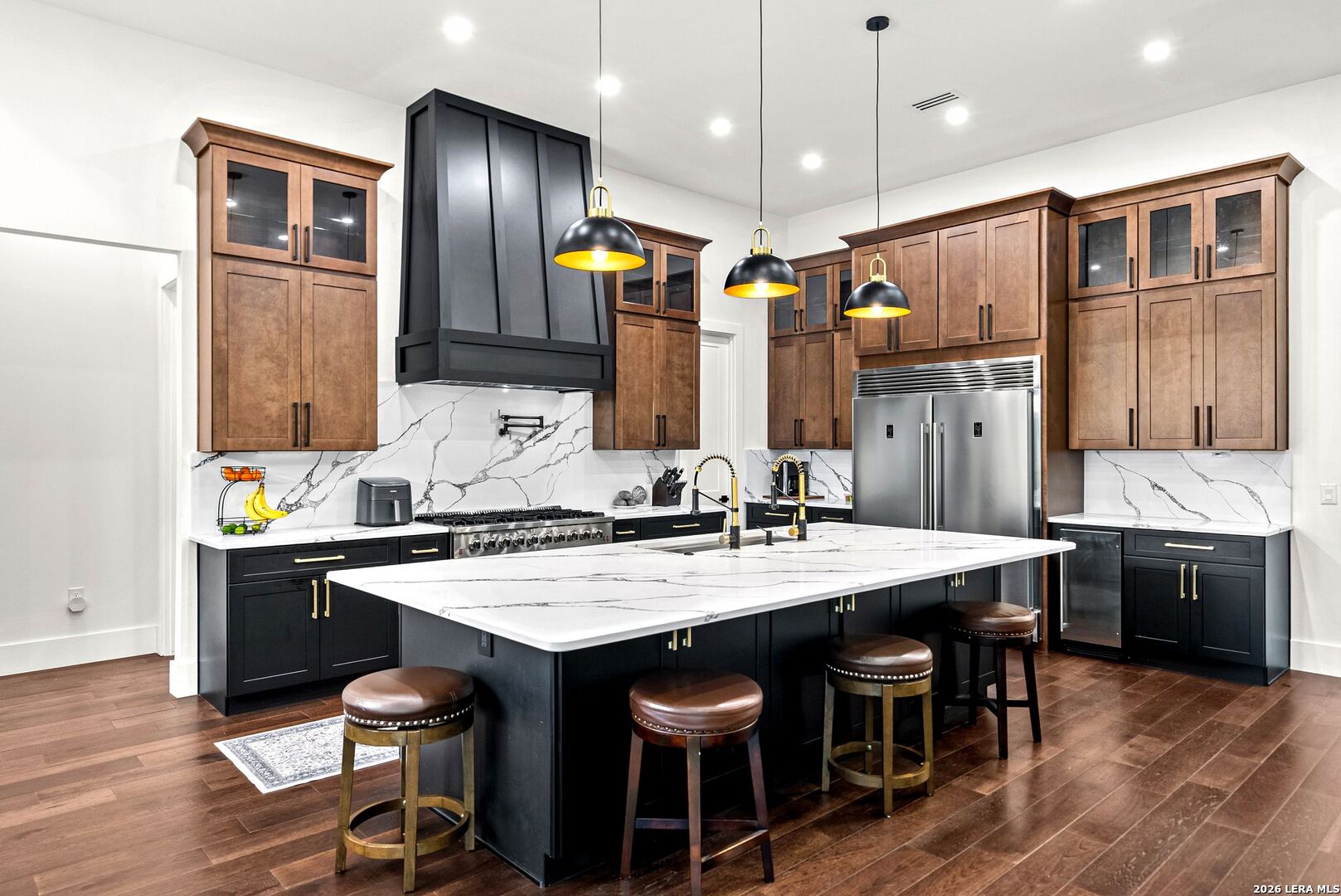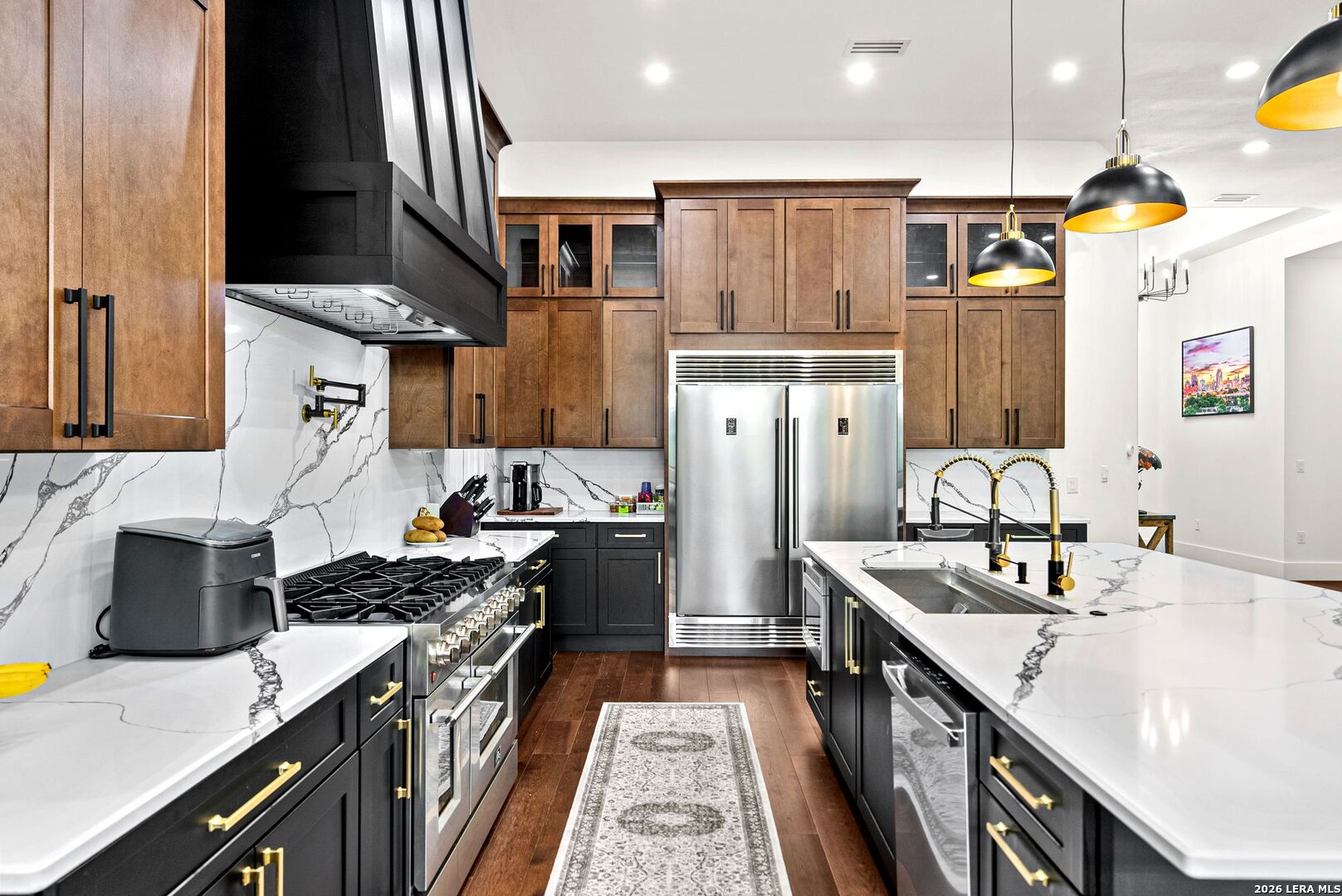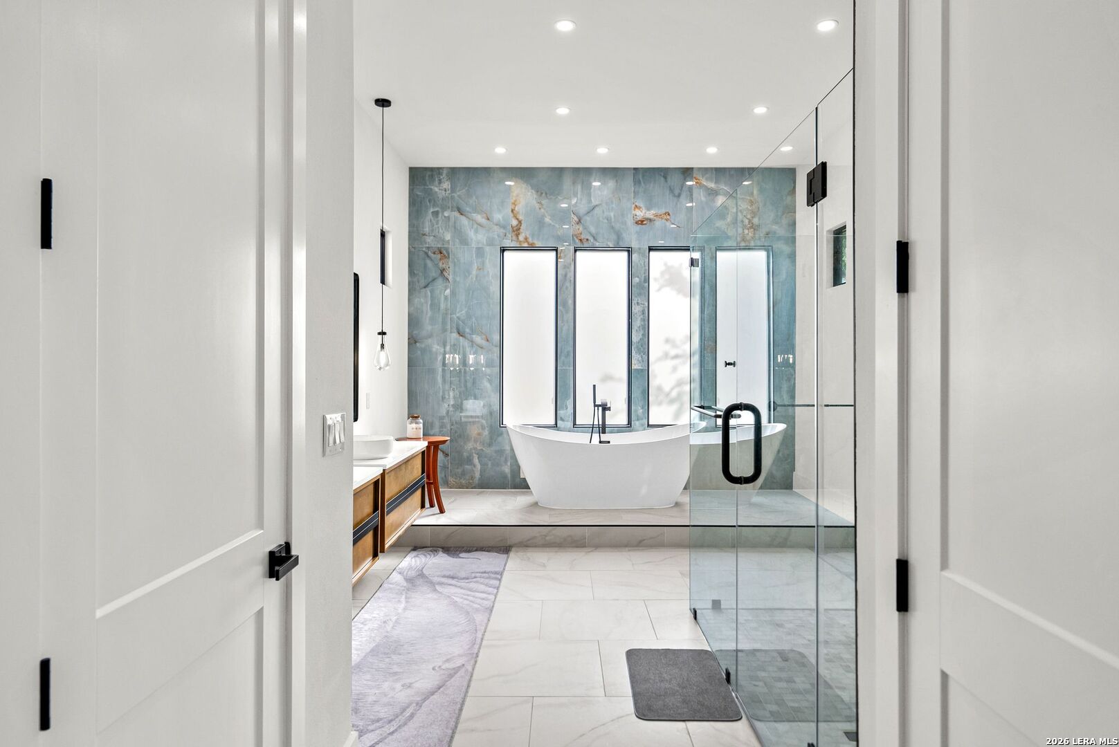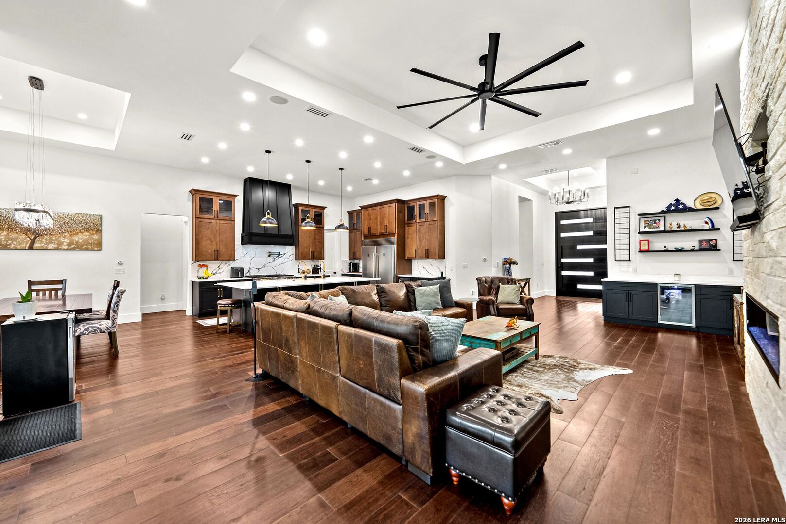 From the moment you arrive, this exceptional and luxury home makes a statement. Experience elevated living in this stunning 2024-built estate nestled in the prestigious Rolling Oaks Estates. Showcasing breathtaking modern curb appeal and a grand circular driveway, this exquisite one-story home spans 3,654 square feet on a serene 1.5-acre cul-de-sac lot, backing to a lush greenbelt for ultimate privacy and tranquility. Designed with an expansive open floor plan, the home features 4 oversized bedrooms, each with its own ensuite bath along with 4 full and 2 half bathrooms, offering unparalleled comfort and sophistication. Every detail has been thoughtfully curated, from designer-selected finishes to striking custom architectural elements, creating a true luxury showcase. Expansive picture windows flood the home with natural light, seamlessly blending indoor and outdoor living. The gourmet kitchen is truly a chef's dream, featuring professional-grade appliances, a propane range, quartz countertops, and custom two-tone cabinetry. The primary suite offers a private retreat with a spa-inspired luxurious bathroom, complete with a freestanding soaking tub, walk-in shower, and an expansive custom closet with dual vanity areas. Step outside to your private oasis featuring a breathtaking, sparkling diving pool, luxurious hot tub- ideal for a relaxing evening, alongside a fully equipped outdoor kitchen, oversized patio, and professionally landscaped grounds with a sprinkler system.. Additional upgrades include foam insulation and countless premium and high quality features all with the added benefit of no city taxes. This ideal location offers homeowners a perfect balance of tranquility and convenience. With easy access to Highway 1604 and 211, this home offers multiple commute options and the convenience of being close to HEB, Costco, Flix Brewhouse, Lackland AFB and so much more. Don't miss your opportunity to make this your new home in the beautiful state of Texas.