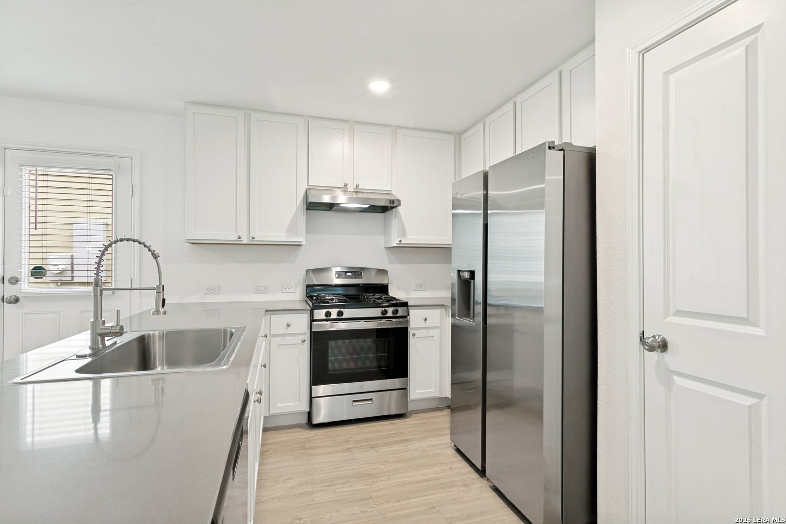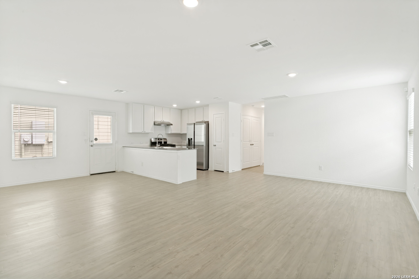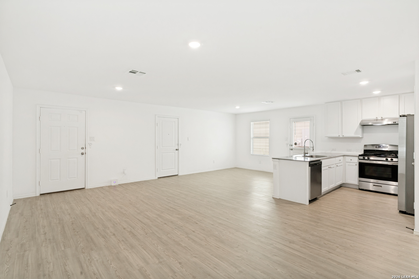Beautiful newer construction 4-bedroom, 2-bath home in a prime location near US-90, JBSA Lackland Air Force Base, and Kelly Field Annex, with easy access to shopping, dining, and everyday conveniences. Step inside to a spacious open-concept living and dining area filled with natural light, featuring neutral tones, upgraded wood-look vinyl flooring, and recessed lighting throughout. The gourmet kitchen is equipped with stainless steel appliances, gas cooking, granite countertops, a breakfast bar, and a pantry-perfect for both everyday living and entertaining. The large primary suite offers a private full bathroom and generous walk-in closet space. Secondary bedrooms are well-sized, and the additional full bathroom includes a tub/shower combination. A convenient laundry closet with washer and dryer is located in the main hallway. Enjoy the backyard with a privacy fence, along with the added benefit of a spacious two-car garage. An elementary school is located within the subdivision for added convenience. Pets considered on a case-by-case basis.