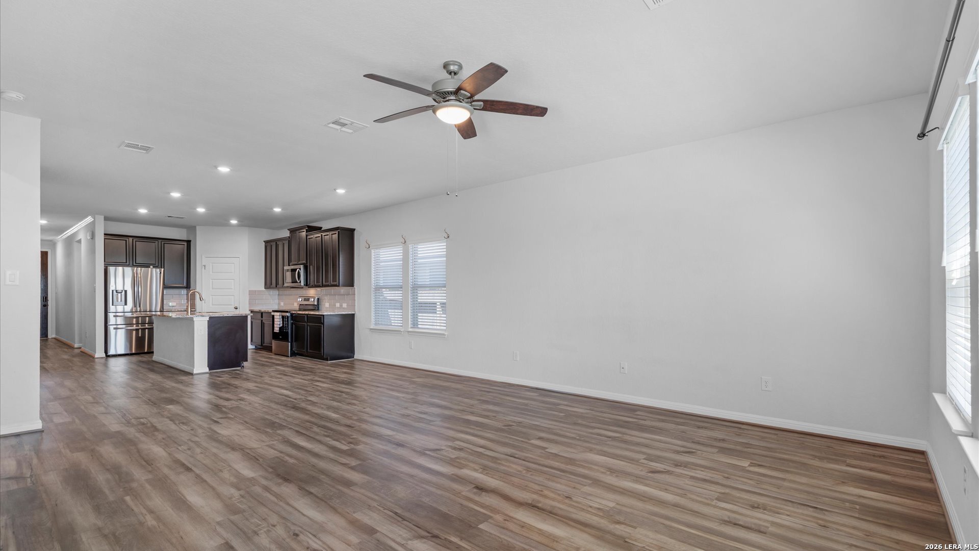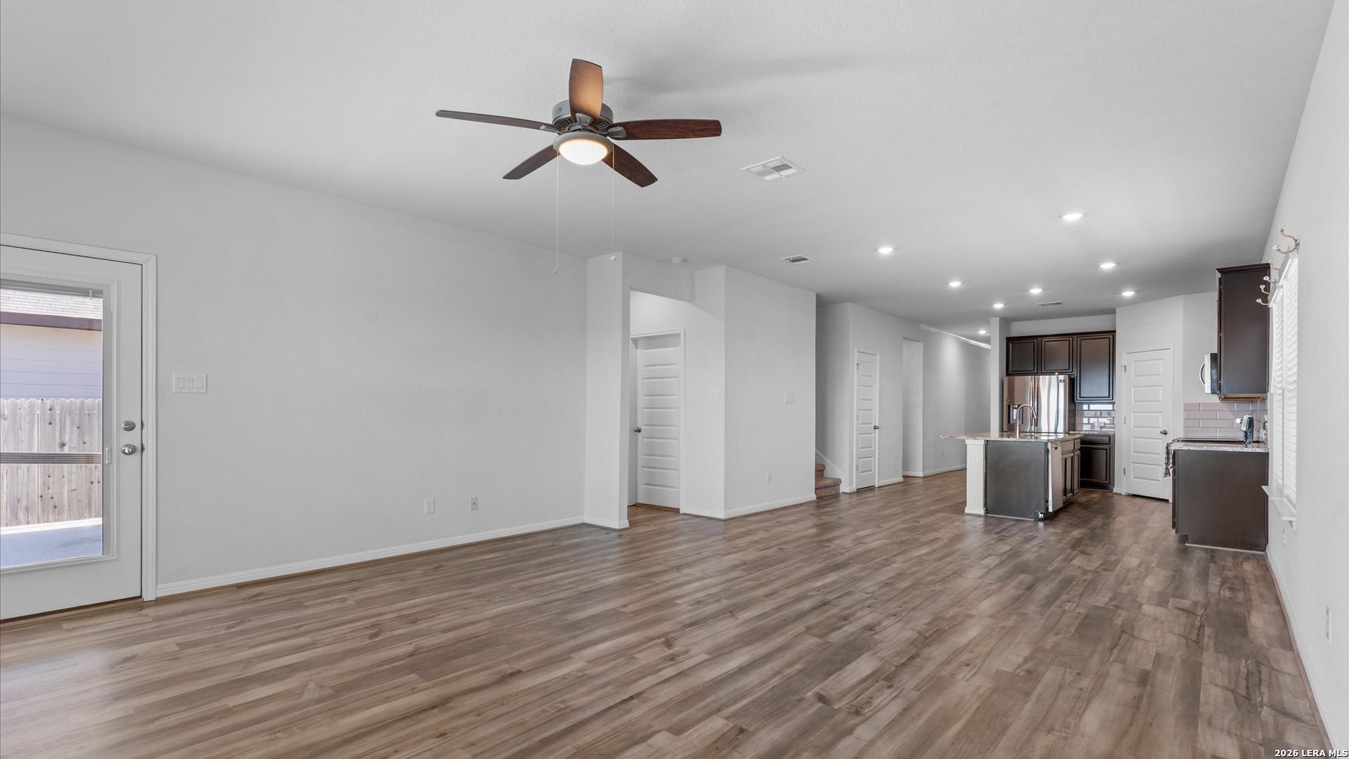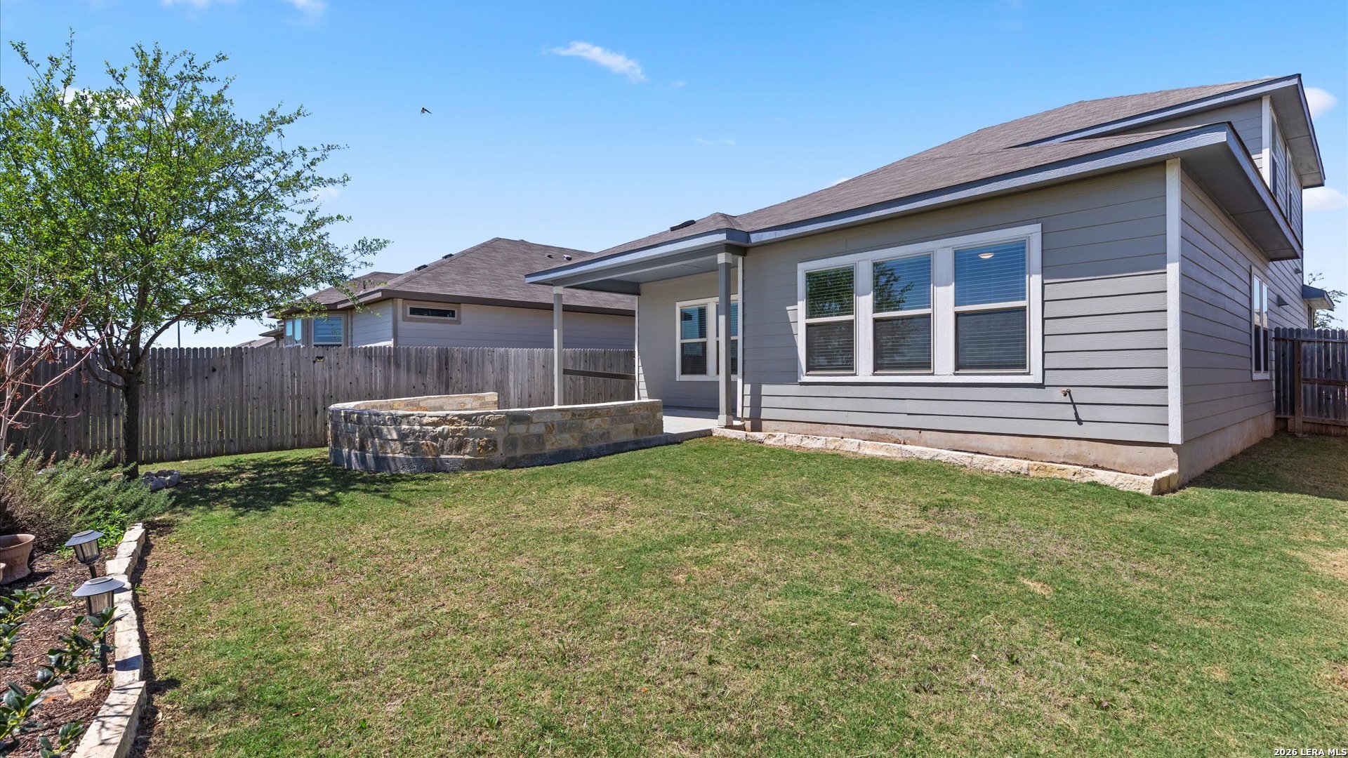 Welcome to 724 Clara Park in the desirable Meyers Landing community of New Braunfels-a beautifully designed 5-bedroom, 3-bath home offering space, flexibility, and a prime location in the heart of the Texas Hill Country. From the moment you walk in, you'll appreciate the open-concept layout that seamlessly connects the kitchen, dining, and living areas-perfect for everyday living and entertaining. The kitchen is the true centerpiece, featuring a large island, ample cabinetry, and included appliances such as the refrigerator, microwave, and range, making this home truly move-in ready. Designed with functionality in mind, the main level includes a spacious primary suite with a private bath, along with a secondary guest bedroom and full bathroom-ideal for multi-generational living, visiting guests, or a private home office setup. Upstairs, you'll find a generous multi-purpose living area that can easily serve as a game room, media room, or kids' play space, along with an additional dedicated office-perfect for remote work or study. Three additional bedrooms upstairs provide plenty of room for growing families or those needing extra space. Step outside and enjoy a private backyard retreat with no back neighbors, offering peace and added privacy. The covered patio and extended concrete pad create the perfect setting for outdoor gatherings, while the custom stone seating wall adds both charm and functionality for entertaining. Located just minutes from Gruene Historic District, Creekside Town Center, Resolute Health Hospital, Buc-ee's, and quick access to Interstate 35, this home offers unbeatable convenience for commuting, dining, shopping, and enjoying everything New Braunfels has to offer. Zoned to highly regarded Comal Independent School District, this home is ideal for buyers seeking a balance of comfort, location, and lifestyle-whether you're relocating, military, a first-time buyer, or simply looking for more space in a growing area. If you've been searching for a move-in ready home with room to live, work, and entertain-this is one you won't want to miss.