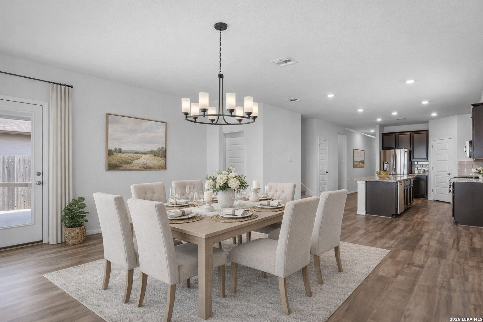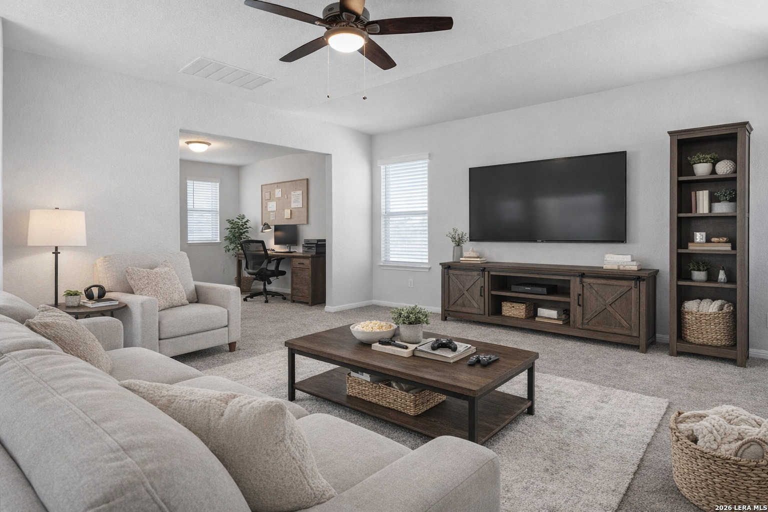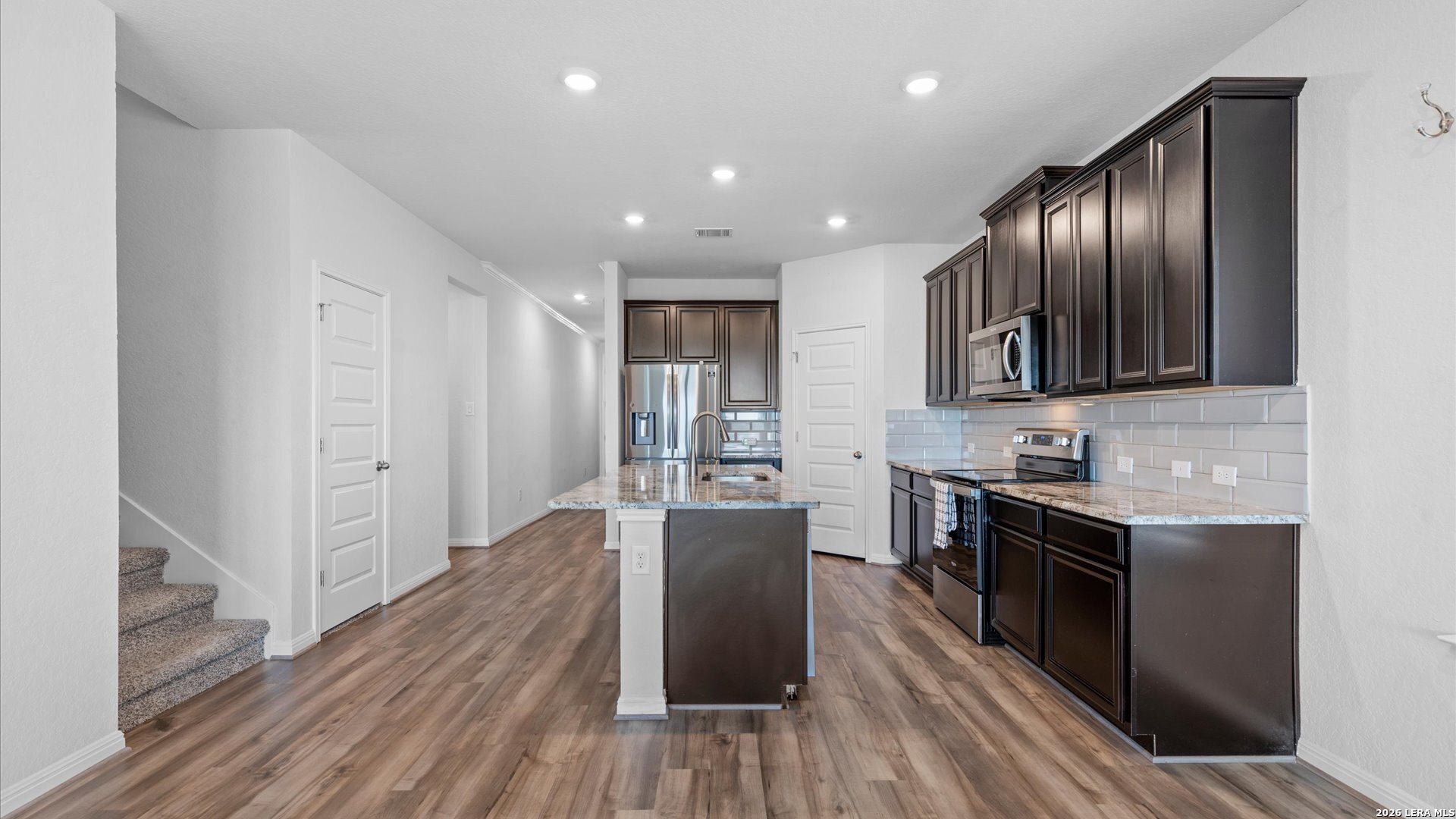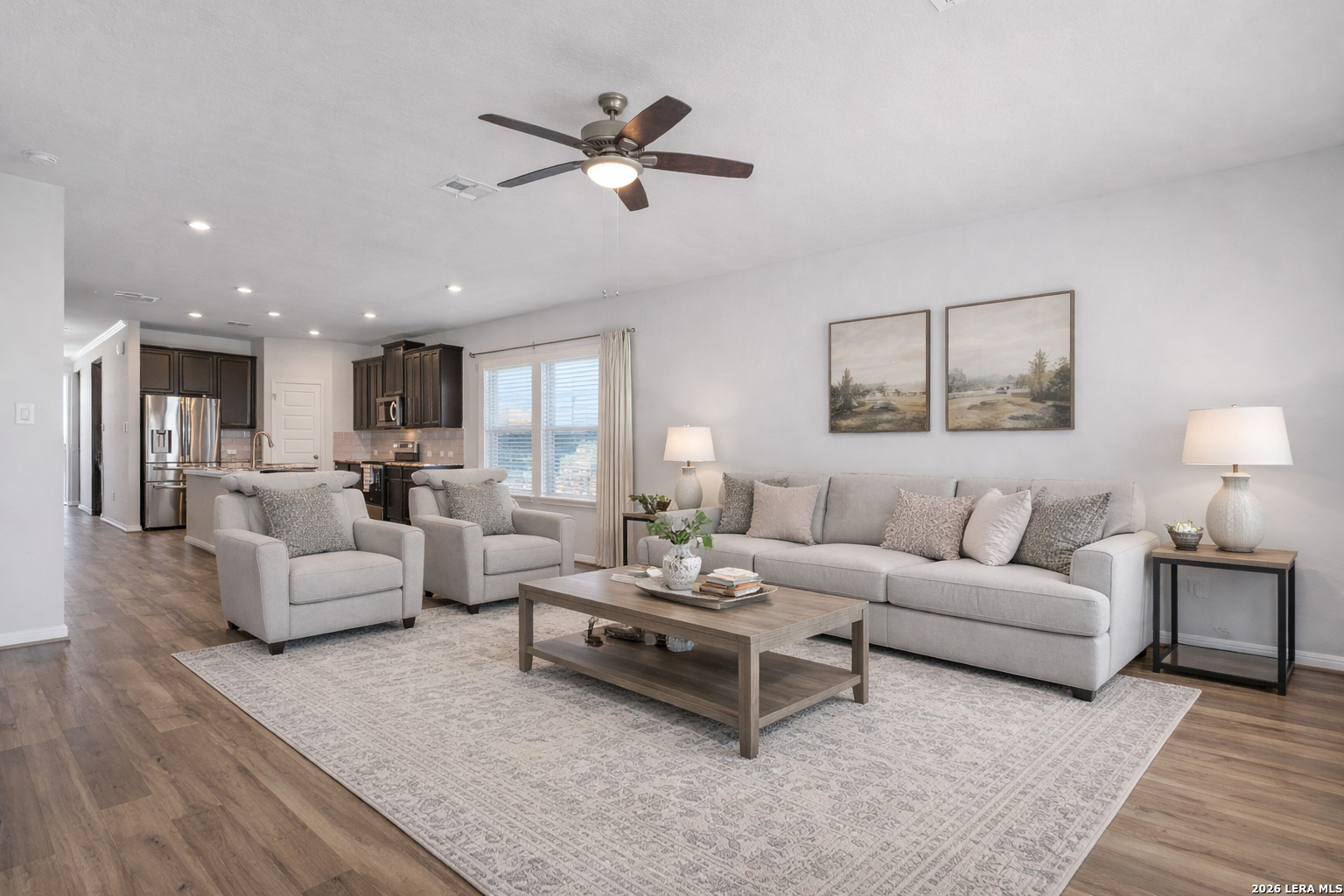 Welcome to 724 Clara Park in the desirable Meyers Landing community of New Braunfels-a beautifully designed 5-bedroom, 3-bath home offering space, flexibility, and a prime location in the heart of the Texas Hill Country. From the moment you walk in, you'll appreciate the open-concept layout that seamlessly connects the kitchen, dining, and living areas-perfect for everyday living and entertaining. The kitchen is the true centerpiece, featuring a large island, ample cabinetry, and included appliances such as the refrigerator, microwave, and range, making this home truly move-in ready. Designed with functionality in mind, the main level includes a spacious primary suite with a private bath, along with a secondary guest bedroom and full bathroom-ideal for multi-generational living, visiting guests, or a private home office setup. Upstairs, you'll find a generous multi-purpose living area that can easily serve as a game room, media room, or kids' play space, along with an additional dedicated office-perfect for remote work or study. Three additional bedrooms upstairs provide plenty of room for growing families or those needing extra space. Step outside and enjoy a private backyard retreat with no back neighbors, offering peace and added privacy. The covered patio and extended concrete pad create the perfect setting for outdoor gatherings, while the custom stone seating wall adds both charm and functionality for entertaining. Located just minutes from Gruene Historic District, Creekside Town Center, Resolute Health Hospital, Buc-ee's, and quick access to Interstate 35, this home offers unbeatable convenience for commuting, dining, shopping, and enjoying everything New Braunfels has to offer. Zoned to highly regarded Comal Independent School District, this home is ideal for buyers seeking a balance of comfort, location, and lifestyle-whether you're relocating, military, a first-time buyer, or simply looking for more space in a growing area. If you've been searching for a move-in ready home with room to live, work, and entertain-this is one you won't want to miss.