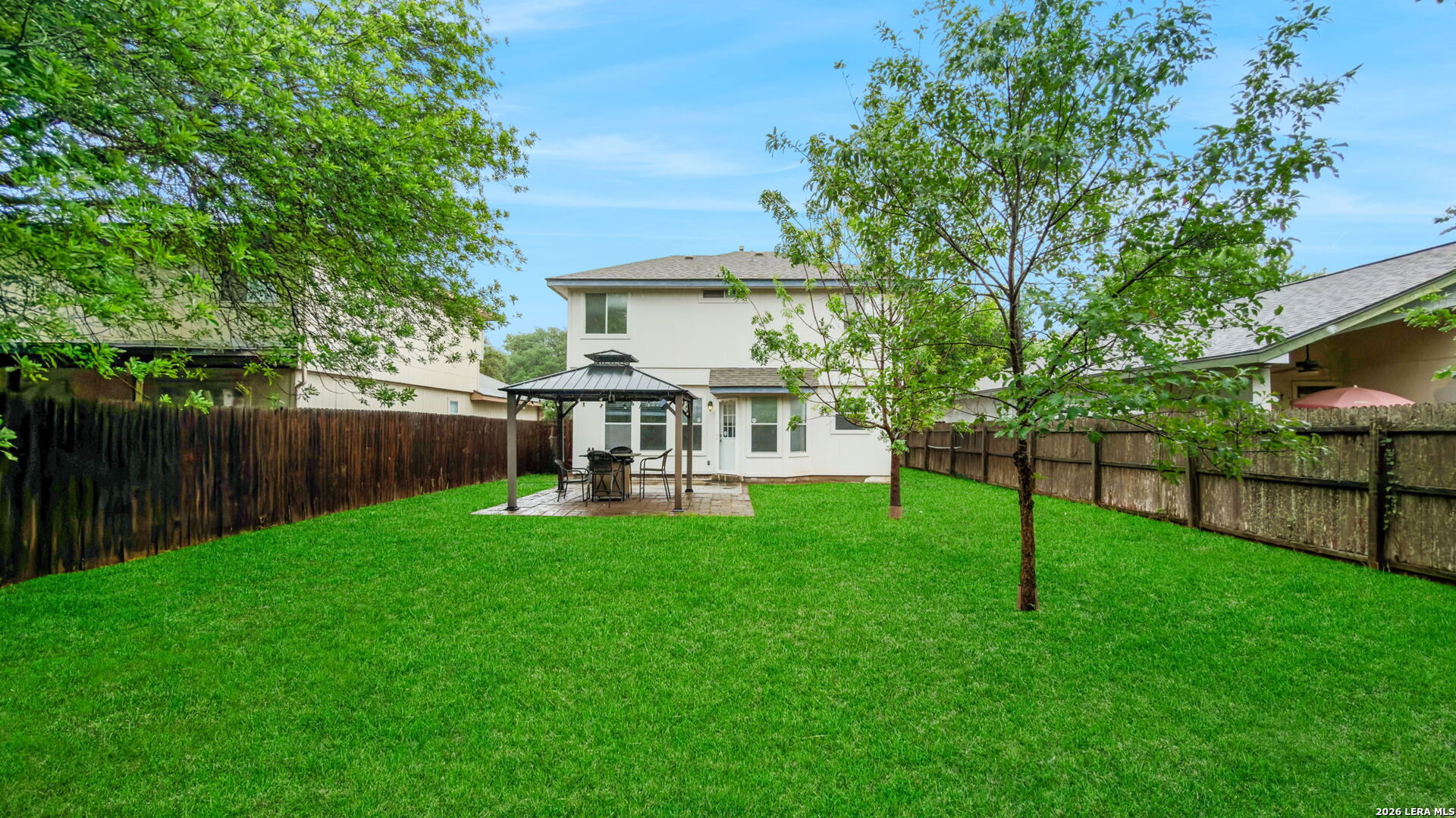 Beautifully designed two-story home located in a desirable gated community, offering a bright and airy open floor plan. The main living area features a cozy fireplace that creates a warm, inviting atmosphere and flows seamlessly into the kitchen. Granite countertops, a stylish backsplash, and a functional workspace make the kitchen both practical and visually appealing. All bedrooms are located upstairs, providing a layout that enhances privacy and everyday comfort. Step outside to a well-maintained backyard complete with a gazebo and privacy fence, creating an ideal setting for relaxing or entertaining. Convenient access to Loop 1604 and I-410 allows for an easy commute throughout the city, while placement within the highly regarded Northside Independent School District adds to the home's overall appeal.