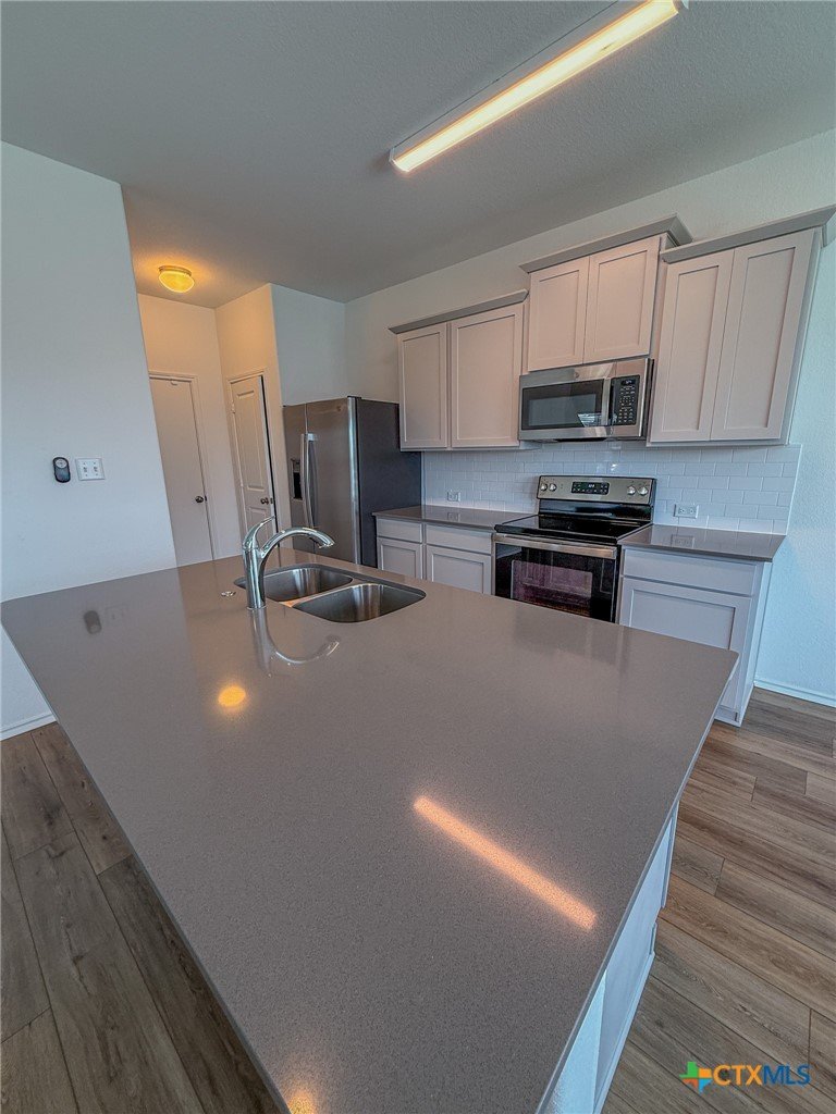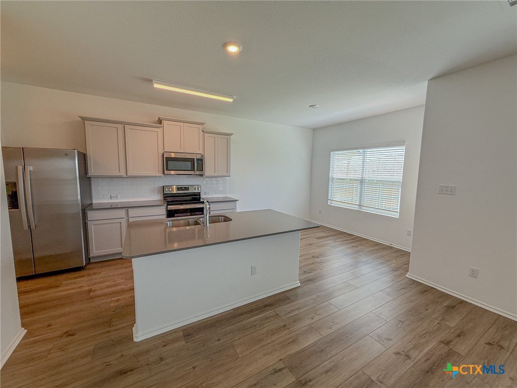 Welcome to your new home in Jarrell, TX! This LIKE NEW charming 2-story home offers a cozy retreat on a beautiful corner lot, in the thriving Eastwood neighborhood. Key property features include a well-designed living space perfect for relaxation and entertaining. The home features all bedrooms upstairs designating downstairs for entertaining. A stunning kitchen with neutral cabinets and quartz countertops is the heart of this home. For added convenience, the half bath is situated between the kitchen and garage. Additional upgrades include a water softener and storage racks in the garage. An upstairs loft offers extra living space next to the laundry room for added convenience. All bedrooms come equipped with ceiling fans, operated by remotes. The primary ensuite features a garden tub perfect for soaking away those long days! The home comes equipped with Ring security, and all appliances convey. The large backyard can be enjoyed off the covered back patio. Don’t miss the opportunity to make this property your new home. Contact us today to schedule a viewing and discover everything Eastwood has to offer!