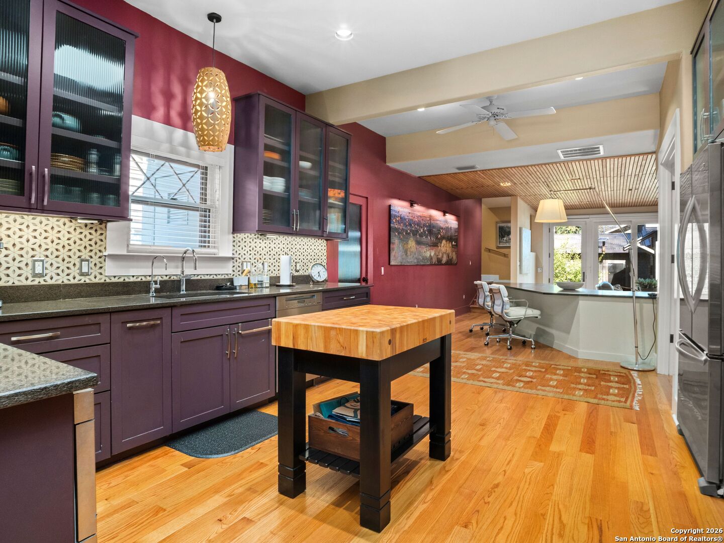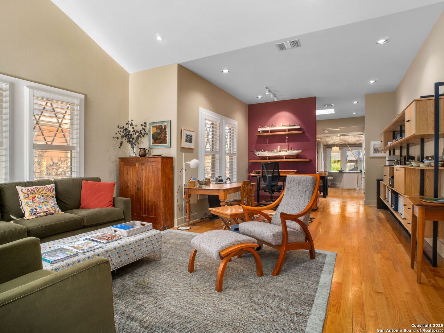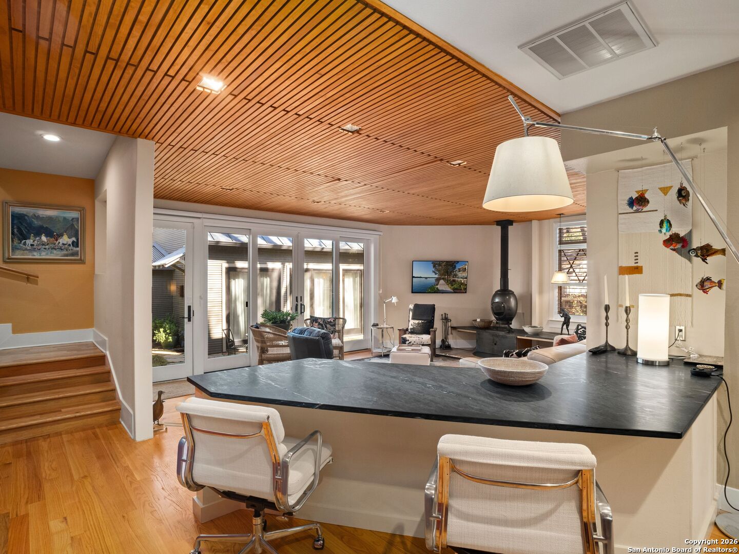 A truly unique River Road residence where every detail has been lovingly curated. The current homeowners have elevated this home into an architectural gem-preserving its original character while introducing thoughtful, high-quality updates that bring ease and contemporary comfort to everyday living. The kitchen is worthy of any gourmet chef or design magazine-featuring top-of-the-line appliances, beautifully crafted cabinetry, and a generous walk-in pantry. The dining room offers a warm, intimate atmosphere that glows in the evening light, creating the perfect setting for memorable dinners with friends. The primary suite is conveniently located on the first floor, though the second floor also offers a flexible space that can serve as an alternate primary retreat. Outside, the screened porch and professionally designed gardens by a landscape architect, using drought-tolerant plants, create a lush, private sanctuary surrounding a full, beautifully finished casita-ideal for guests, creative work, or quiet afternoons. This is a home that offers style and soul.