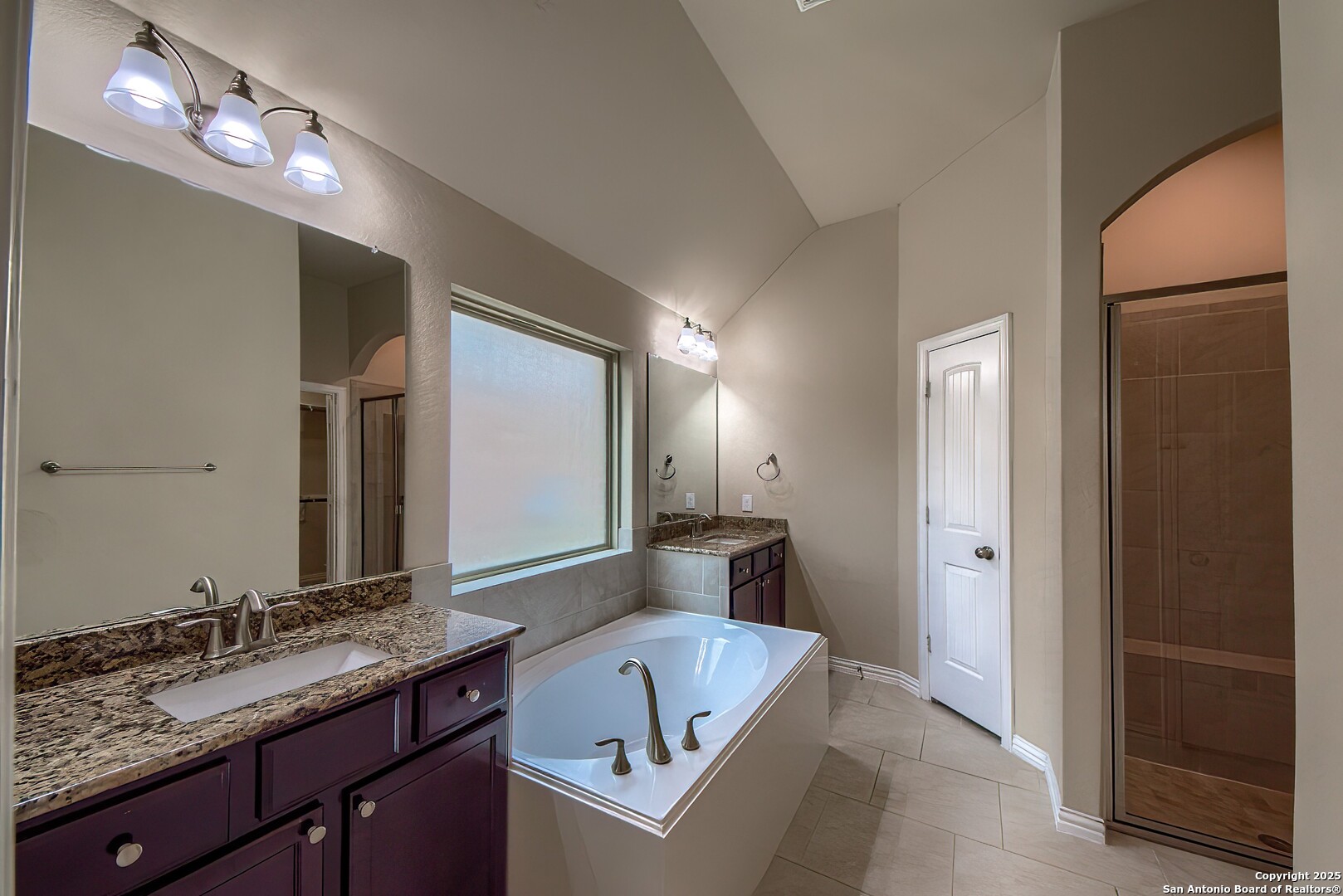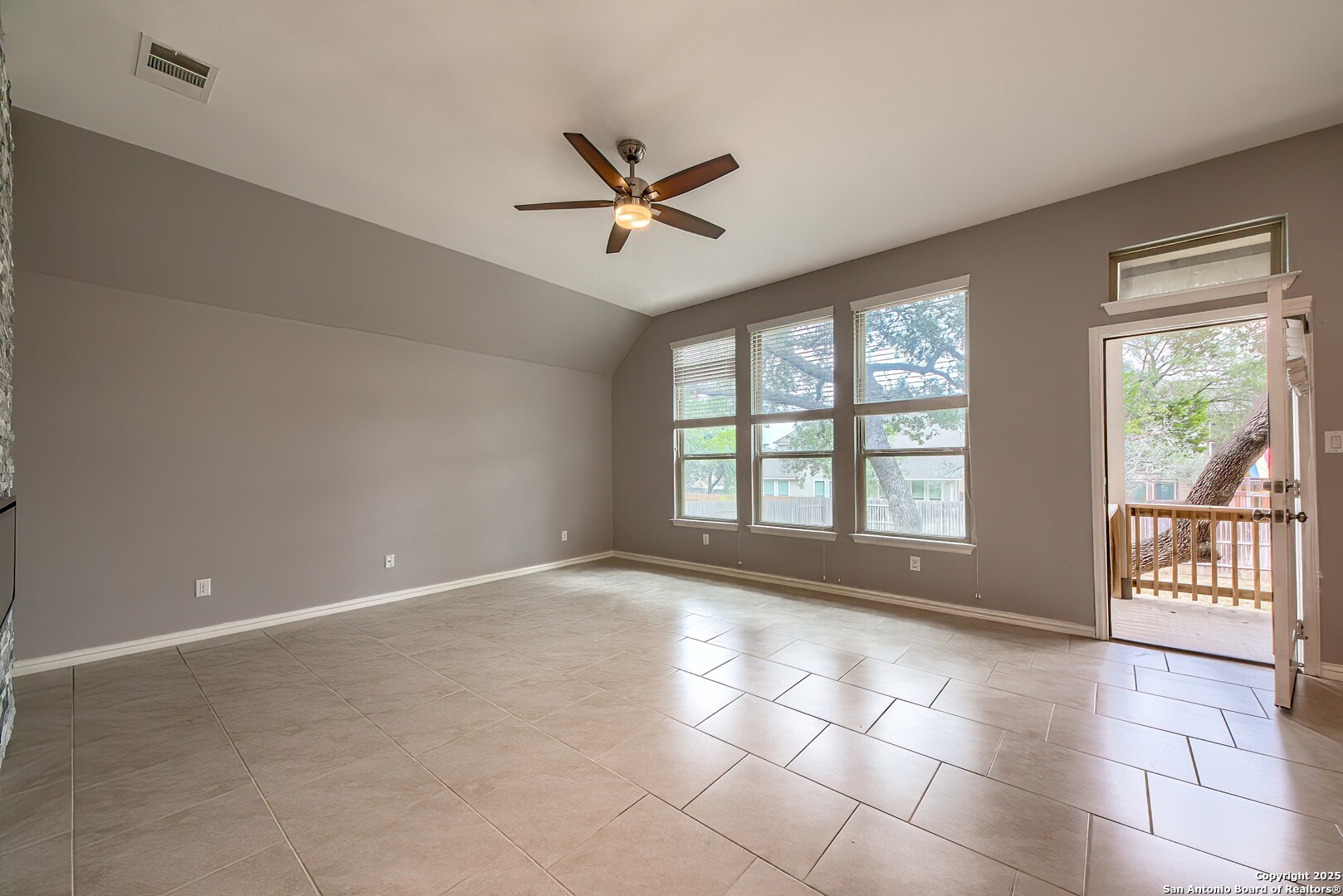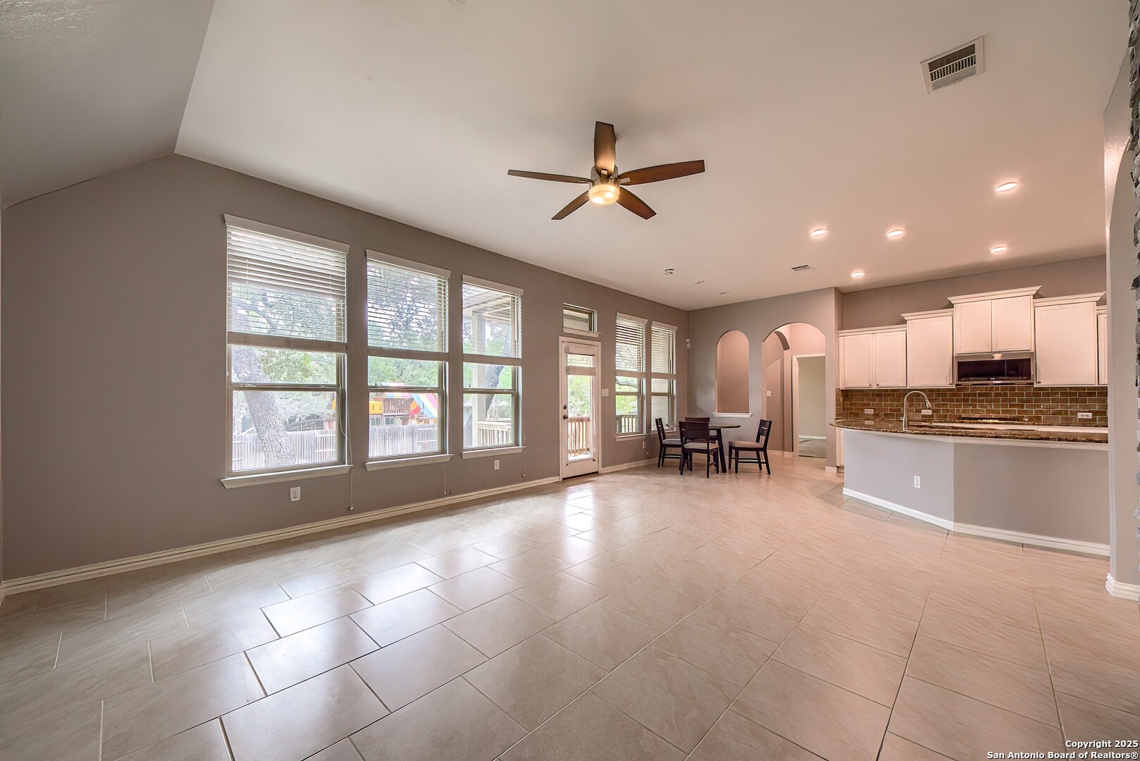 Welcome to 726 Firenze Ave, a beautifully maintained four bedroom home in the gated Potranco Run community. This inviting one story layout offers a spacious open floor plan with a bright living area, dedicated dining space and a modern kitchen with granite counters, stainless steel appliances, rich cabinetry and natural gas cooking. The home also features natural gas heating and an electric fireplace for added comfort and style. The primary suite is tucked privately at the back of the home and includes a walk in closet, dual vanity, soaking tub and separate shower. Three additional bedrooms at the front offer room for guests, an office or hobbies. Enjoy a covered patio overlooking a large fenced backyard with mature trees. The home includes full gutters, an irrigation system and a water softener for easy living. Potranco Run is a quiet gated community with quick access to Potranco Road, Highway 211, shopping, dining and Lackland AFB. The area also benefits from no city taxes. A move in ready home with upgrades, space and a desirable location in west San Antonio.