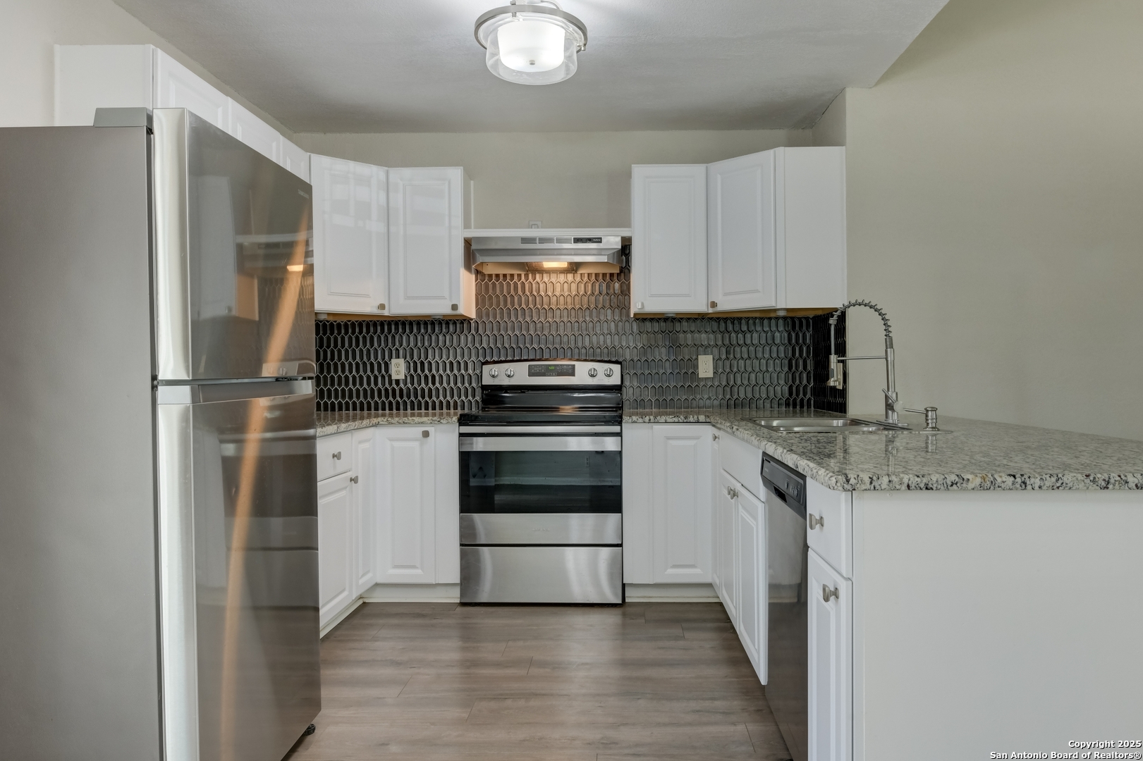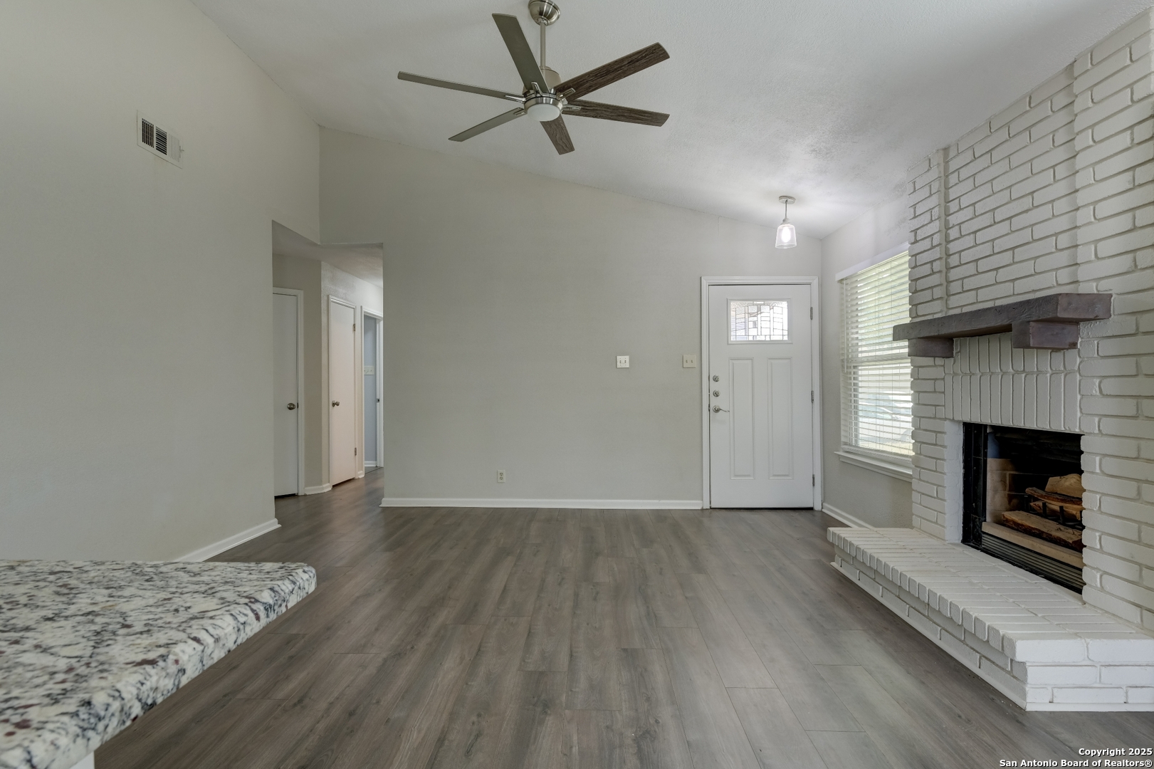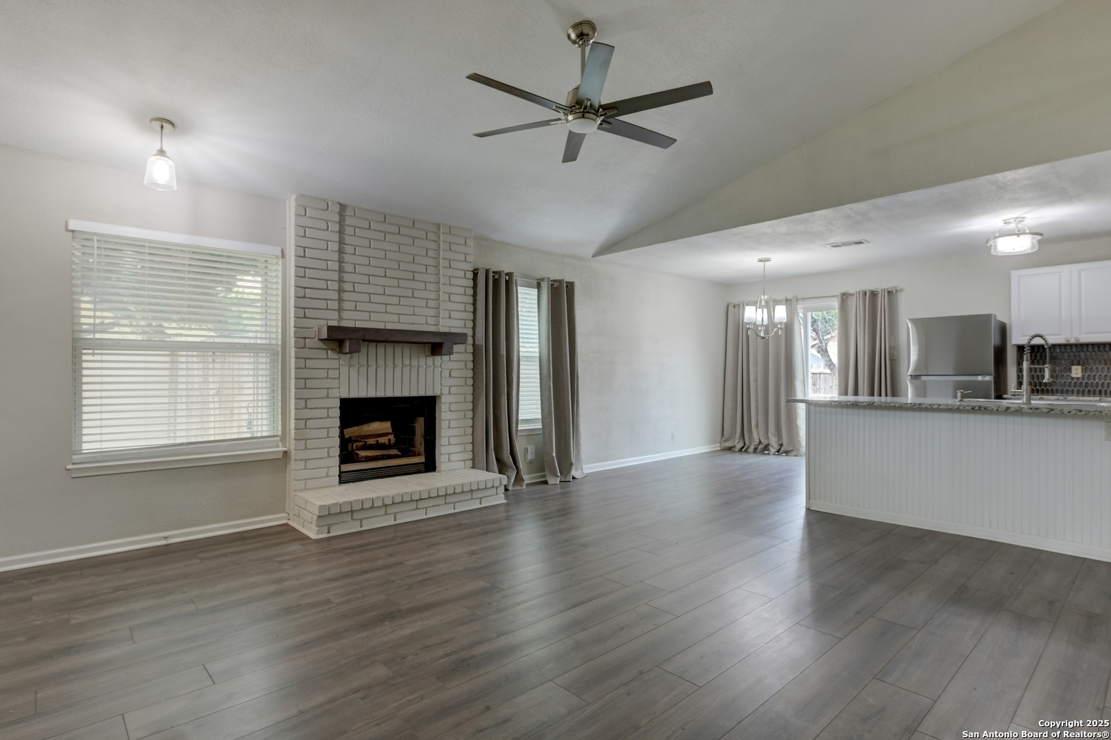 Beautifully Updated 3-Bedroom Home in Northwest Crossing This stunning, well-maintained home features 3 bedrooms, 2 full baths, and beautiful plank flooring throughout. Bright natural light fills the open floor plan, where a modern kitchen flows into the spacious living area with a cozy fireplace. The kitchen offers stainless steel appliances-including refrigerator, stove, and dishwasher-plus sleek granite countertops. The primary suite includes his and her closets and a beautifully updated bathroom with granite finishes. Each additional bedroom has a ceiling fan and plenty of closet space. Additional highlights include a one-car garage with washer and dryer, and a fenced backyard perfect for entertaining, gardening, or relaxing under the key lime tree. Located in the desirable Northwest Crossing community, you'll be within walking distance of excellent schools, parks, swimming, and hiking trails. With quick access to HWY 1604, 151, and I-10-and just minutes from shopping, hospitals, and entertainment-this home truly has it all!