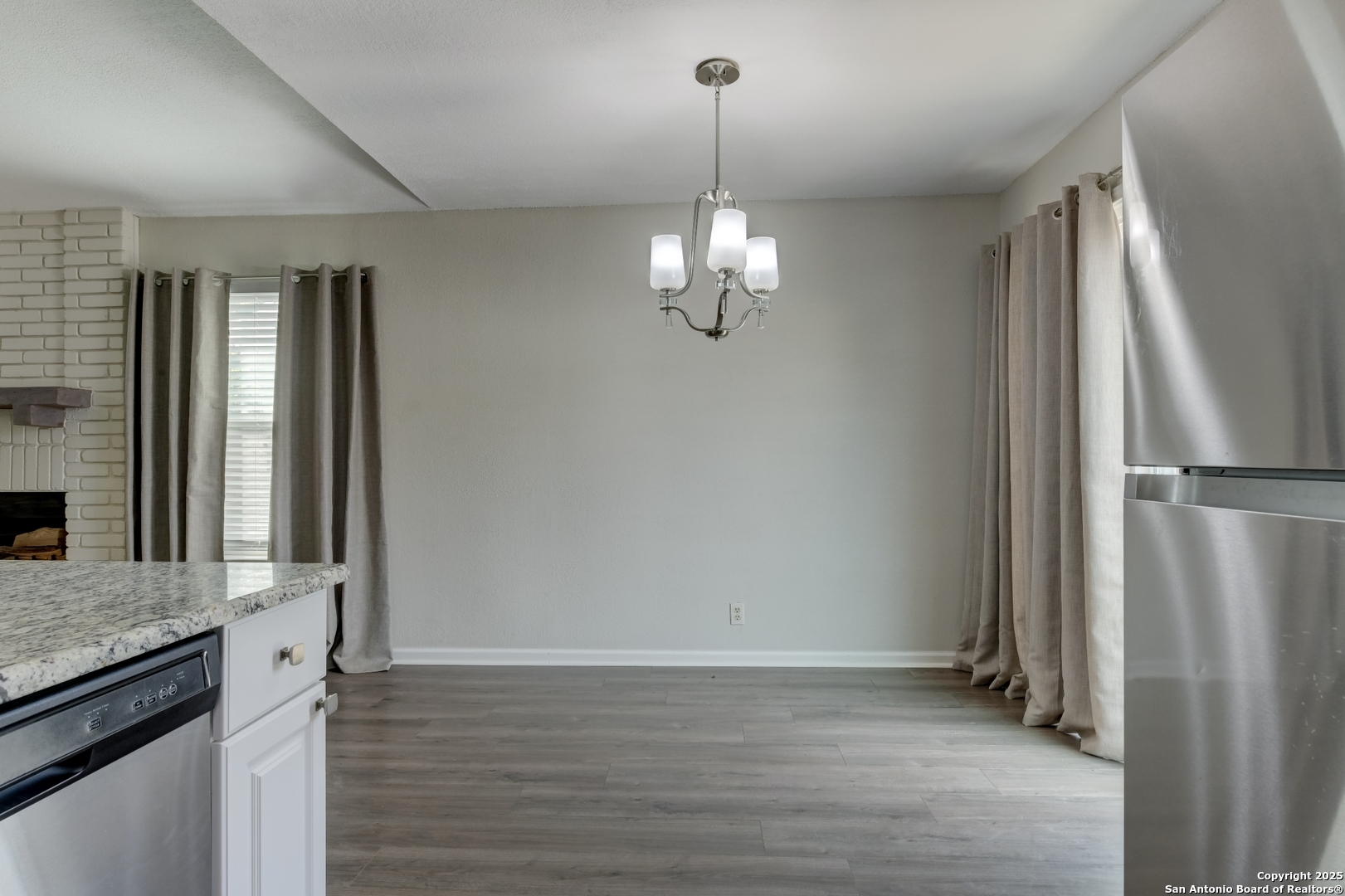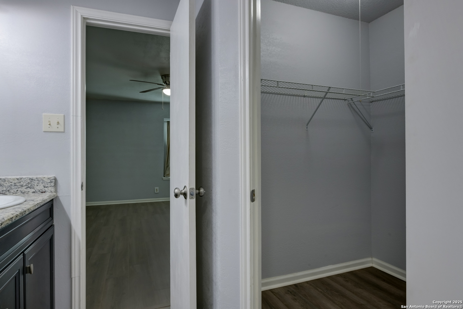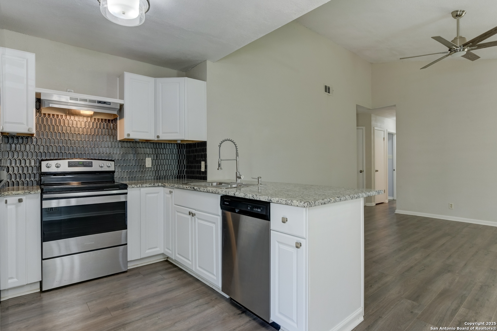 Beautifully Updated 3-Bedroom Home in Northwest Crossing This stunning, well-maintained home features 3 bedrooms, 2 full baths, and beautiful plank flooring throughout. Bright natural light fills the open floor plan, where a modern kitchen flows into the spacious living area with a cozy fireplace. The kitchen offers stainless steel appliances-including refrigerator, stove, and dishwasher-plus sleek granite countertops. The primary suite includes his and her closets and a beautifully updated bathroom with granite finishes. Each additional bedroom has a ceiling fan and plenty of closet space. Additional highlights include a one-car garage with washer and dryer, and a fenced backyard perfect for entertaining, gardening, or relaxing under the key lime tree. Located in the desirable Northwest Crossing community, you'll be within walking distance of excellent schools, parks, swimming, and hiking trails. With quick access to HWY 1604, 151, and I-10-and just minutes from shopping, hospitals, and entertainment-this home truly has it all!