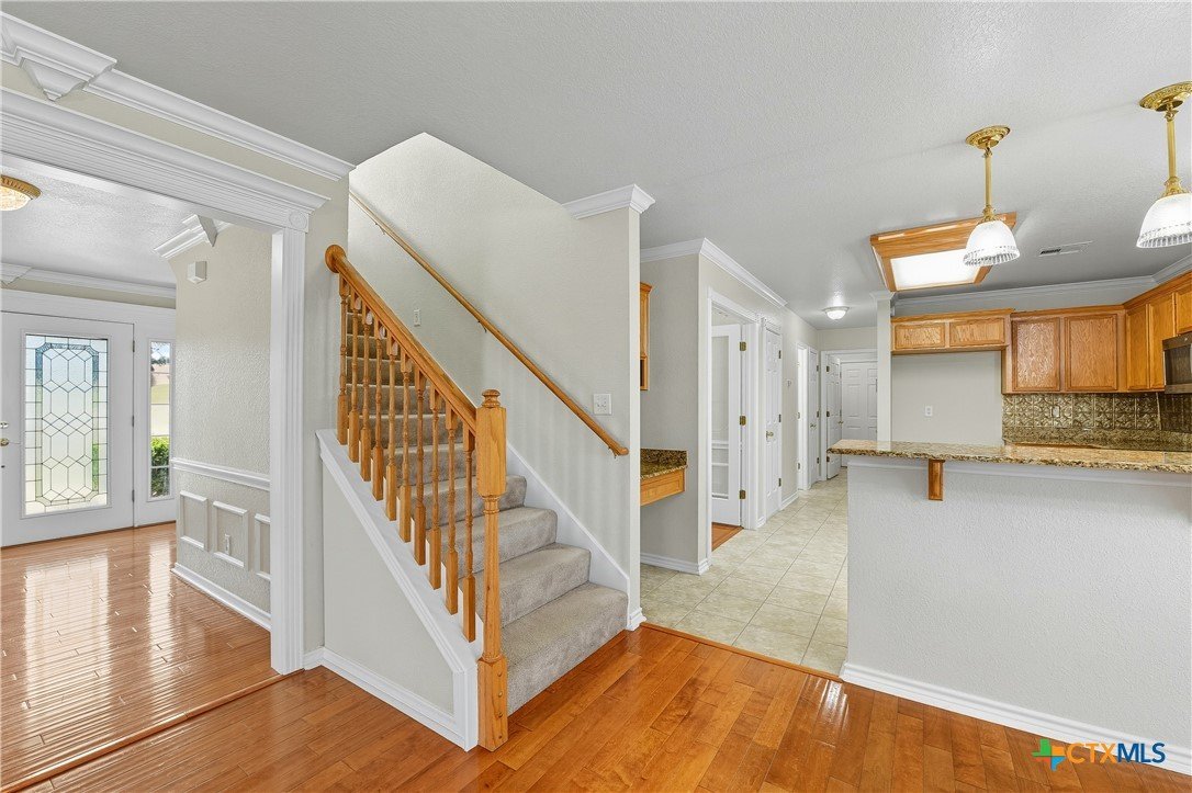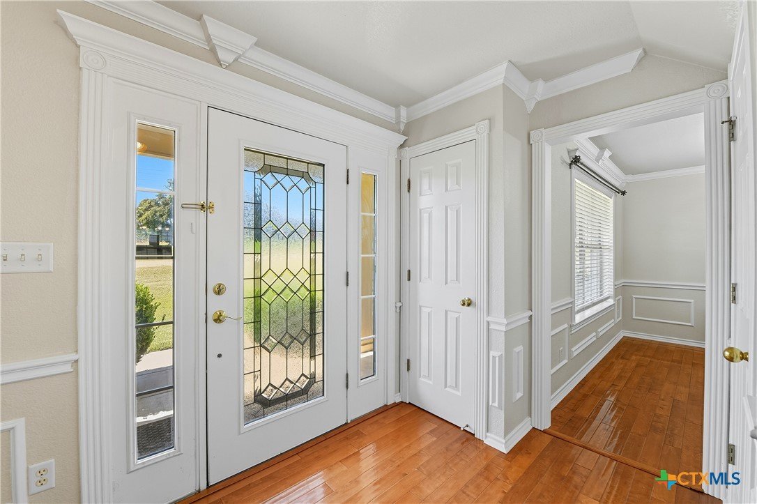 Country roads take me home to this well kept custom built home (John Hitt) in Sun Set Estates (no H.O.A, no city taxes). This two story home has an inviting large front porch, which would have plenty of space for outdoor furniture and decorations. The front door glass panels allow for the natural light to ray into the wide foyer (with a coat closet). The impressive crown moldings start in the foyer and continue throughout the first floor. The floor plan allows the easy flow from the kitchen (granite countertop, breakfast bar, stainless steel appliances, range {never used} into the living room and formal dining room (Tudor French doors). There are two pantries which allow for more storage. An impressive, coffered ceiling with its crown moldings is displayed in the primary bedroom (1st floor) with a full bath (jetted tub, shower, double vanity and walk-in closet. Adjacent is a second bedroom. Another full bath is located on the first floor (near the laundry room). As you step up onto the second floor you will be greeted by a large panoramic window. An inbuilt bookshelf is right off the stairway. The two large bedrooms share a Jack and Jill bathroom with each side having its own built-in cabinet and sink. Enjoy the large screened-in back porch. Store your lawn equipment in the portable storage building. The side entry garage allows for 2 vehicles and an additional parking pad is extended from the paved driveway.