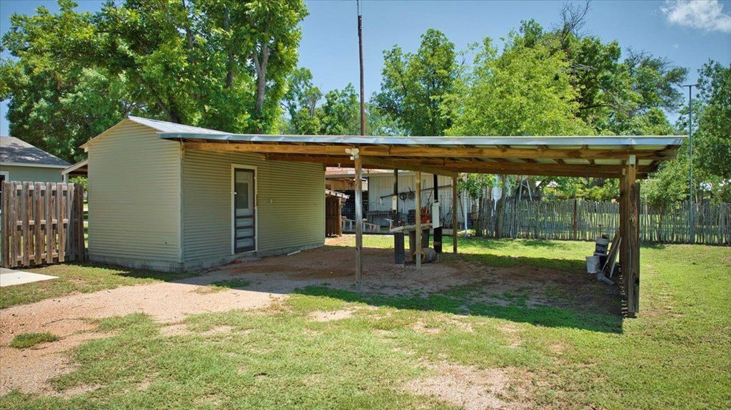 Large and comfortable 3 bedroom, 2 bath home with 2088 sq. ft. of living area on a nearly 1/2 acre lot. Recent updates include modern kitchen, wood laminate flooring, huge master bedroom with stone fireplace insert, and walk-in closet in master bath. New central HVAC system installed in 2024 with new mini-split unit installed in master bedroom (June 2025). Gravel driveway leads to the back of home and outside workshop/storage building with attached 2 vehicle carport. Covered back porch with Pecan tree shaded concrete patio looks out onto private backyard space. Located near award winning Mason ISD schools. HUGE PRICE REDUCTION! GREAT BUY!
