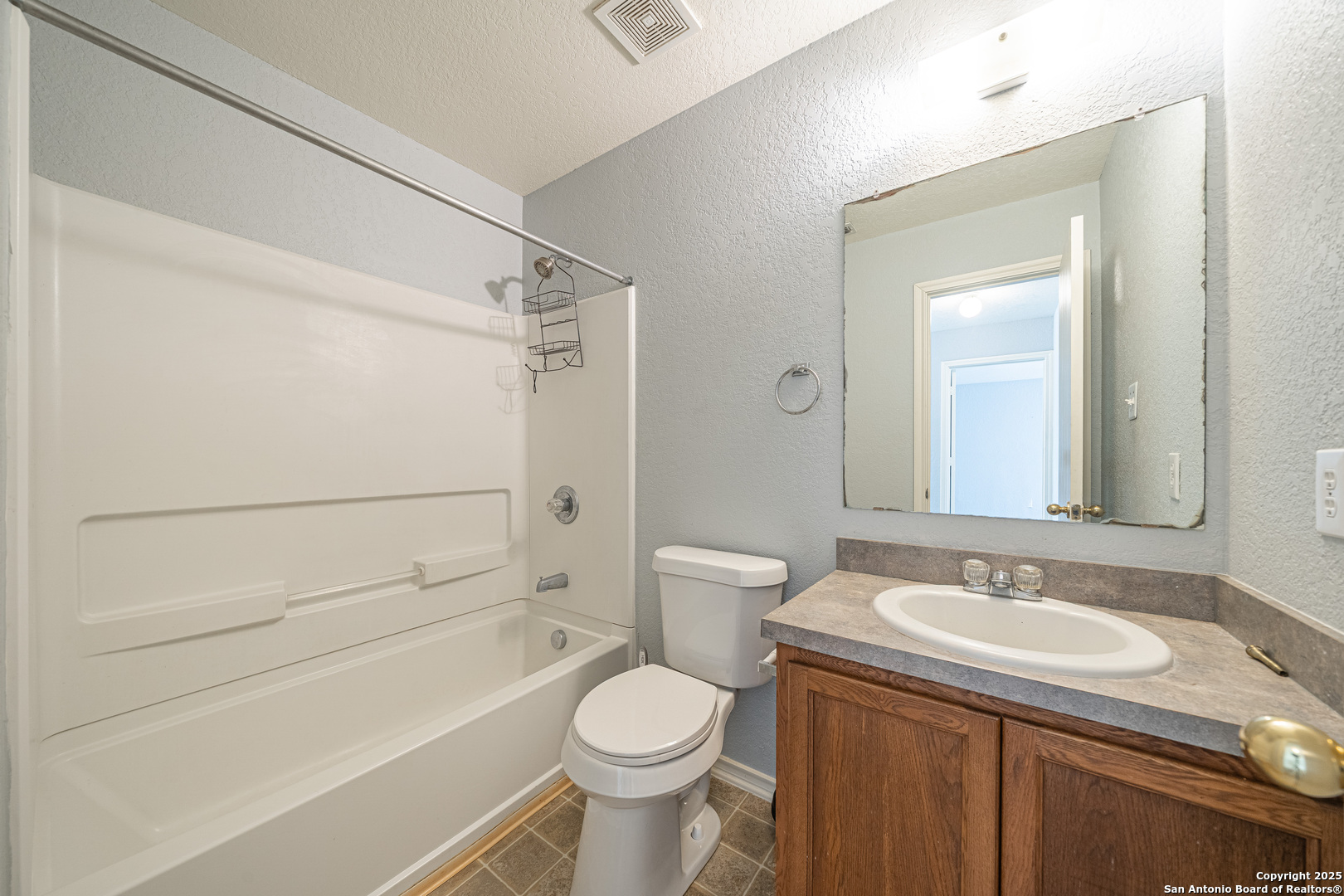Welcome to 731 Inks Farm, a well-maintained 3-bedroom, 2.5-bath home offering approximately 1,550 square feet of living space in the centrally located Canterbury Farms subdivision. This charming two-story home features an open floor plan filled with natural light, a spacious kitchen, and a comfortable living area that flows seamlessly for everyday living and entertaining. The second level includes a generous master suite and a versatile loft area ideal for a home office or playroom. Enjoy outdoor living with a large 30' x 15' covered patio overlooking a deep backyard-perfect for entertaining or relaxing in privacy. The home backs up to a greenbelt behind a nearby school, offering added privacy with no rear neighbors. Additional highlights include easy access to Loop 410, shopping, dining, and downtown San Antonio. Whether you're looking for a primary residence or an investment opportunity, this property offers great potential in a growing area. Seller will offer concessions to replace the carpet upstairs.