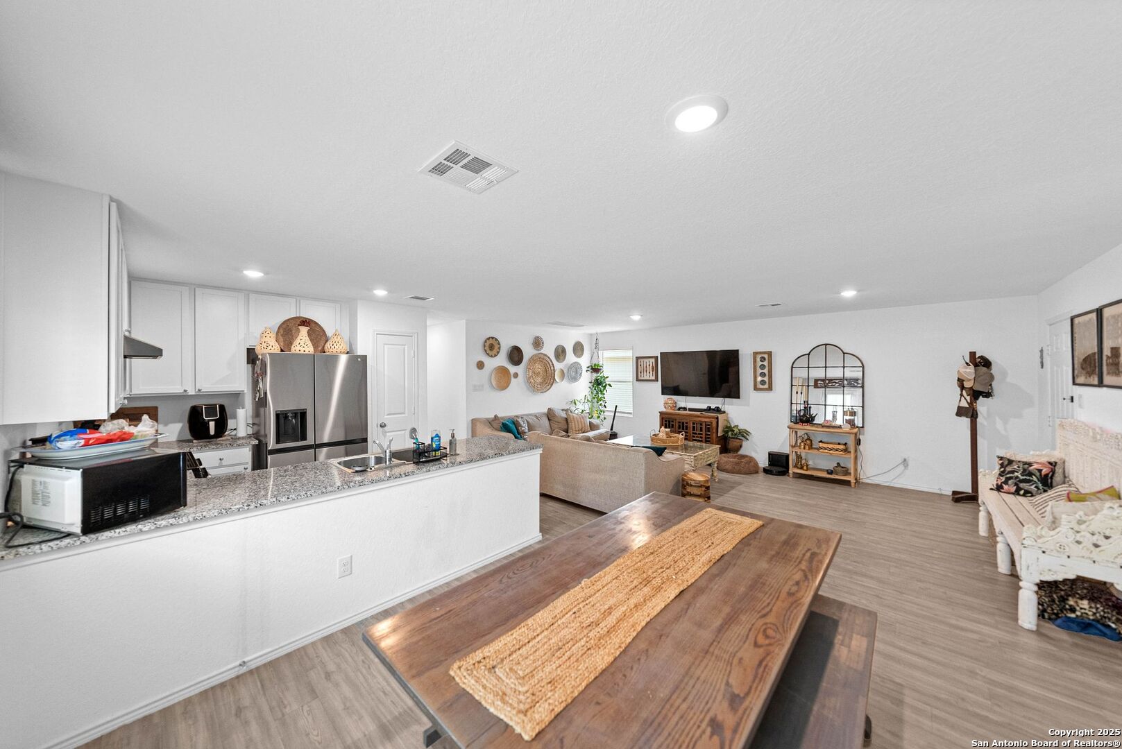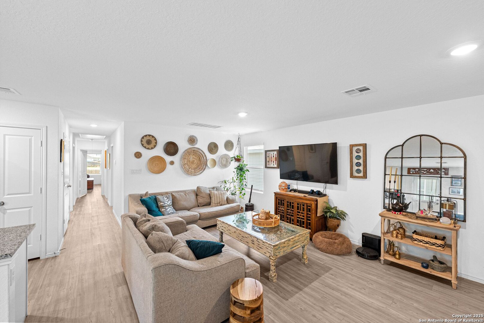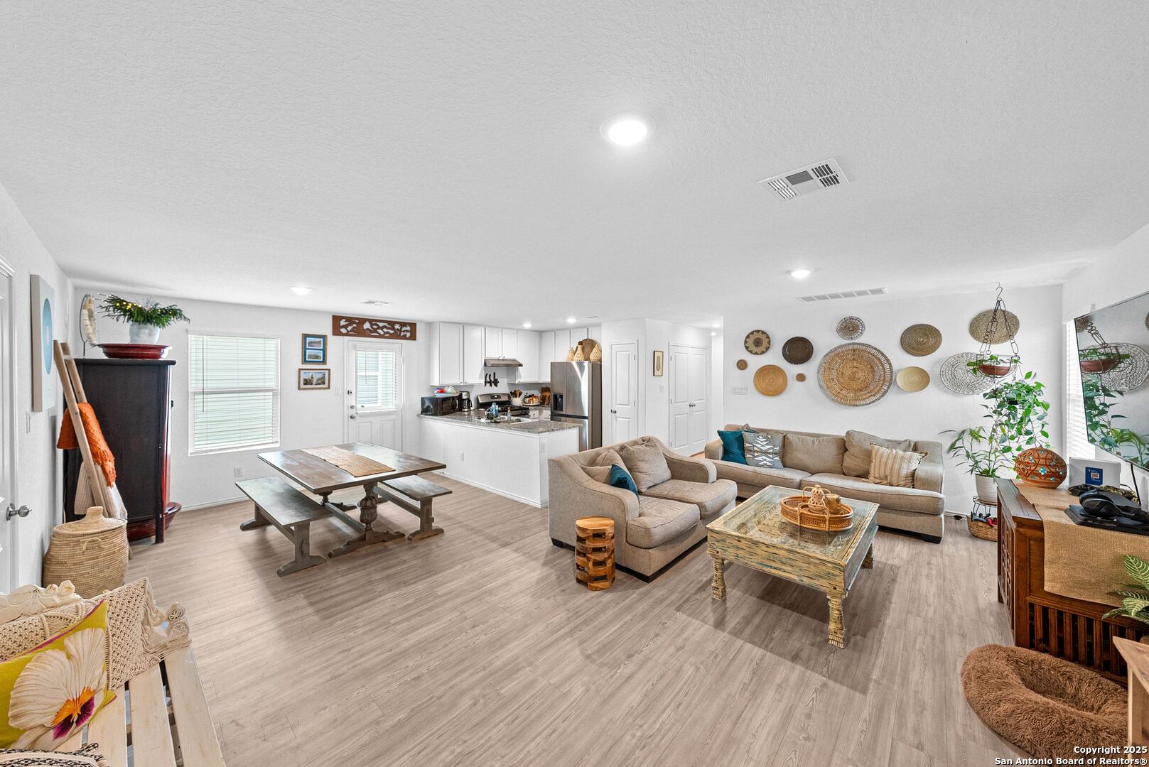 VA Compromise Sale (Short Sale) and Loan Assumption available. Built in 2022, this like-new beautiful one-story home in the amenity-rich community of The Silos offers 4 bedrooms, 2 bathrooms, and a bright, open floor plan designed for modern living. Natural light fills the space, and the functional layout features a large breakfast bar that overlooks both the dining and living areas, perfect for entertaining or family gatherings. The primary bedroom features a generous-sized walk-in closet, and one of the other three rooms can easily work as an office for those who need flexibility. The owner has added blinds throughout, an epoxy-floored garage with opener, and there's no carpet to worry about for easy maintenance inside. Located in a vibrant community with no city taxes, the neighborhood boasts a brand new elementary school, monthly events, and amenities including a pool, park, playground, BBQ area, and clubhouse. Enjoy easy access to Lackland AFB, major highways, shopping, and more, making this home an ideal blend of comfort, convenience, and community. Book your showing today!