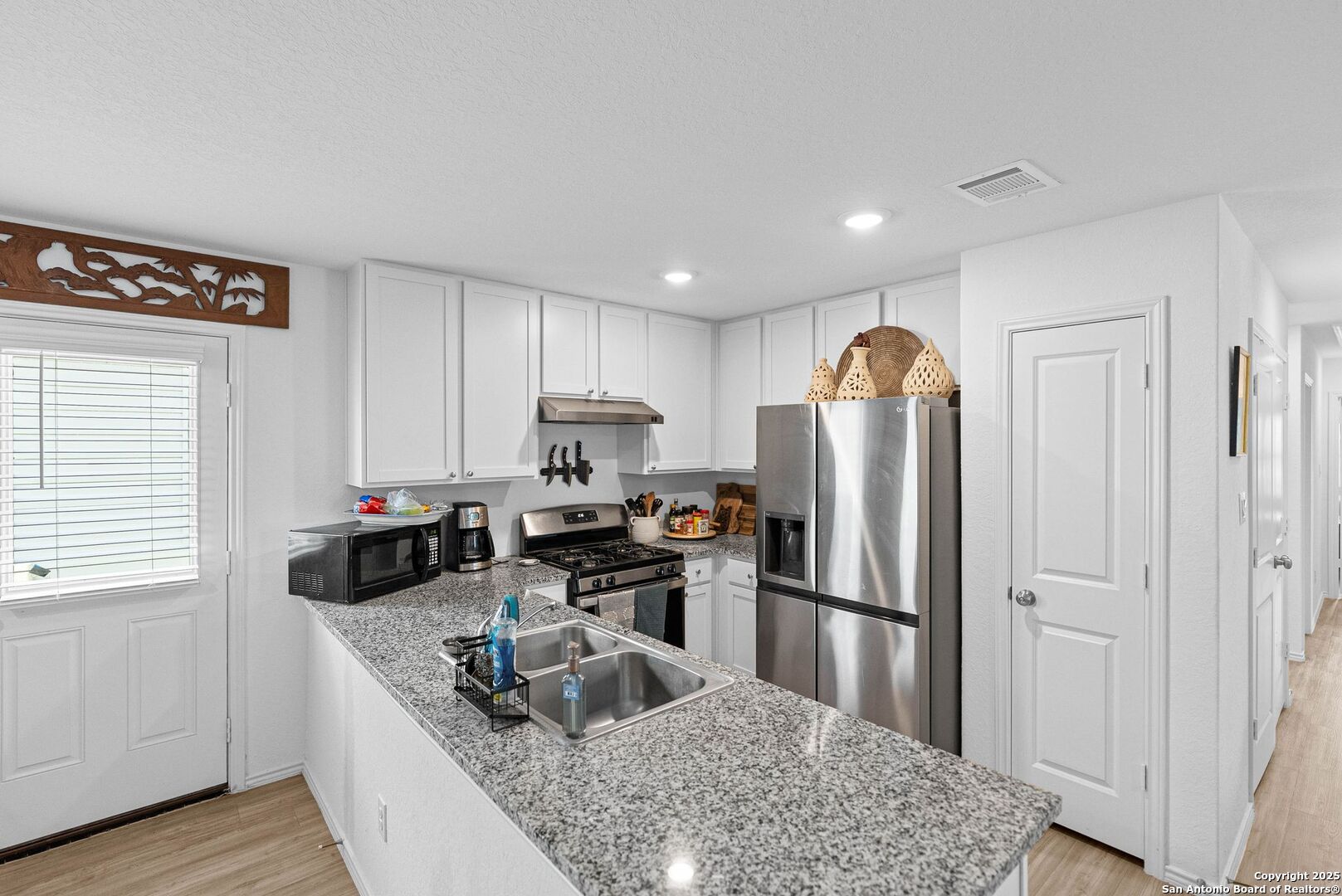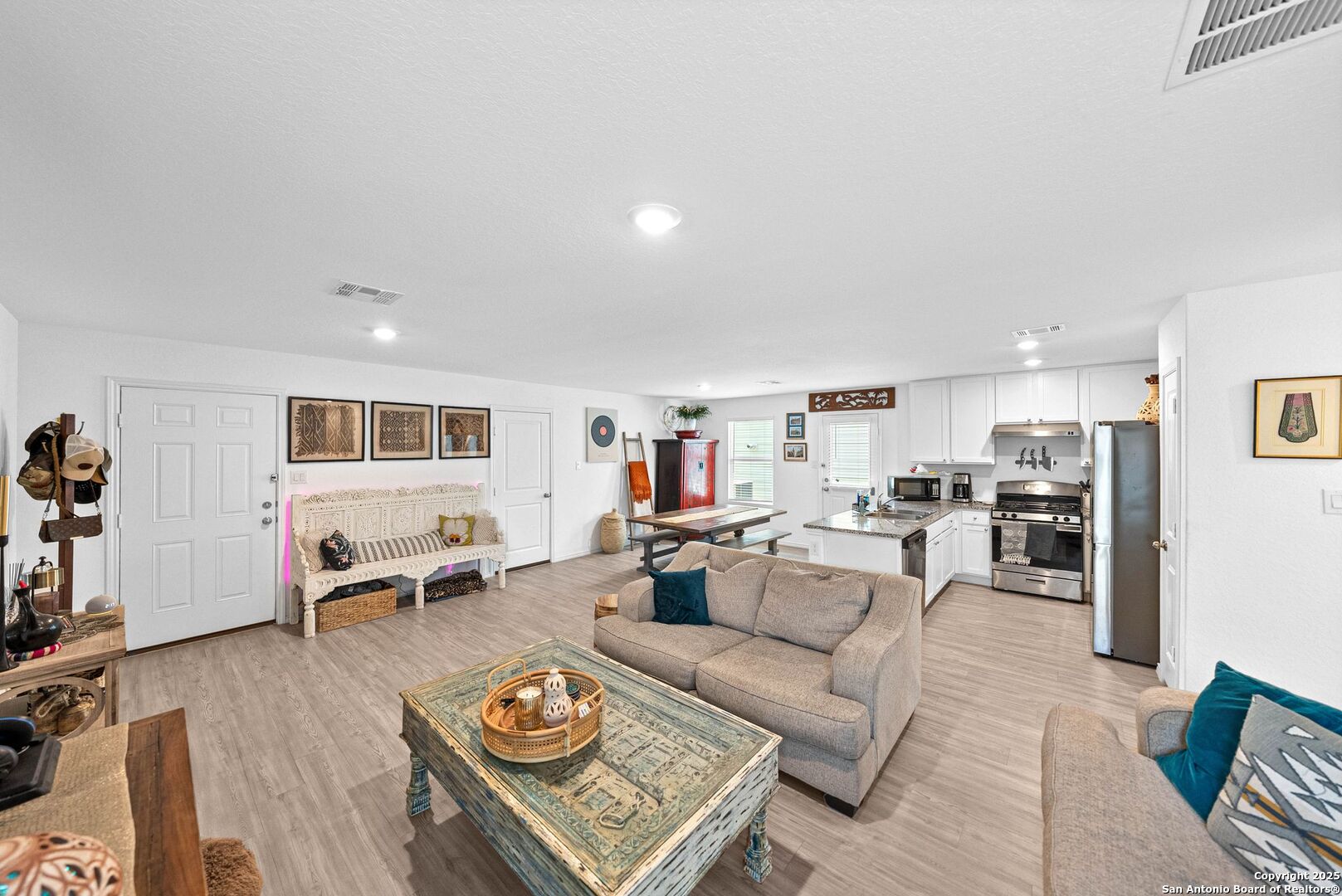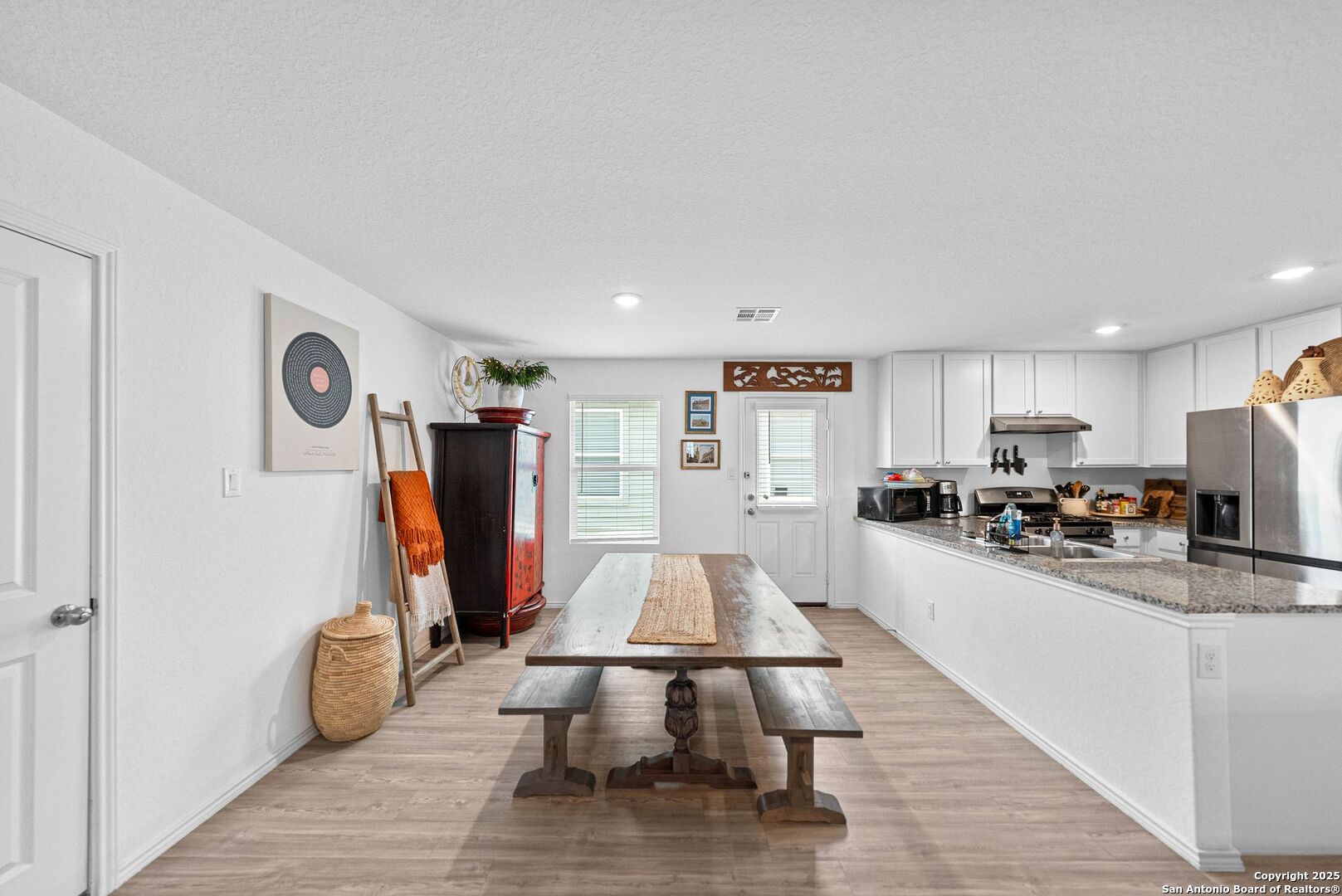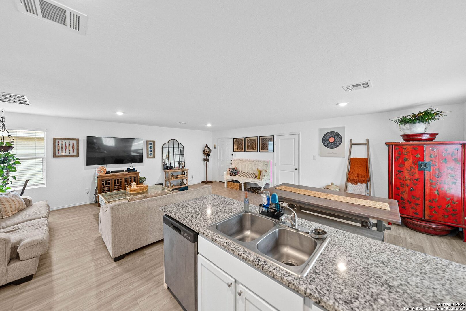 VA Compromise Sale (Short Sale) and Loan Assumption available. Built in 2022, this like-new beautiful one-story home in the amenity-rich community of The Silos offers 4 bedrooms, 2 bathrooms, and a bright, open floor plan designed for modern living. Natural light fills the space, and the functional layout features a large breakfast bar that overlooks both the dining and living areas, perfect for entertaining or family gatherings. The primary bedroom features a generous-sized walk-in closet, and one of the other three rooms can easily work as an office for those who need flexibility. The owner has added blinds throughout, an epoxy-floored garage with opener, and there's no carpet to worry about for easy maintenance inside. Located in a vibrant community with no city taxes, the neighborhood boasts a brand new elementary school, monthly events, and amenities including a pool, park, playground, BBQ area, and clubhouse. Enjoy easy access to Lackland AFB, major highways, shopping, and more, making this home an ideal blend of comfort, convenience, and community. Book your showing today!