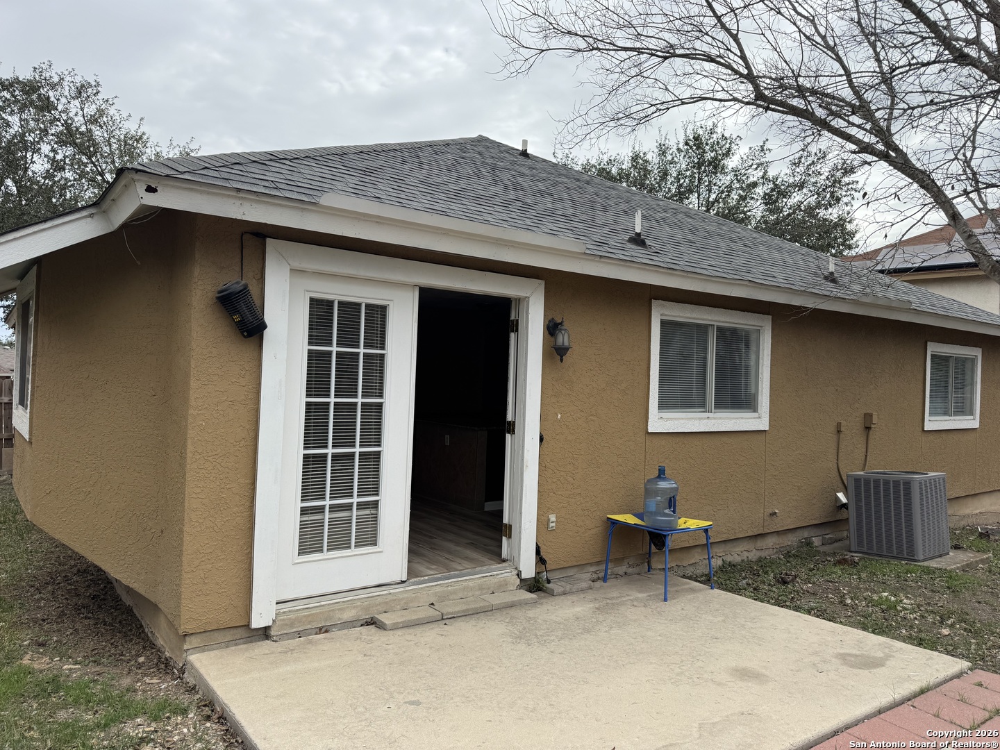 This clean three bedroom, one story house has been recently renovated with new flooring and paint and has granite countertops in the kitchen and baths. Primary bedroom has a double vanity. The roof is two years old. The back gate leads to the neighborhood pool only a few steps away. Northampton Subdivision is convenient to Joint Base Randolph and Loop 1604. The front door has a wheelchair ramp which may be removed if not needed.