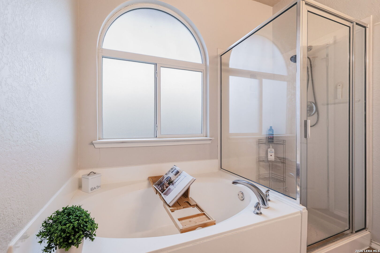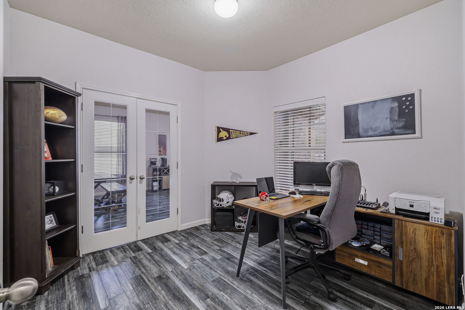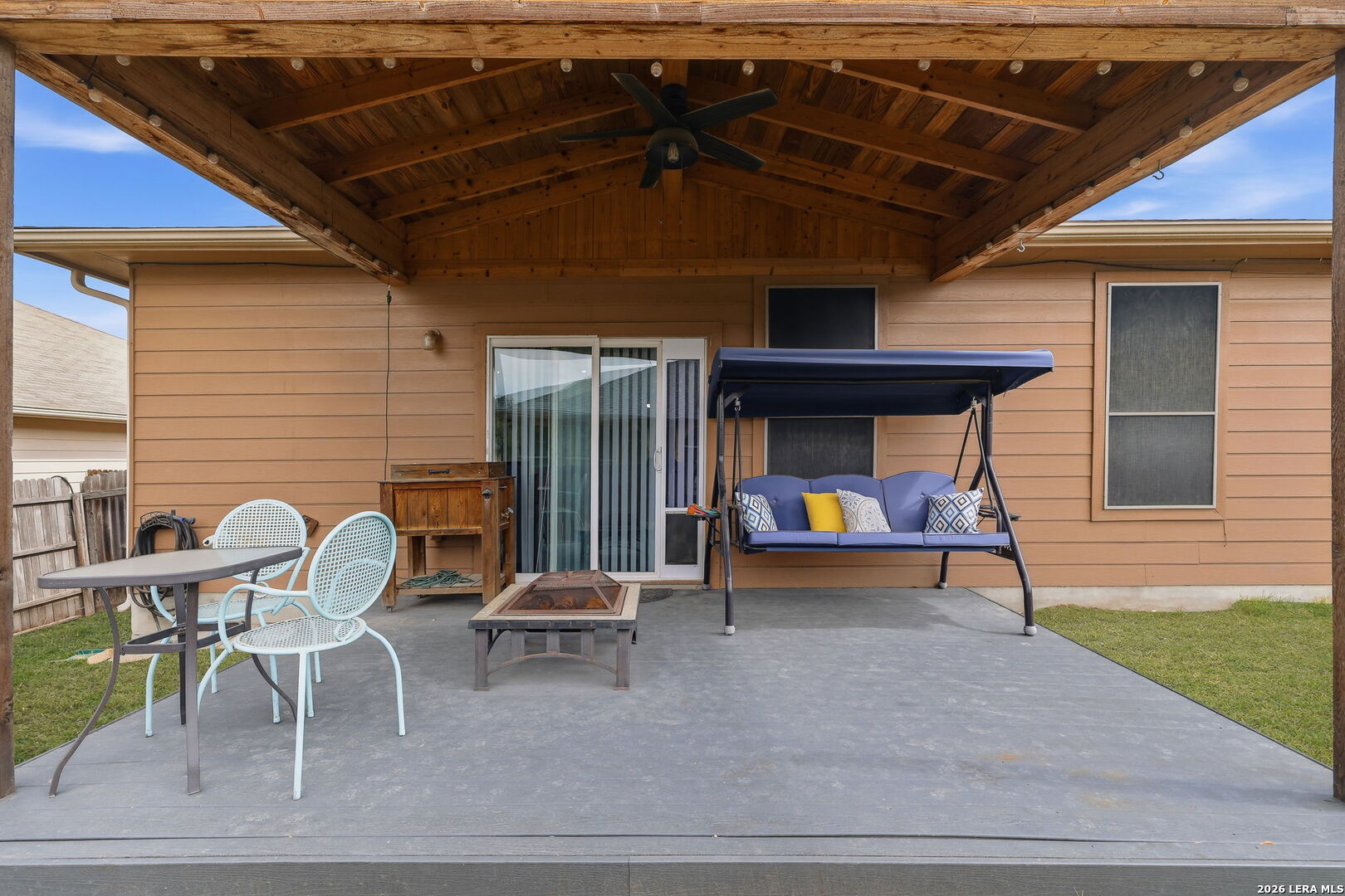 Welcome home to this functional single story 3 bedroom, 2 bath home featuring a flexible layout and FULLY PAID OFF SOLAR PANELS! A large bay window at the front of the home fills the formal living and dining area with natural light, creating a bright and welcoming space that can easily serve as a second living area, dining room, or flex space to fit your lifestyle. Just off the entry is a dedicated home office with double doors and convenient dual access from the hallway, providing a private and versatile space for working from home or studying. The kitchen features refinished white cabinetry, decorative backsplash, gas cooking, and a center island with seating, perfect for casual meals or gathering with family and friends. It opens seamlessly into the eat in dining area and spacious living room, creating an ideal setup for everyday living and entertaining. The primary suite offers a relaxing retreat with a walk in closet and an en suite bathroom featuring a soaking tub, separate shower, and double vanity. Secondary bedrooms are generously sized and share a full bathroom. Step outside to enjoy the covered patio overlooking the backyard, an ideal spot to unwind in the evenings or host weekend bbq's. ADDITIONAL HIGHLIGHTS include no carpet throughout the home, new roof installed (2024), solar screens, and recently replaced PEX pipes, for added peace of mind and efficiency. Conveniently located with easy access to IH 35, Randolph Air Force Base, Fort Sam Houston, shopping, dining, and everyday conveniences. Schedule your private showing today for a wonderful opportunity to enjoy comfort, flexibility, and a convenient location!