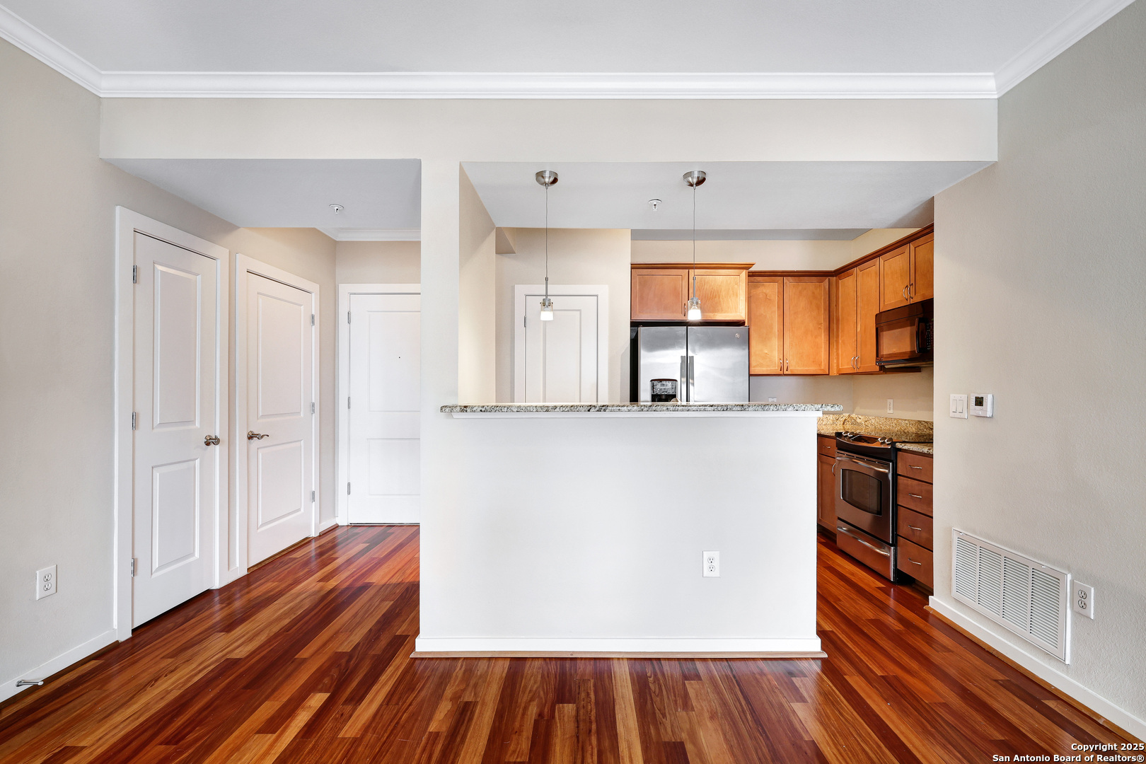 This Gorgeous Condo in Desirable Community of The Pinnacle at Oak Hills in the heart of the Medical Center SA. Featuring: Open Floor Plan with High Ceilings, 2 Bedrooms, 2 Baths with an abundance of natural light and bright look, Wood Flooring in all living areas, Ceramic Tile in Bathrooms/Laundry Room, Stainless Steal Appliances, Granite Counters, Split Master Bedroom with large walk-in closet, Double Vanity in MasterBath, Balcony Overlooking Pool Area. Common areas to included: Gated Community and Building Control Access, Elevator, Fitness Center, Club House, Pool/Spa. Near shops and Restaurants,Loop 410-IH10... A MUST SEE !!!