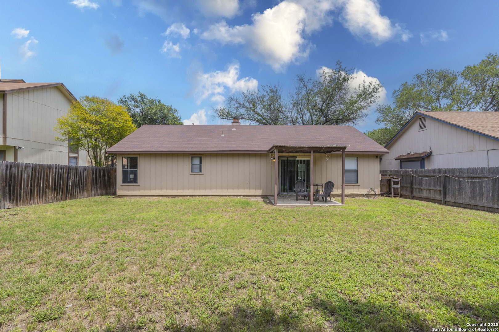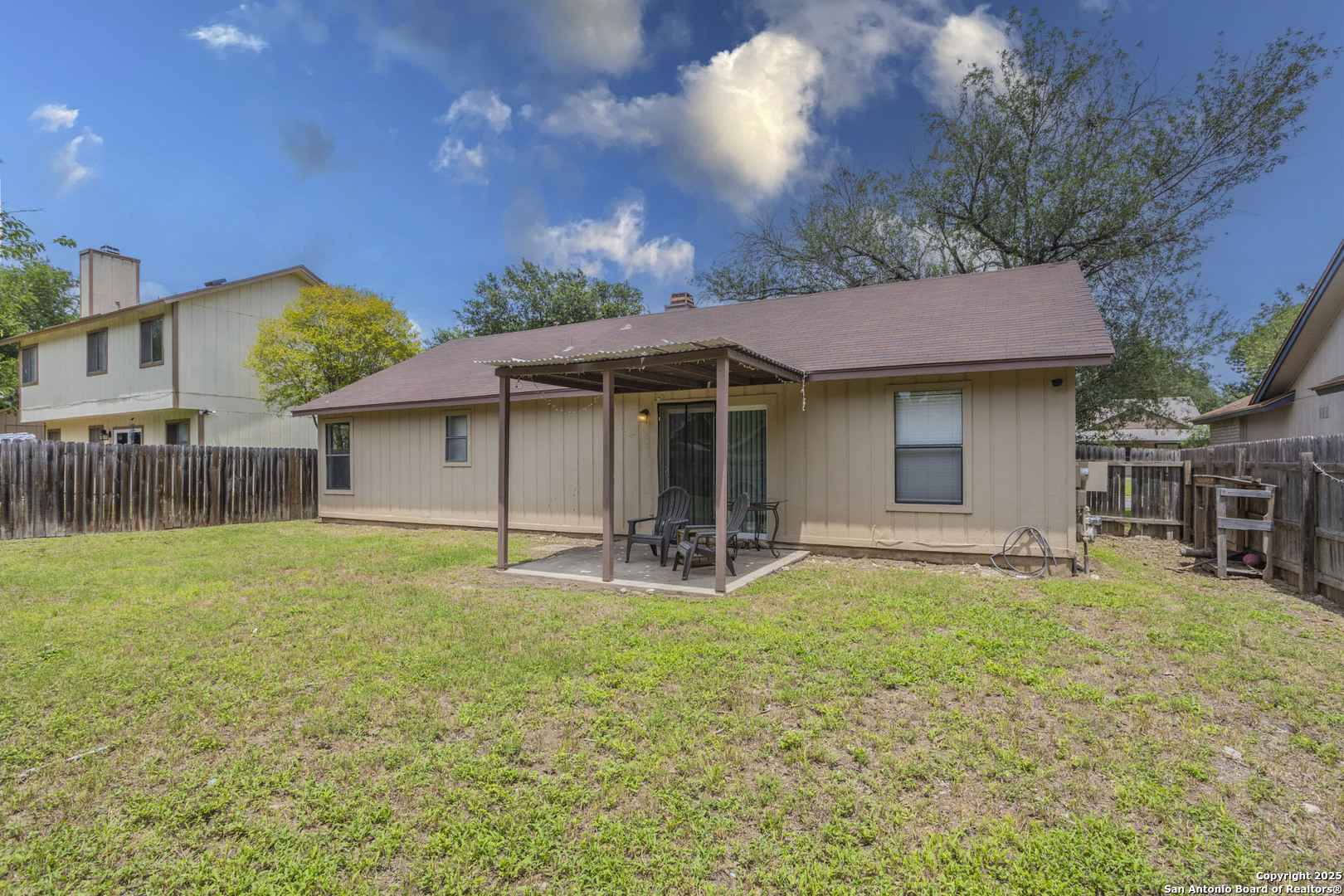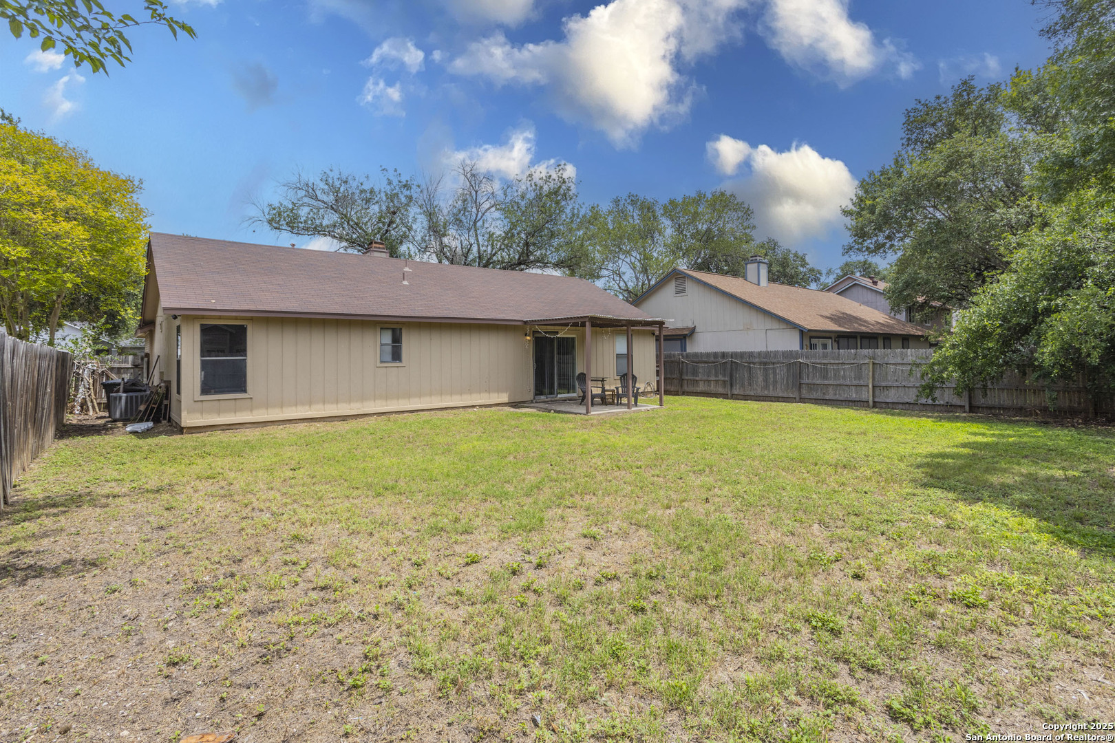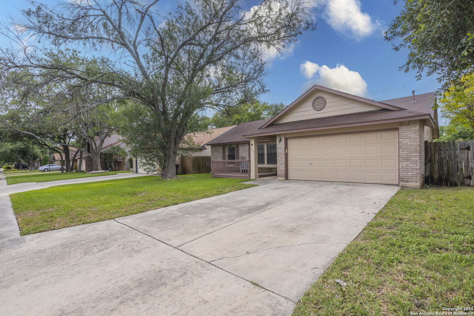 Beautiful 3-Bedroom, 2-Bathroom Single Story Home in Popular Northwest Crossing. Great Location with Easy Access to Hwy-1604, Hwy-16, Shopping, Restaurants, & More. Nice Curb Appeal with Covered Entry & Front Patio, Enter to Spacious Living Area with High Ceilings, Wood Laminate Flooring, & Handsome Brick Fireplace. Gourmet Kitchen with Breakfast Bar, Mosaic Tile Backsplash, & Appliances Included, Open to Cozy Breakfast Area with Sliding Doors to Back Patio. Large Primary Bedroom with Vaulted Ceiling & Full Bathroom with Tub/Shower. Nicely-Sized Secondary Bedrooms & Full Bathroom with Tub/Shower. Laundry Room Adjacent to Primary Bedroom with Washer/Dryer Included. Large Backyard with Privacy Fence & Covered Patio, Great for Relaxation & Entertainment. 2-Car Attached Garage with Opener. Pets Case-by-Case, Northside ISD