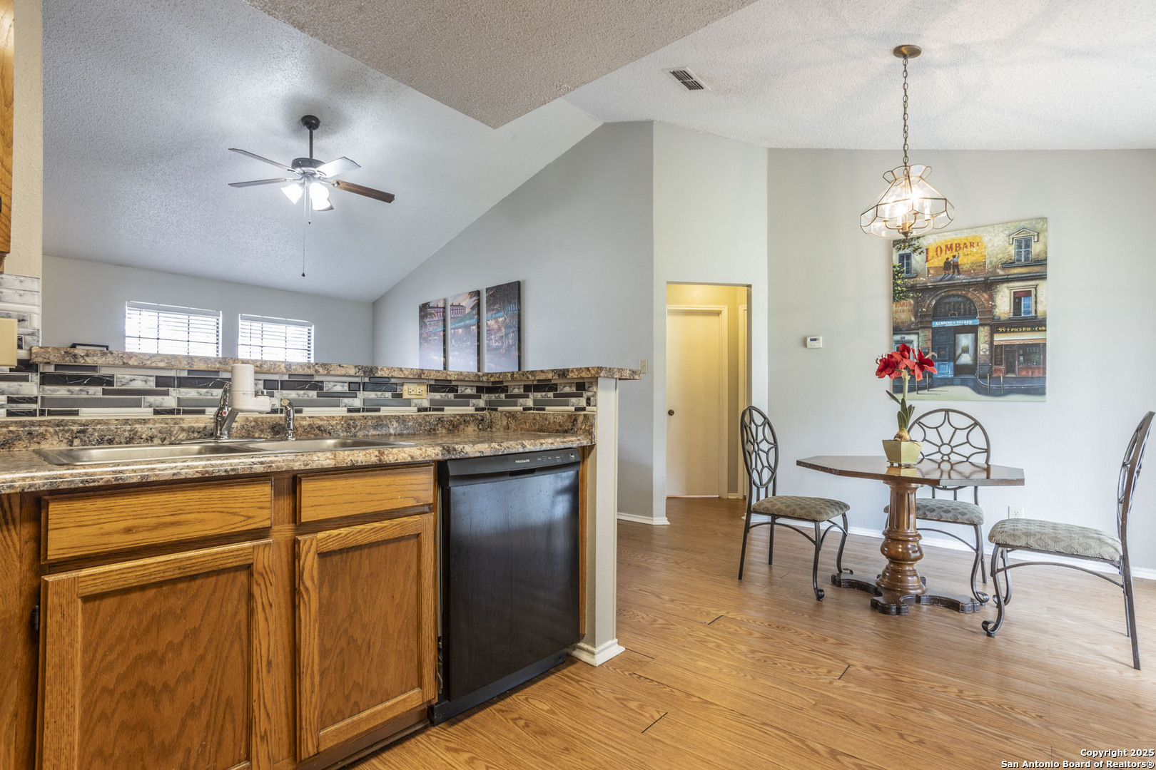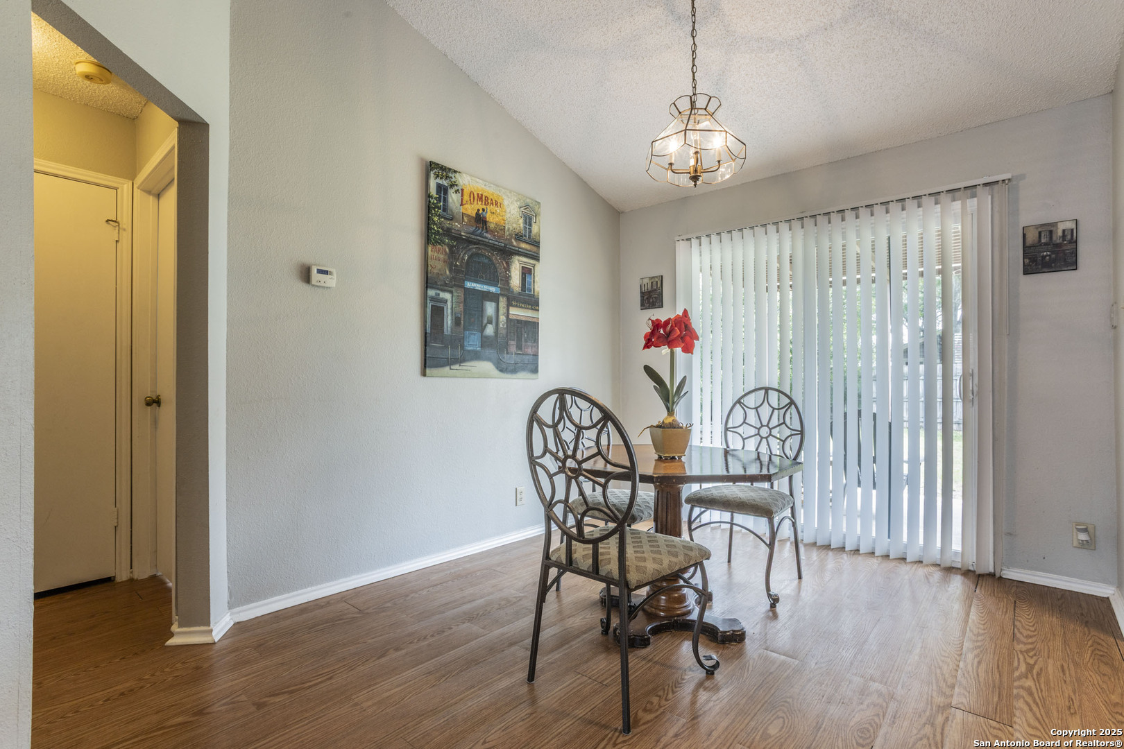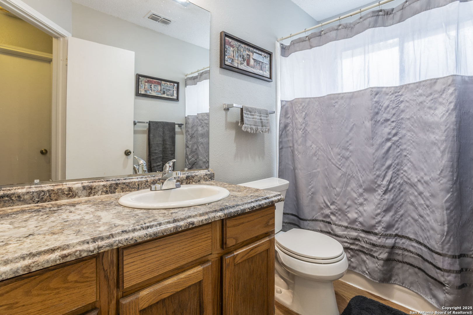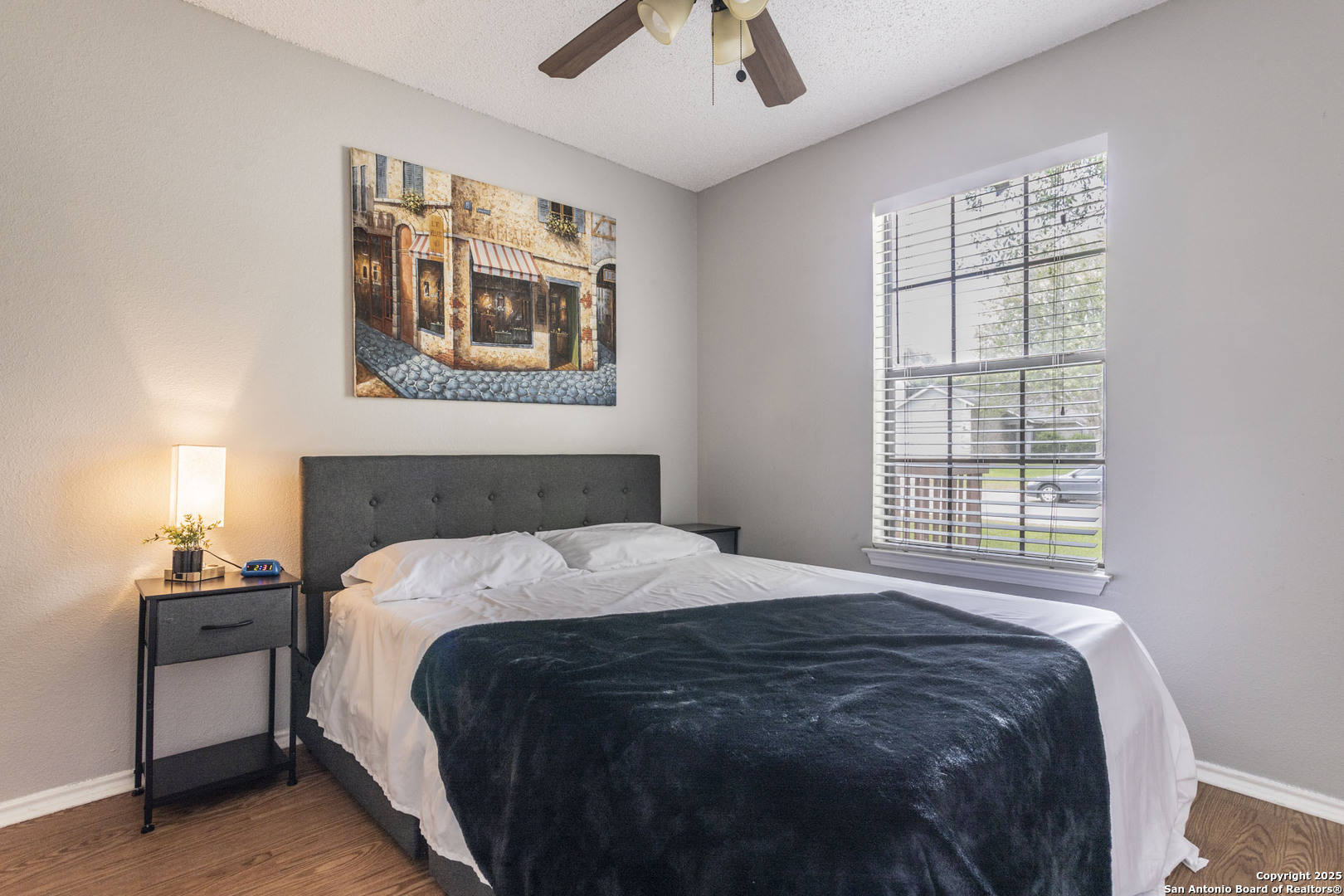 Beautiful 3-Bedroom, 2-Bathroom Single Story Home in Popular Northwest Crossing. Great Location with Easy Access to Hwy-1604, Hwy-16, Shopping, Restaurants, & More. Nice Curb Appeal with Covered Entry & Front Patio, Enter to Spacious Living Area with High Ceilings, Wood Laminate Flooring, & Handsome Brick Fireplace. Gourmet Kitchen with Breakfast Bar, Mosaic Tile Backsplash, & Appliances Included, Open to Cozy Breakfast Area with Sliding Doors to Back Patio. Large Primary Bedroom with Vaulted Ceiling & Full Bathroom with Tub/Shower. Nicely-Sized Secondary Bedrooms & Full Bathroom with Tub/Shower. Laundry Room Adjacent to Primary Bedroom with Washer/Dryer Included. Large Backyard with Privacy Fence & Covered Patio, Great for Relaxation & Entertainment. 2-Car Attached Garage with Opener. Pets Case-by-Case, Northside ISD