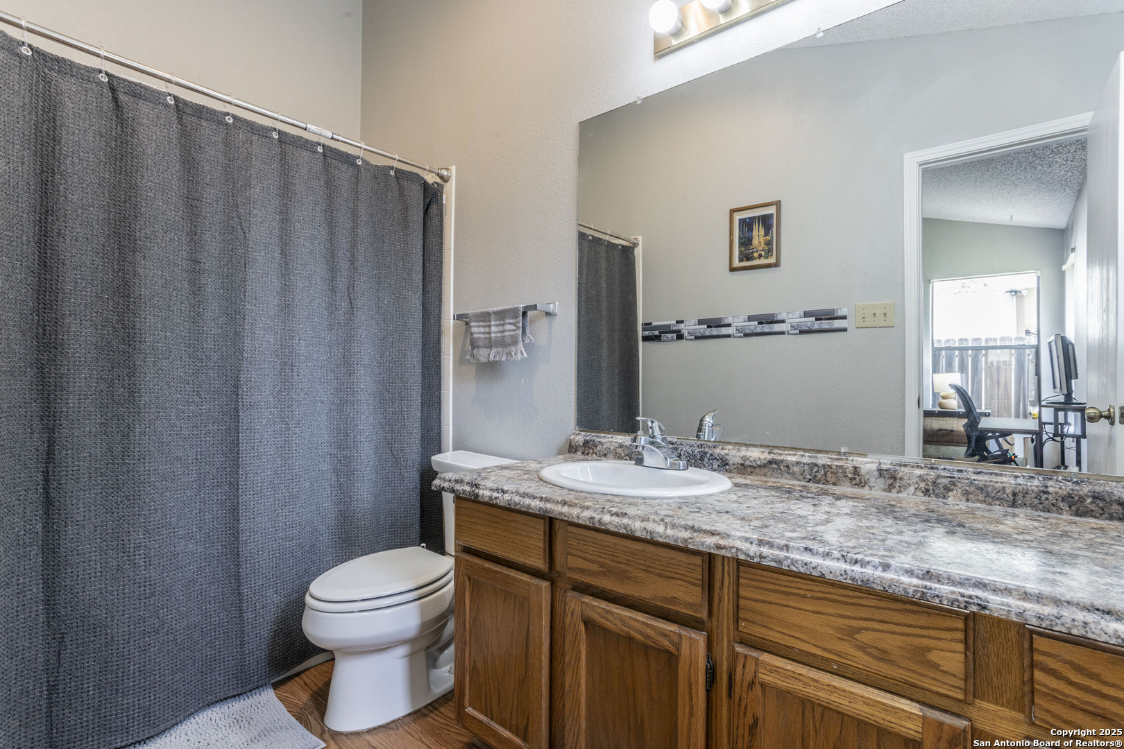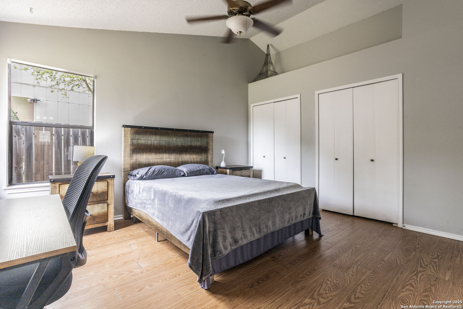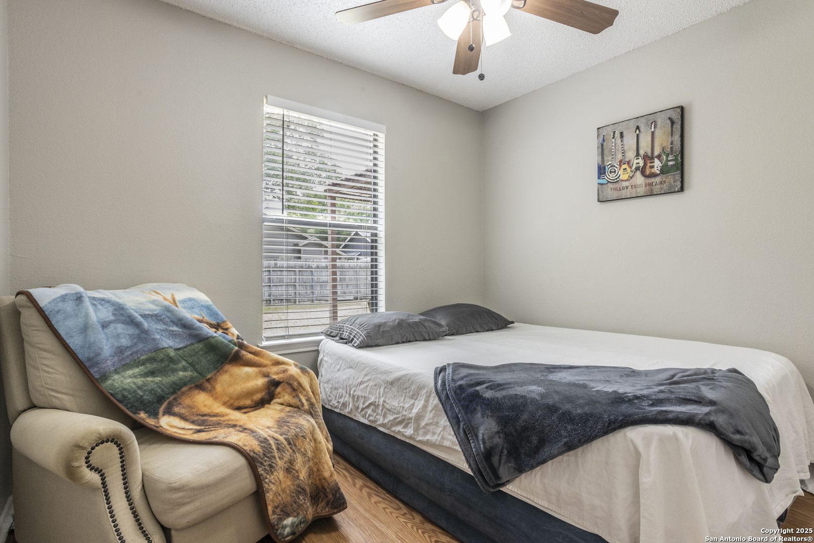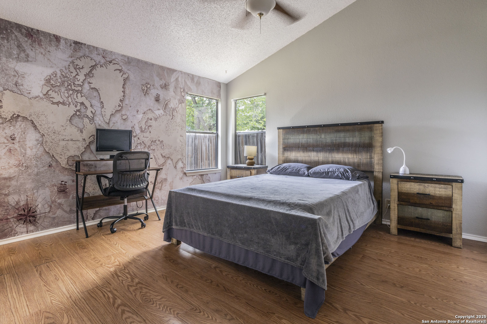 Beautiful 3-Bedroom, 2-Bathroom Single Story Home in Popular Northwest Crossing. Great Location with Easy Access to Hwy-1604, Hwy-16, Shopping, Restaurants, & More. Nice Curb Appeal with Covered Entry & Front Patio, Enter to Spacious Living Area with High Ceilings, Wood Laminate Flooring, & Handsome Brick Fireplace. Gourmet Kitchen with Breakfast Bar, Mosaic Tile Backsplash, & Appliances Included, Open to Cozy Breakfast Area with Sliding Doors to Back Patio. Large Primary Bedroom with Vaulted Ceiling & Full Bathroom with Tub/Shower. Nicely-Sized Secondary Bedrooms & Full Bathroom with Tub/Shower. Laundry Room Adjacent to Primary Bedroom with Washer/Dryer Included. Large Backyard with Privacy Fence & Covered Patio, Great for Relaxation & Entertainment. 2-Car Attached Garage with Opener. Pets Case-by-Case, Northside ISD