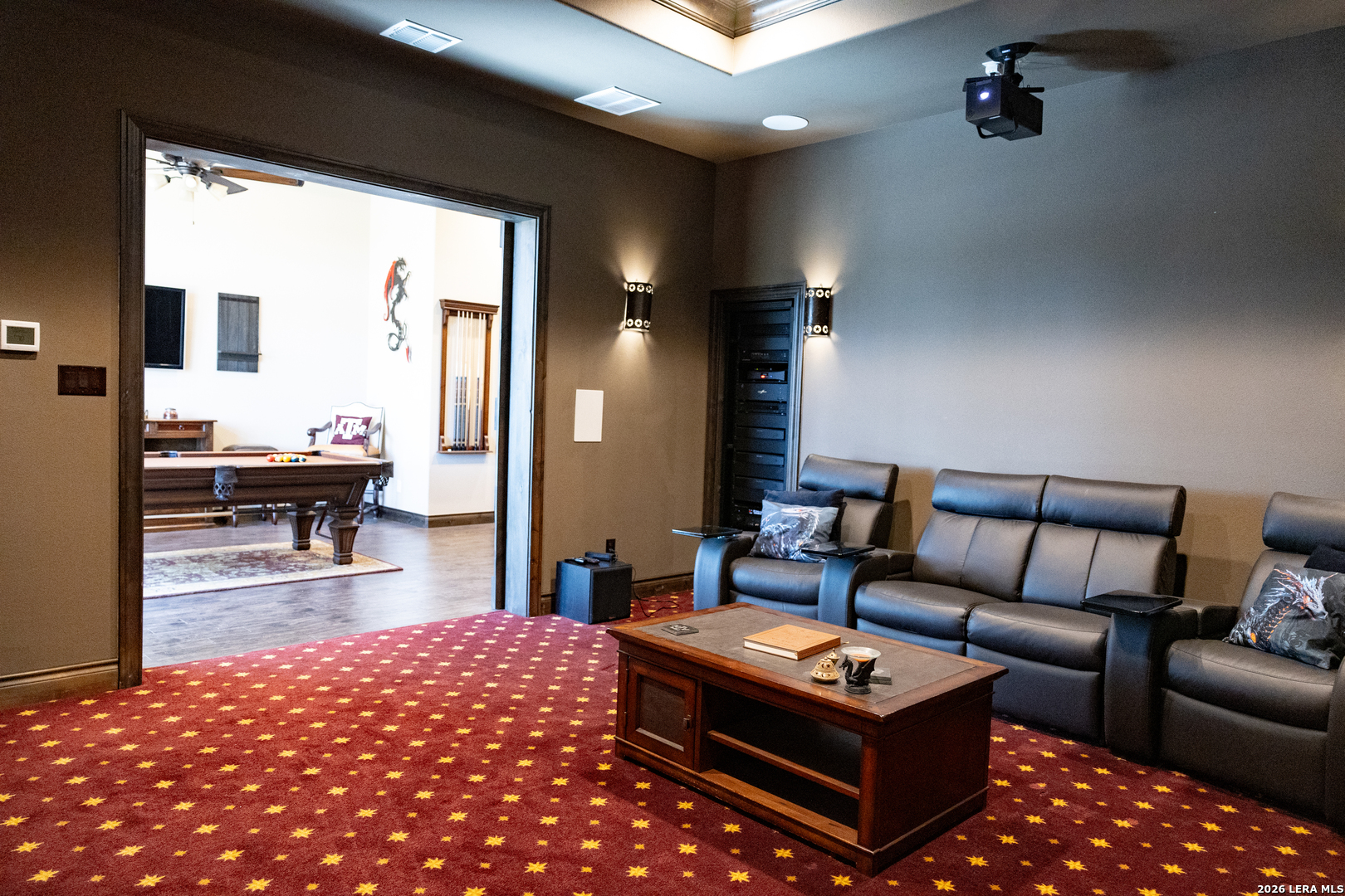 This phenomenal Hill Country Home in the Peninsula has it all!! As you walk into this dream home through the double leaded glass doors..you will experience the openness of the main living area and all the windows overlooking the fabulous outdoor living area complete with a Hot Tub, fire pit area, majestic landscaping and a putting green, enclosed with wrought iron fencing. Your gourmet kitchen has a HUGE oversized island, Induction cooktop, double door oven, stainless farmhouse sink and a refrigerator with a built in Keurig coffee maker. The oversized walk through pantry has Tons of shelves & built in and an office area w/built in desk and cabinets. The Utility room is also oversized with 2 closets, and a built in wrapping paper station w/another desk area & Tons of built-ins. Living Room is open, light & bright! Complete w/a gorgeous electric fireplace w/mantle. The Owner's retreat comes with a coffee/wine bar area as you enter the suite. Bedroom comes w/an electric fireplace w/mantle & a sitting room/study off the bedroom. The en-suite bath area comes w/a walk in shower & a heat lamp to get warm as you step out, jetted tub, split vanities & HUGE walk in closet w/custom built-ins including special cabinets for your jewelry. The Flex room is a FABULOUS Game Room & Media Room. Game room comes with a built in bar area and a pool table. The Media Room w/barn doors. Outside you have an oversized 3-car garage w/work bench area. There is a 10x10 insulated Garden Shed w/Electric. Home has a water softener & a 5 filter water filter system. This beautifully landscaped home w/a circular driveway and located on a cul de sac is perfect from head to toe! Don't forget the solar panels for little to nothing on your electric bill! Owner put in more than double the amount of panels to provide him with bills as low as $0 to less than half what they would normally be. Comes w/an Enphase App. The Gated section of Mystic Shores called the Peninsula was developed as an exclusive section w/private roads, underground utilities & central water. Surrounded by water on 3 sides. Located at the NW shore of Canyon Lake w/great views of the Hill Country. This home has water views when lake is up.