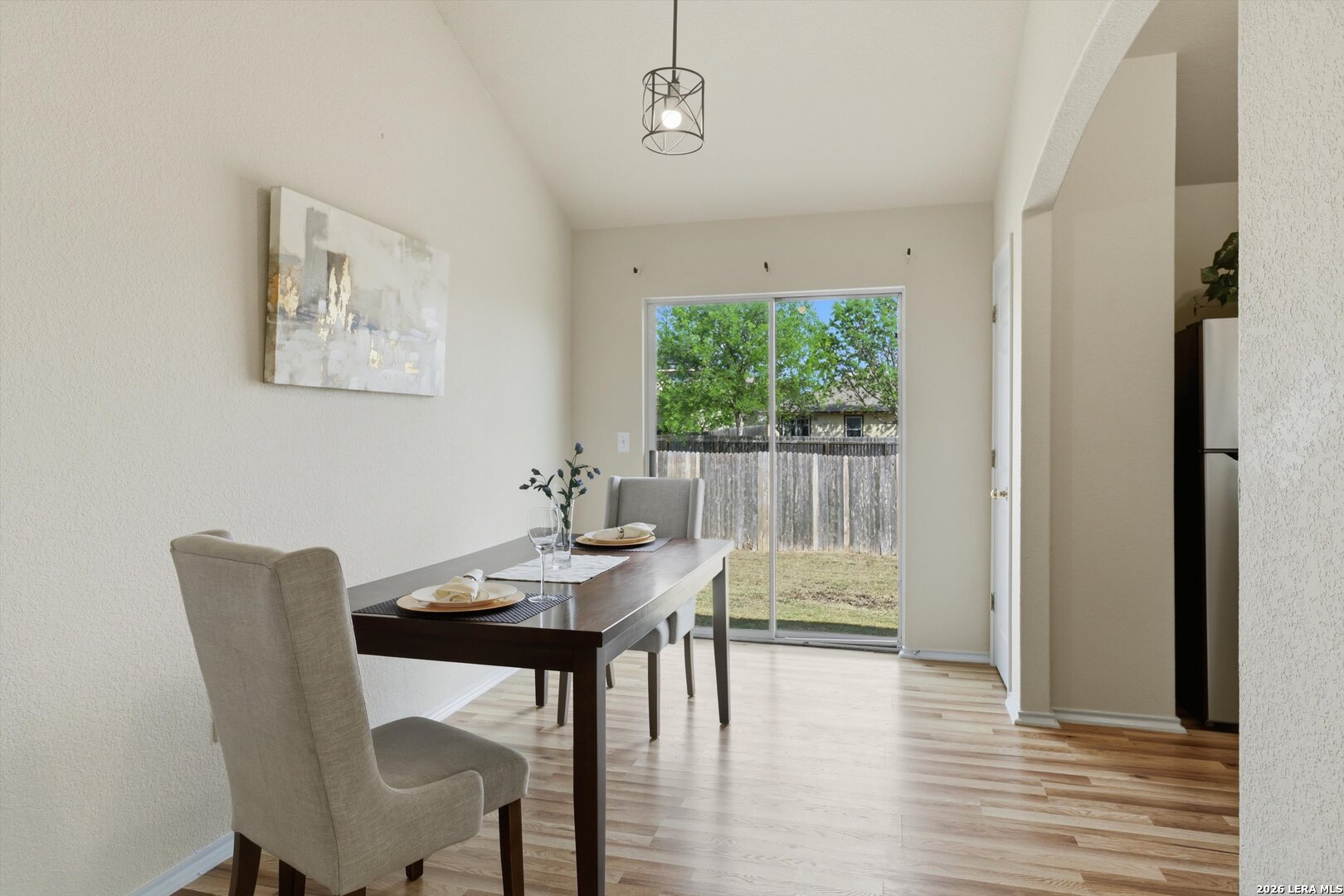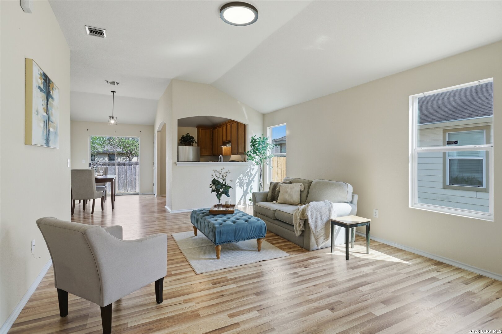 Welcome to this beautifully updated 3-bedroom, 2-bath home nestled in the quiet neighborhood of Meadows of Copperfield. Offering 1,327 square feet of thoughtfully designed living space, this home features abundant natural light, vaulted ceilings, and brand-new laminate flooring throughout, creating a bright, airy feel and enhancing the sense of spaciousness. Major updates include a new roof (2022) and a new A/C system (2023), providing peace of mind for years to come. Step inside to a welcoming open-concept living area that flows seamlessly into the updated kitchen and separate dining area. The kitchen features tall cabinets, ample counter space with new quartz countertops, and a brand-new sink, faucet, and disposal, along with a new dishwasher, stove, vent hood, and mircrowave-perfect for both everyday living and entertaining. The private primary suite offers a relaxing retreat, featuring an ensuite bathroom with an oversized soaking tub and a spacious closet. Two additional bedrooms, a full guest bath, and a dedicated laundry room complete the interior layout. Both bathrooms have been updated with new faucets, quartz countertops and new toilets. Enjoy outdoor living in the spacious backyard with a privacy fence-ideal for gatherings or quiet evenings at home. A two-car garage adds convenience and extra storage. Conveniently located near Loop 1604 and I-35, and just minutes from Randolph AFB, this move-in-ready home perfectly blends comfort, style, and accessibility. Don't miss your opportunity to make it yours!