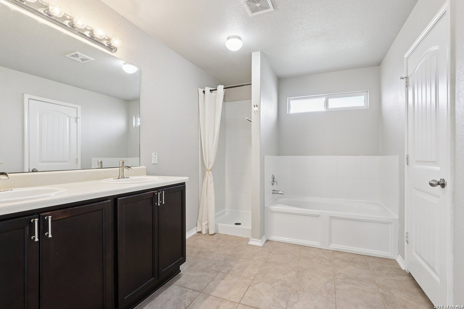 Move-In Ready 3 Bedroom, 2 Bath Single-Story Home in the highly desirable Solana Ridge subdivision. This warm and inviting home features an open floor plan designed for comfortable everyday living and easy entertaining. Interior updates include fresh interior paint, newly installed vinyl flooring, and a bright, welcoming layout filled with natural light. The spacious kitchen offers granite countertops, ample cabinet storage, and easy flow into the main living area, making it ideal for both daily living and hosting guests. A formal dining room at the front of the home adds flexibility for entertaining, a home office, or additional living space. The private primary suite features a beautifully updated bath with a refinished walk-in shower, separate garden tub, and a relaxing retreat feel. Secondary bedrooms are well-sized and privately situated. Laundry room is located inside for added convenience. Step outside to enjoy the oversized covered patio and a newly installed privacy fence, offering added comfort and space to relax or entertain outdoors. Conveniently located near Loop 1604, Highway 90, Lackland Air Force Base, shopping, restaurants, and everyday conveniences. This beautifully maintained San Antonio home offers the ideal combination of comfort, style, and location.