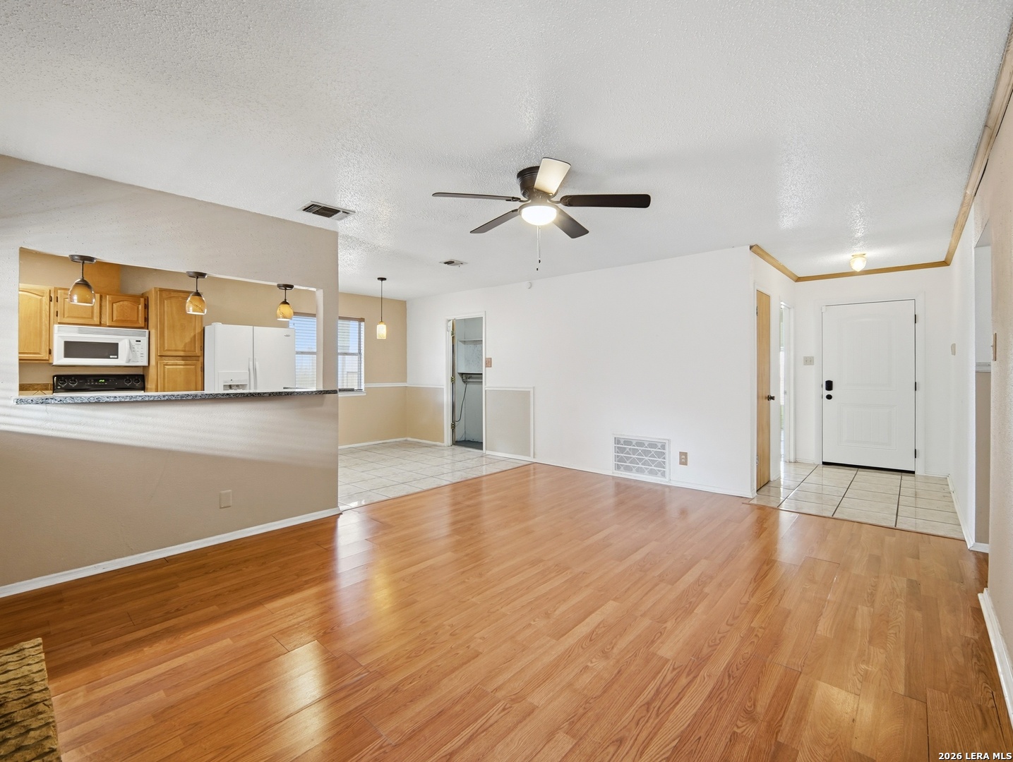 This inviting 3-bedroom, 2-bath home spans 1,588 square feet and is ideally situated near Judson High School, Randolph Air Force Base, and Fort Sam Houston, with quick access to 1604, I-35, and I-10. Conveniently close to shopping, restaurants, and everyday essentials, this one-owner home features updated kitchens, bathrooms, and floors, with a professionally repaired foundation in 2019. The expansive converted garage offers endless possibilities, think cozy family room, a home theater, or a game room. Outside, the full-length covered patio is perfect for entertaining or simply enjoying a quiet morning coffee. With a large storage shed and space to make it your own, this home offers both convenience and opportunity.