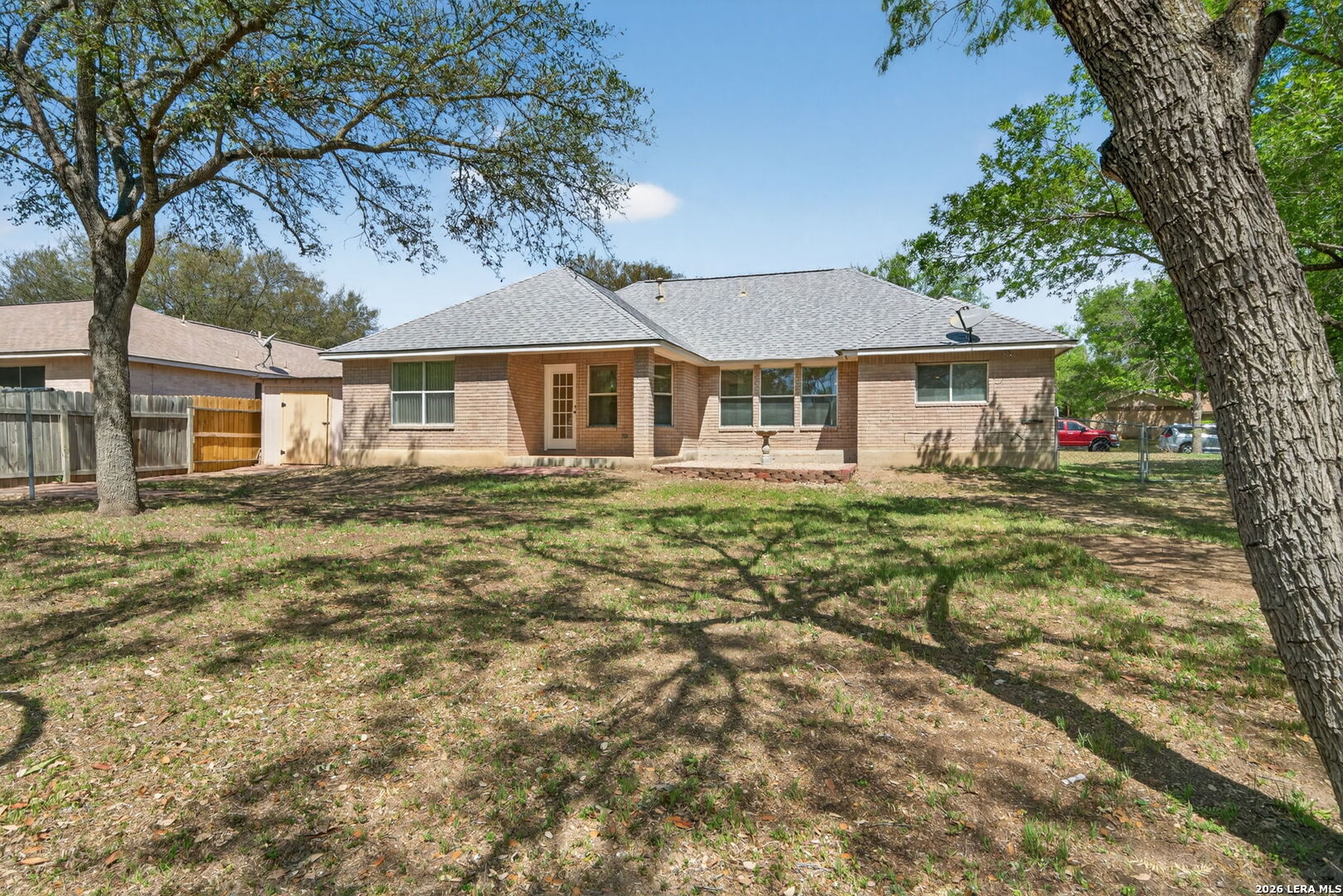 Welcome to 7446 Oak Marsh St! This charming single-family home offers 3 bedrooms and 2 bathrooms with a functional, open layout perfect for modern living. The home's interior has been recently painted, giving it a fresh and inviting feel. The spacious living area flows seamlessly into the dining and kitchen spaces, ideal for entertaining family and friends. The kitchen features ample cabinet space and a convenient breakfast area. Retreat to the primary suite with a private bathroom and generous closet space. Enjoy a large backyard for outdoor gatherings, gardening, or relaxing under the Texas sun, complete with an exterior gardening shed. Additional features include a 2-car garage, ceiling fans, and a covered patio. Conveniently located near shopping, dining, parks, and major highways, this home combines comfort, functionality, and a prime location in Live Oak.