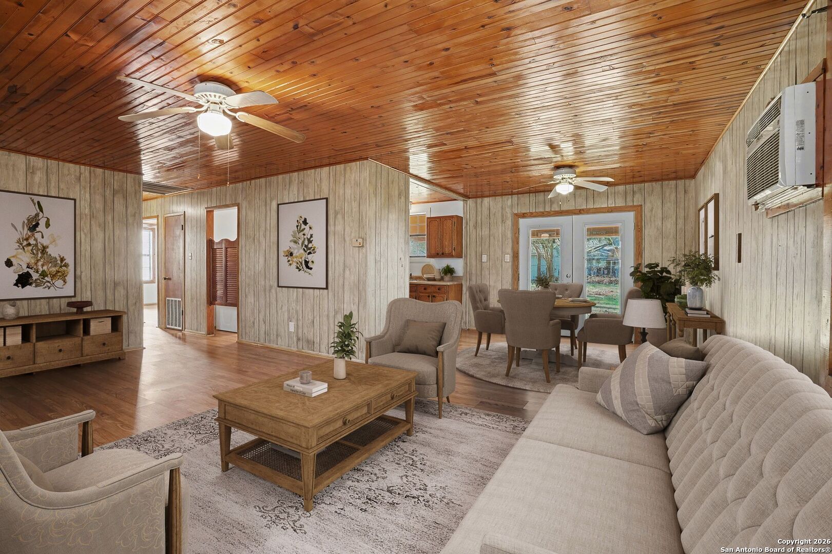 Great one-story home located in the established Deep Acres Estates community, offering comfort, functionality, and a spacious lot. This charming residence features 2 bedrooms and 1 bathroom with an open floor plan that feels bright and welcoming. The cute kitchen and dining area include double doors that lead out to a covered patio, creating an easy indoor-outdoor flow perfect for relaxing or entertaining. Wood flooring adds warmth throughout the home, and the generously sized laundry room provides added convenience. The primary bedroom is thoughtfully positioned within the floor plan to the secondary bedroom. Outside, there is a propane tank in the fenced backyard. Enjoy the covered patio and additional free-standing structure ideal for storage, a workshop, or a man or woman cave. Located in the desirable Mt. Valley Elementary and Middle School district and close to area amenities, this home offers both comfort and convenience.